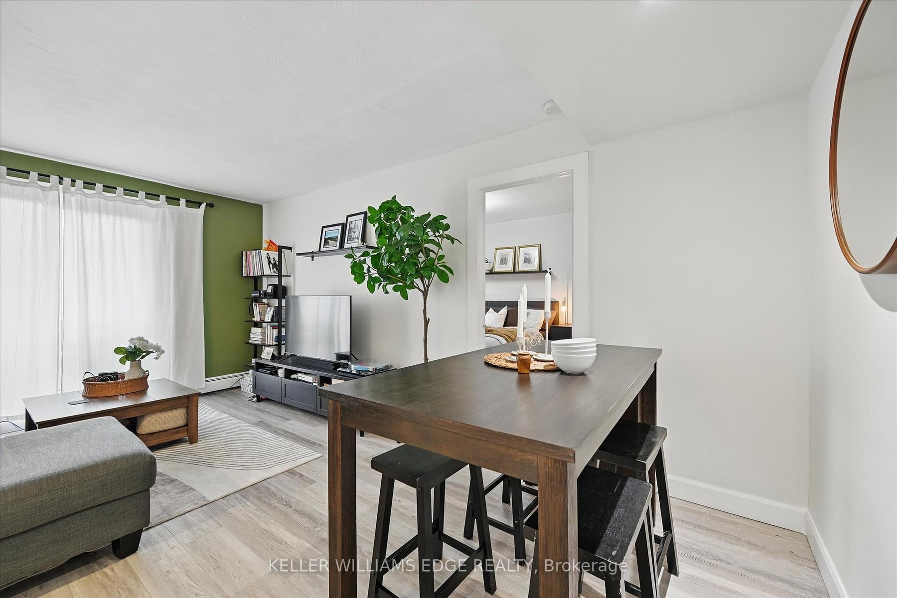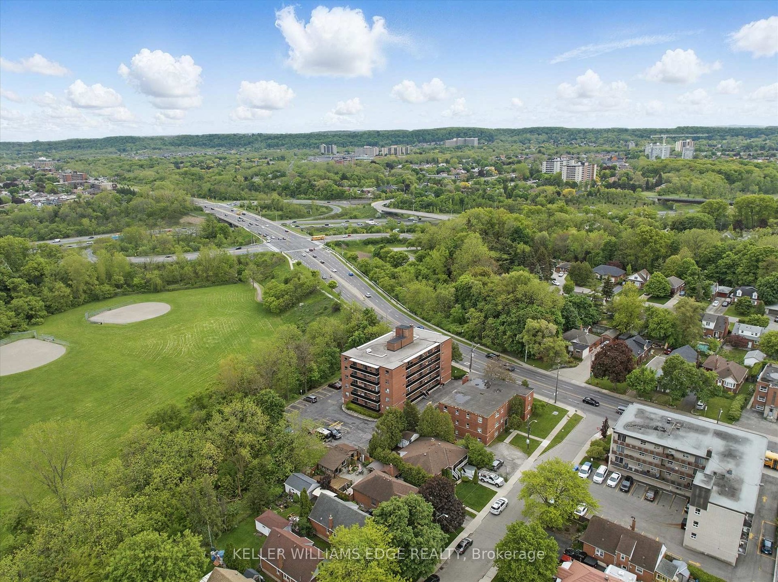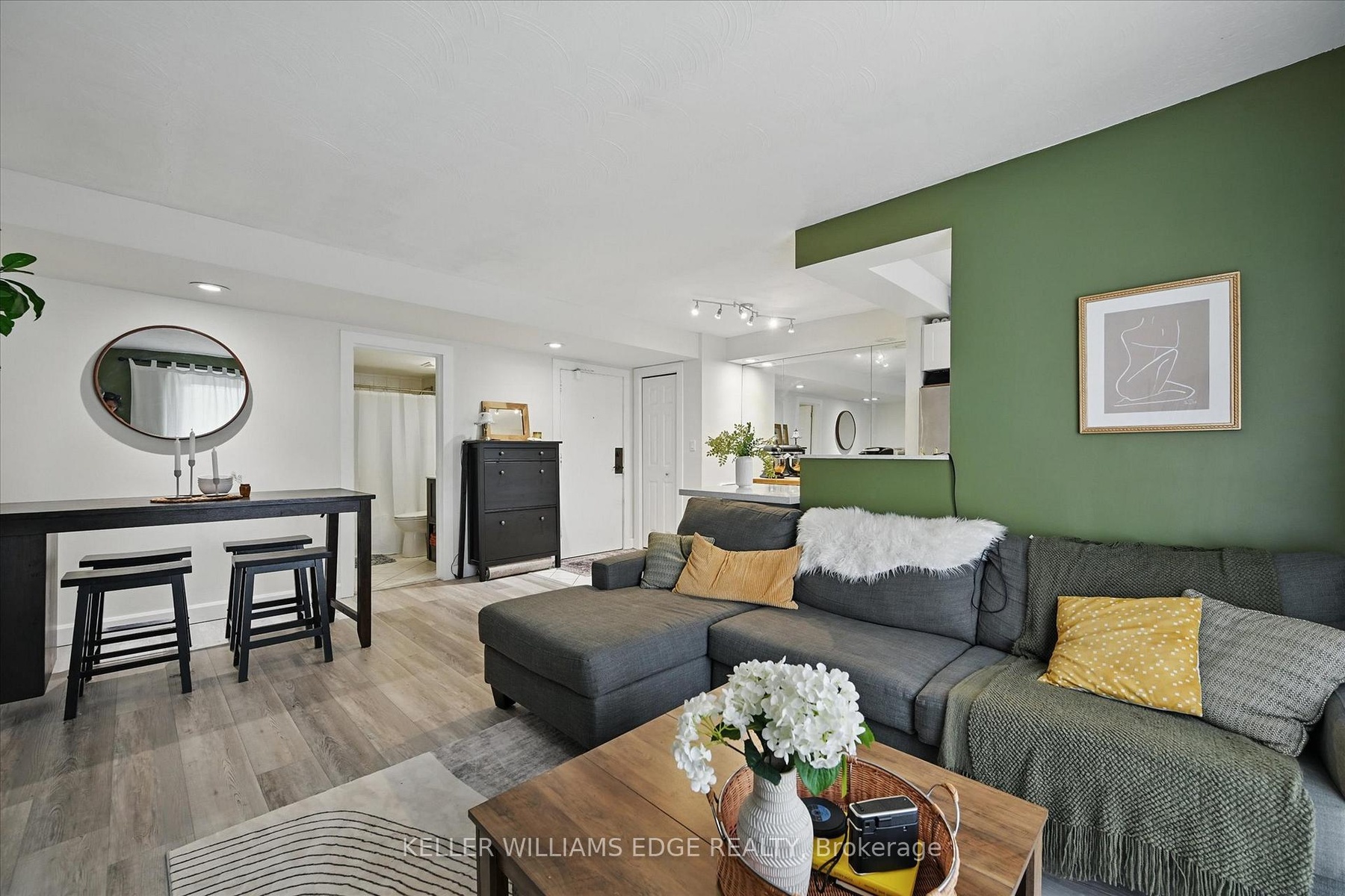 Welcome to this bright and stylish 1-bedroom, 1-bathroom condo offering 618 square feet of comfortable, well-designed living space on the 4th floor of a quiet and well-maintained building in East Hamilton. The updated kitchen features quartz countertops, a double undermount sink, and a convenient breakfast bar, all open to the spacious living area with walk-out to a private balcony -perfect for enjoying morning coffee or evening sunsets. The bedroom is generously sized, and the unit offers great natural light throughout. Additional highlights include secure building entry, elevator access, low monthly condo fees, a clean and well-kept on-site laundry room, one dedicated parking space, and a storage locker just around the corner from the unit. The building is surrounded by mature trees and green space, with plenty of visitor parking available. Located just minutes from the Red Hill Valley Parkway, the Lincoln Alexander Parkway, and the QEW, this location is ideal for commuters. You're also close to Red Hill Bowl Park and an entrance to the Red Hill Valley Trail, offering easy access to nature right outside your door. A fantastic opportunity for first-time buyers, downsizers, or anyone seeking move-in-ready, low-maintenance living in a connected and friendly neighbourhood.