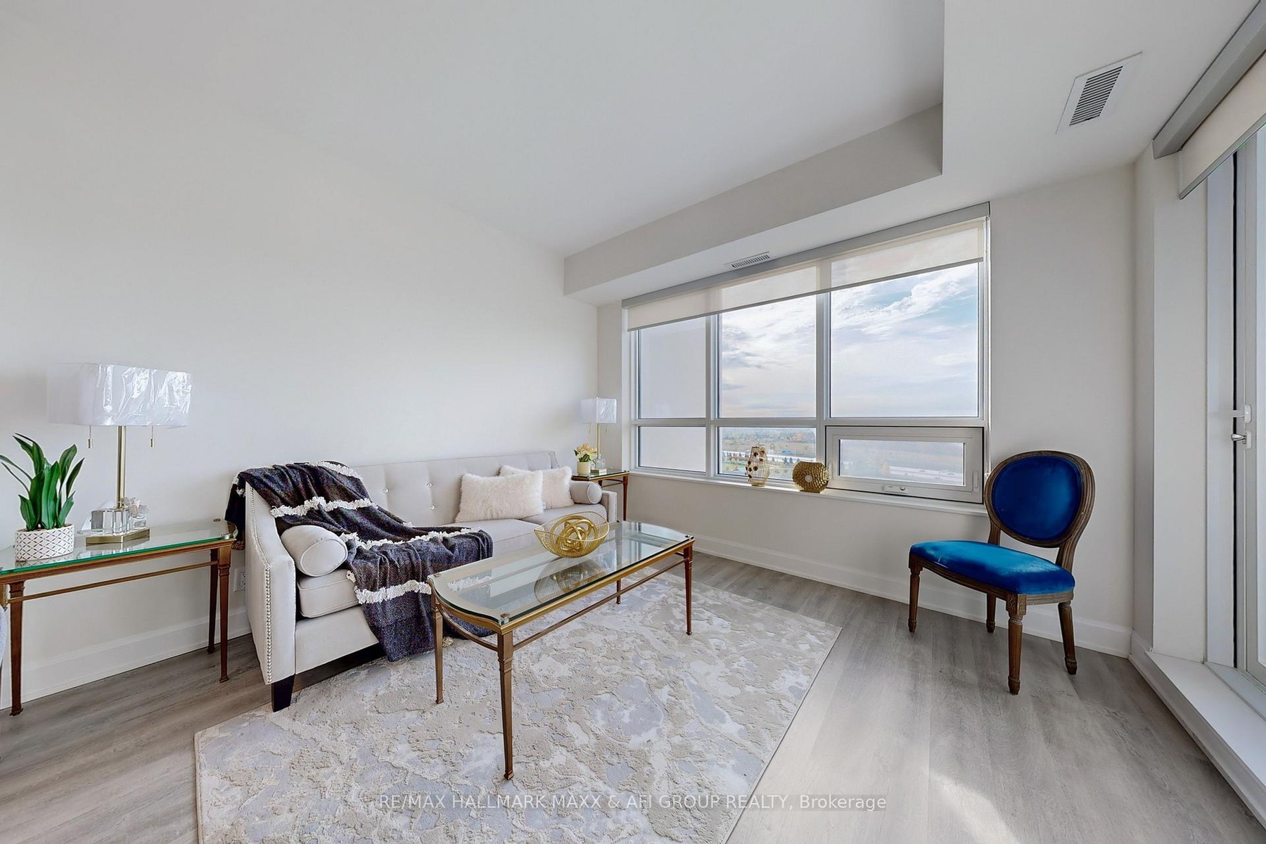 Step into luxury at the nearly-new Pavilia Towers, a landmark development ideally located at the intersection of Markham and Richmond Hill. This beautifully designed 1+1 bedroom, 2-bathroom suite offers a spacious and functional layout with soaring 9-foot ceilings and expansive windows to the unobstructed south view of Toronto Skyline that fill the space with natural light. The modern kitchen features integrated smart appliances, sleek cabinetry, and an open-concept design, perfect for both everyday living and entertaining. Enjoy the convenience of ensuite laundry, 1 underground parking space just in front of elevators (see the picture to see how close it is) , and 1 locker included with the unit. Set in a smart-technology building, residents enjoy 24-hour concierge service and access to top-tier amenities, including a fully equipped fitness centre, indoor pool, games and party rooms, recreation lounge, guest suites, and ample visitor parking. With VIVA transit at your doorstep, commuting is seamless whether you're heading to Vaughan, Markham, or downtown Toronto via Finch TTC. You're just minutes from Langstaff GO Station, Walmart, Loblaws, Home Depot, Canadian Tire, major banks, medical centres, restaurants, and shopping. Outdoor lovers will appreciate the nearby community parks with soccer fields, basketball and tennis courts, splash pad, dog park, and scenic walking trails. This home is located within the boundaries of top-ranking schools such as Donlea Public School and Thornlea Secondary School. Quick access to Highways 404 & 407 makes commuting effortless. Don't miss this opportunity to own in one of Thornhills most prestigious and connected communities. View the 3D virtual tour!