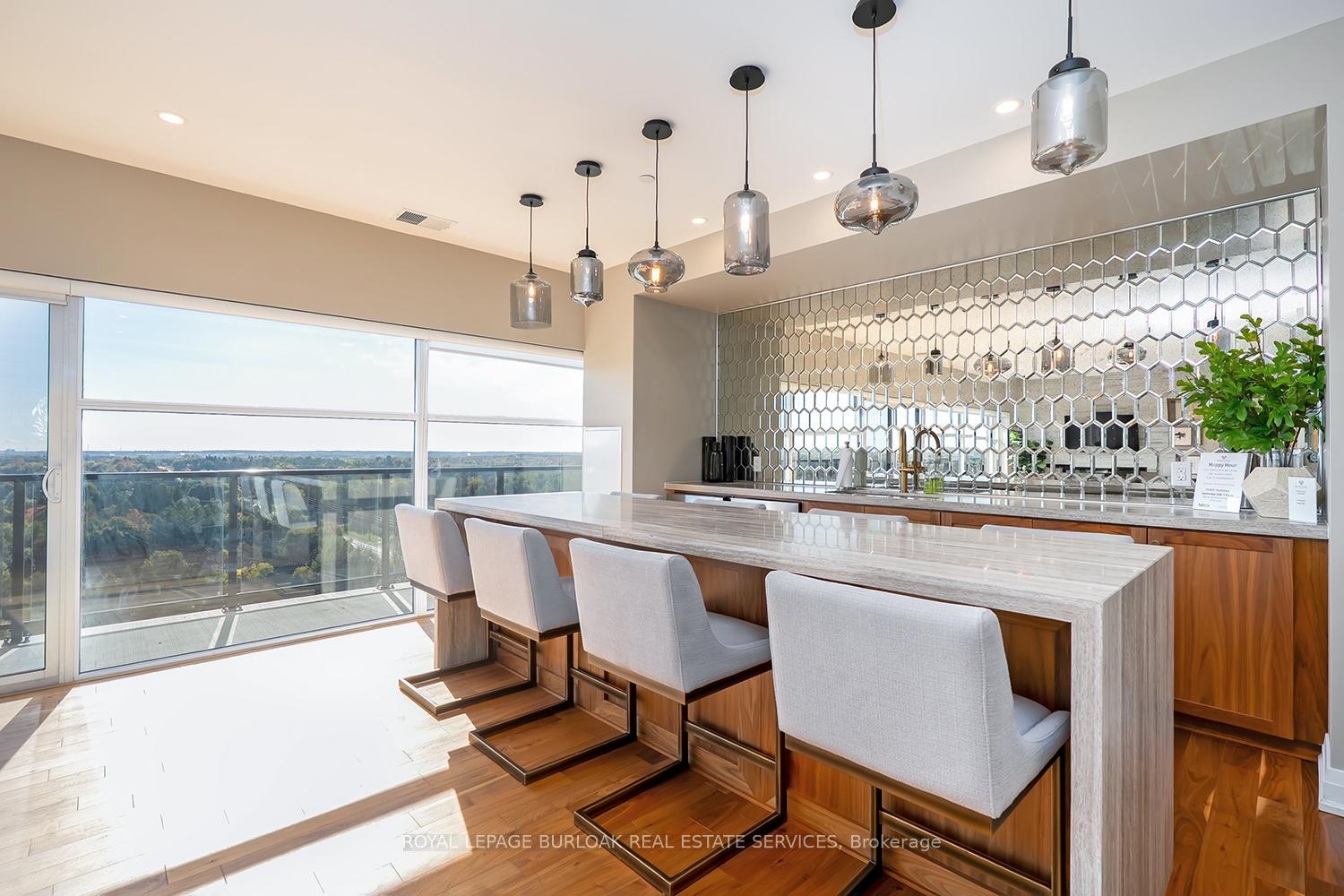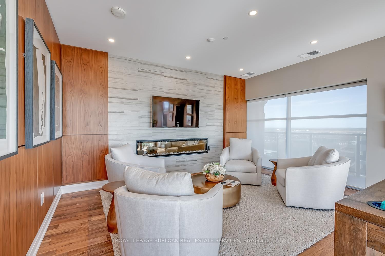Located in the heart of a vibrant community, this stunning 2 bedroom, 2 bathroom condo offers 1,464 square feet of luxurious living space and a 294 sq. ft. south facing terrace, perfect for entertaining or relaxing outdoors. Inside, 10 foot ceilings, hardwood flooring, LED pot lights, and floor to ceiling windows create a bright, elegant atmosphere. The kitchen is beautifully appointed with custom cabinetry, quartz countertops, an eat at island, Whirlpool stainless steel appliances, a custom backsplash, under cabinet lighting, and two double pantries. The open living/dining area features an electric fireplace, accent wall, and walk out to the terrace. The primary suite offers floor to ceiling windows, a custom walk in closet, and a spa like ensuite with double vanity, heated floors, and a glass shower with floor to ceiling tile. The second bedroom includes a double closet and frosted glass doors, while the main bath features a quartz topped vanity, soaker tub, and heated floors. A spacious laundry room with built in cabinetry provides excellent storage. Residents enjoy top tier amenities such as a golf simulator, games and party room with stunning views, exercise room, and elegant lobby. Steps to restaurants, shops, and entertainment, and minutes from Springfield Golf & Country Club. Includes two parking spaces (P2 #24 and #90)