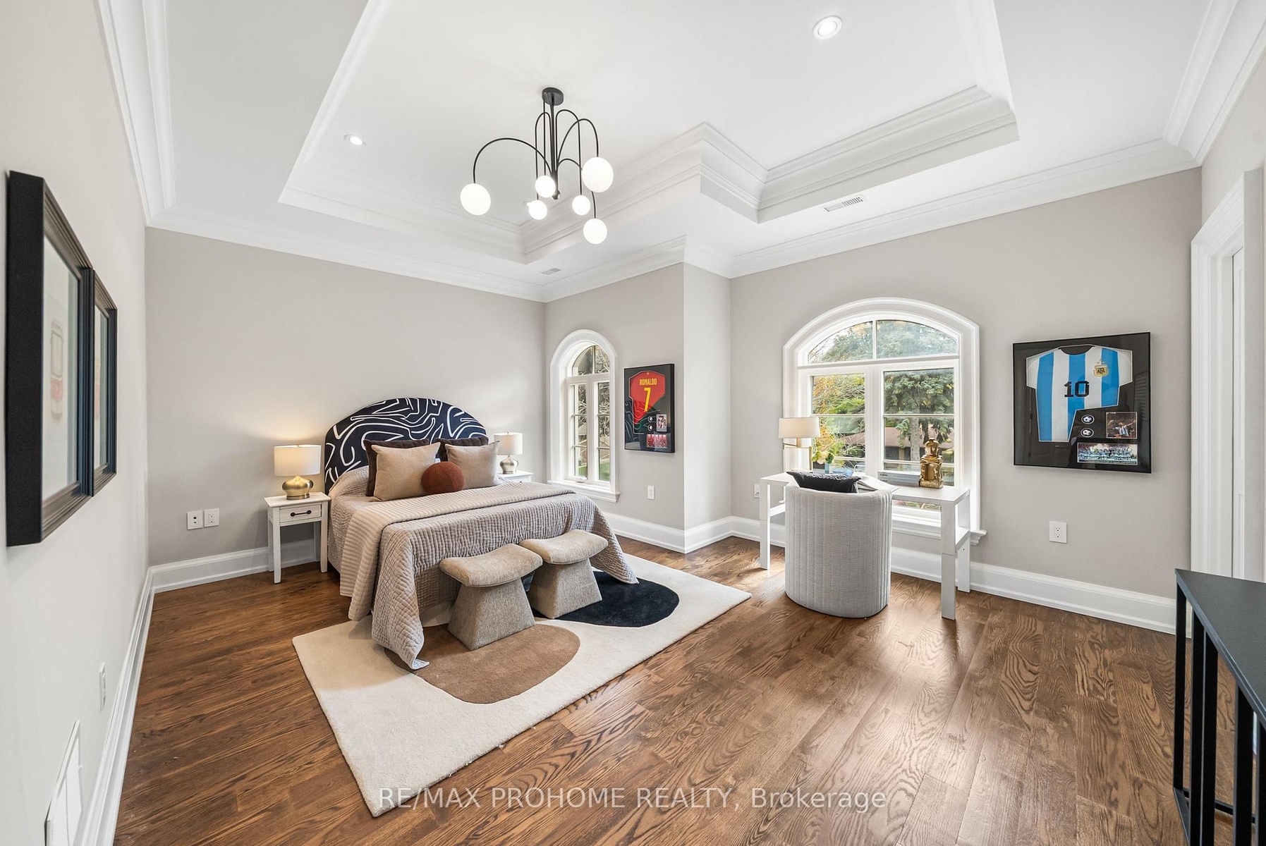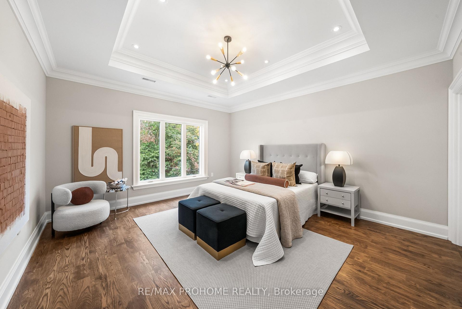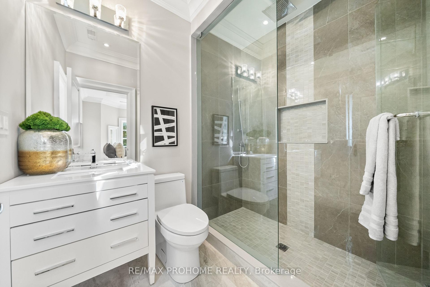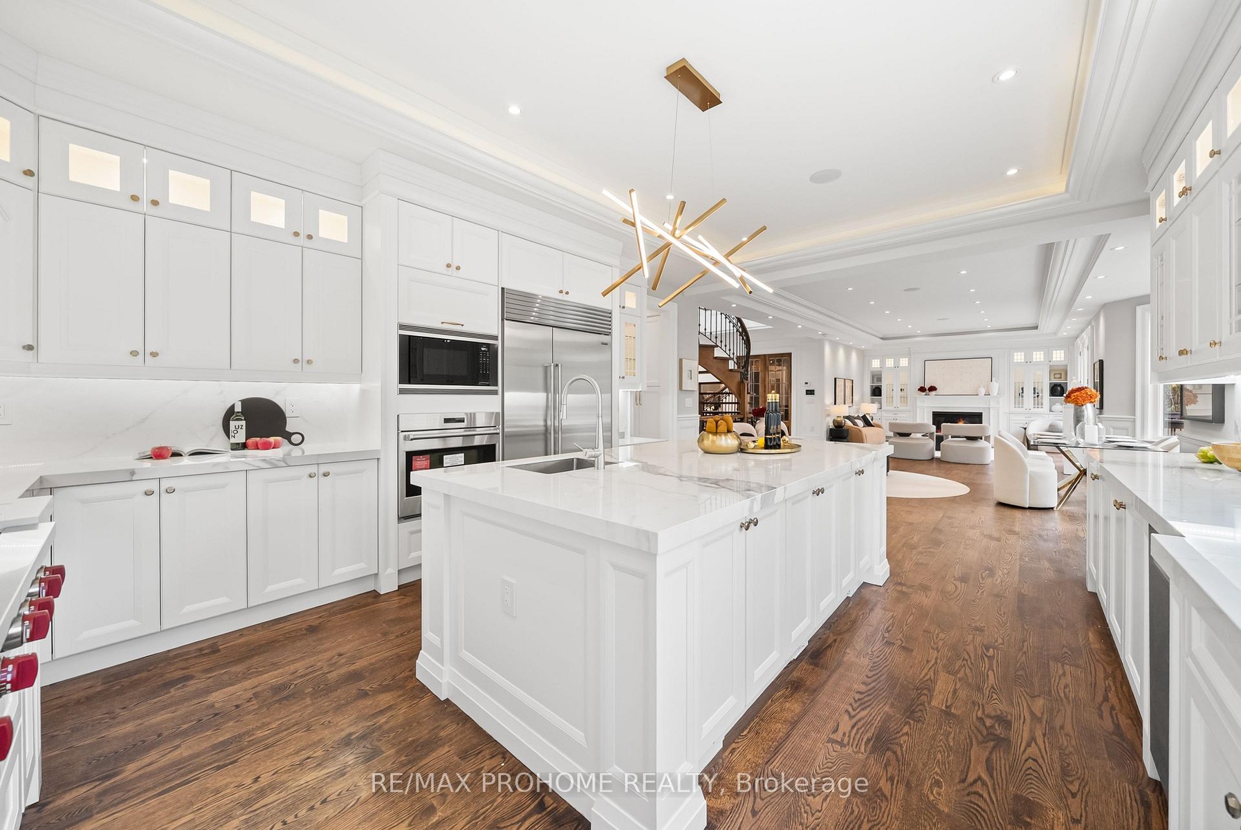 Welcome to 8 Worsley Court, a rare 80-ft premium frontage, custom-built estate with a 3-car garage, ideally situated on a quiet private court in one of Unionville's most coveted enclaves. This exceptional residence showcases over 6,500 sq. ft. of exquisite living space (including a fully finished walk-up basement with in-floor heating), blending timeless architecture with modern sophistication. Designed with uncompromising attention to detail, the home features 5 spacious bedrooms-each with its own ensuite-plus a 6th ensuite bedroom on the lower level, ideal for multi-generational living or extended family. A grand double-door entrance welcomes you into a bright, airy foyer with a skylight, paneled walls, and elegant custom millwork, setting the tone for refined elegance throughout. The open-concept main floor flows seamlessly between formal and casual living areas, accentuated by waffle ceilings, designer chandeliers, and wide-plank hardwood flooring. The gourmet chef's kitchen is a showpiece, complete with top-of-the-line built-in appliances, an oversized island, and a spacious walk-in pantry-perfect for both everyday family living and large-scale entertaining. The primary suite is a true sanctuary featuring a 7-piece spa-inspired ensuite, massive walk-in closet, and abundant natural light. The fully finished walk-up basement includes a theatre room, recreation area, wet bar, sauna, and ensuite guest bedroom-creating the ultimate space for entertainment and relaxation. Set just steps from Toogood Pond, Main Street Unionville, parks, and top-ranked schools, this residence offers the perfect balance of luxury, privacy, and convenience-an unparalleled lifestyle in the heart of Unionville.