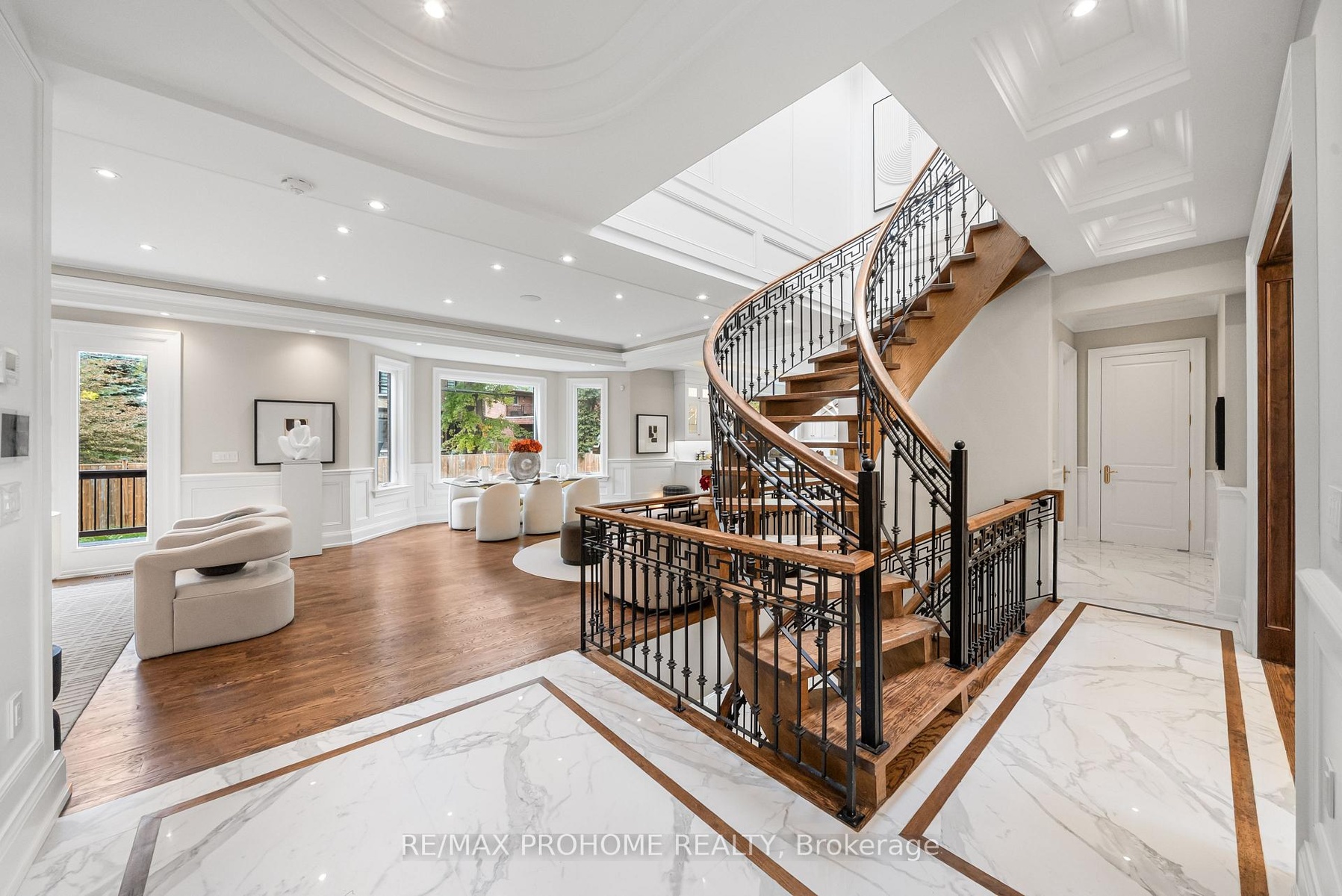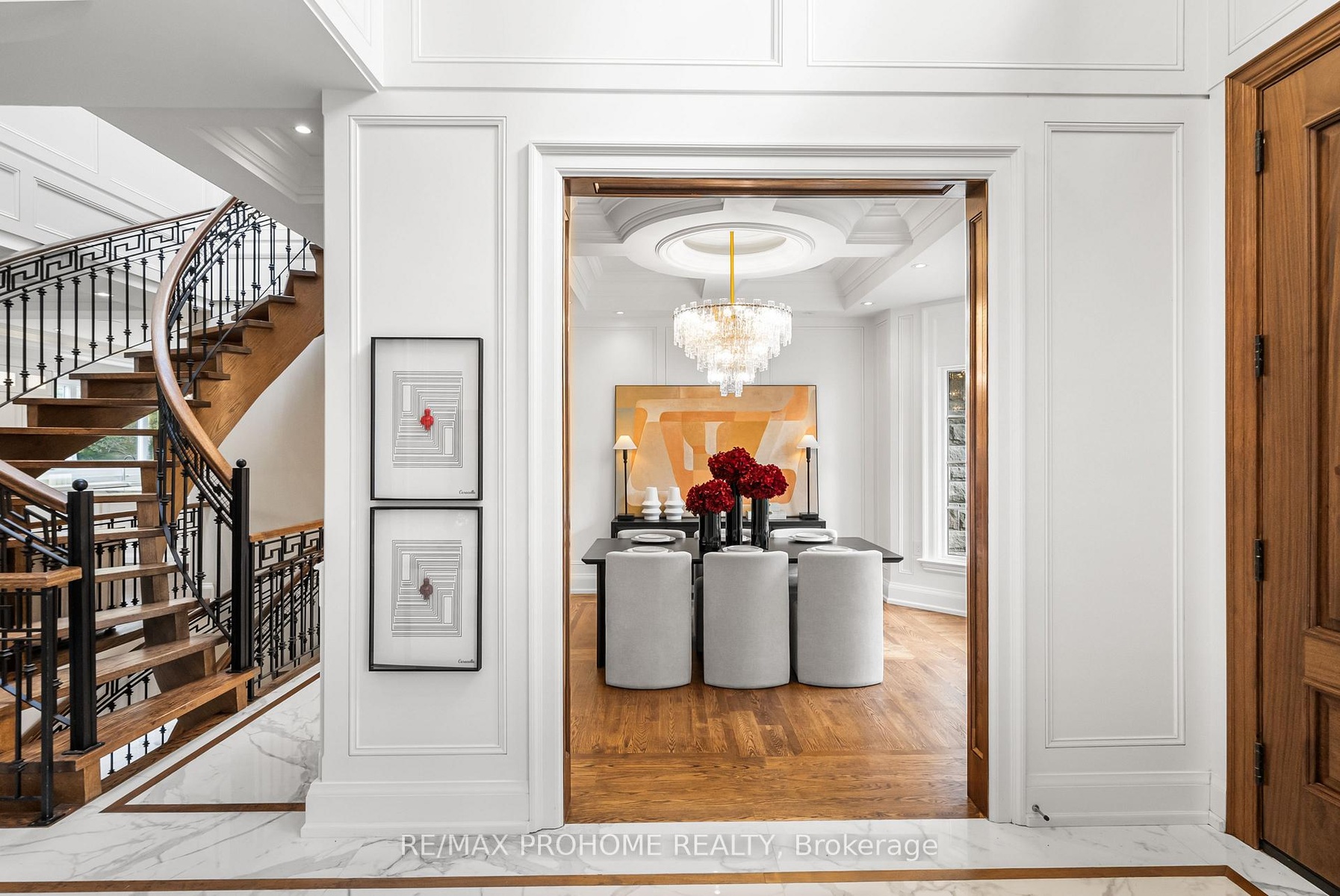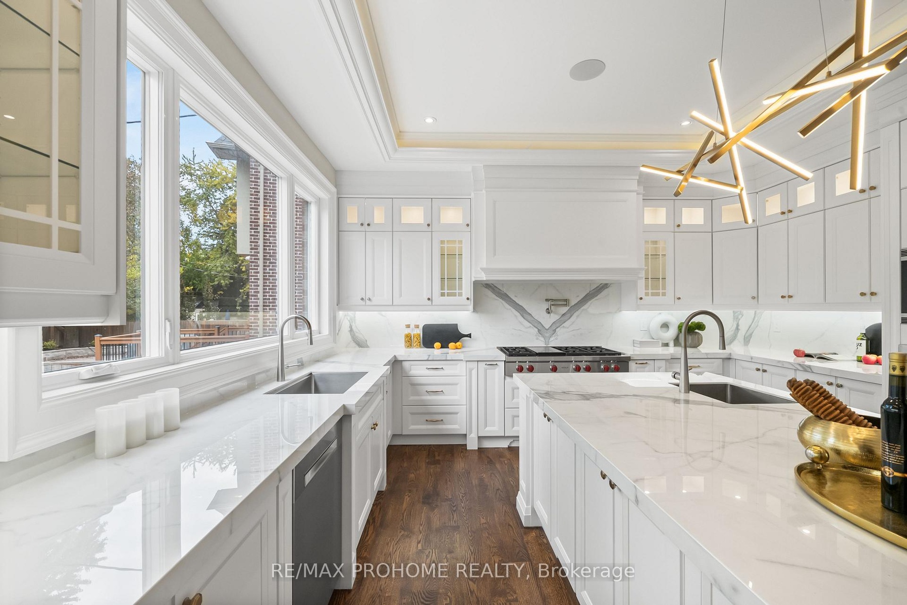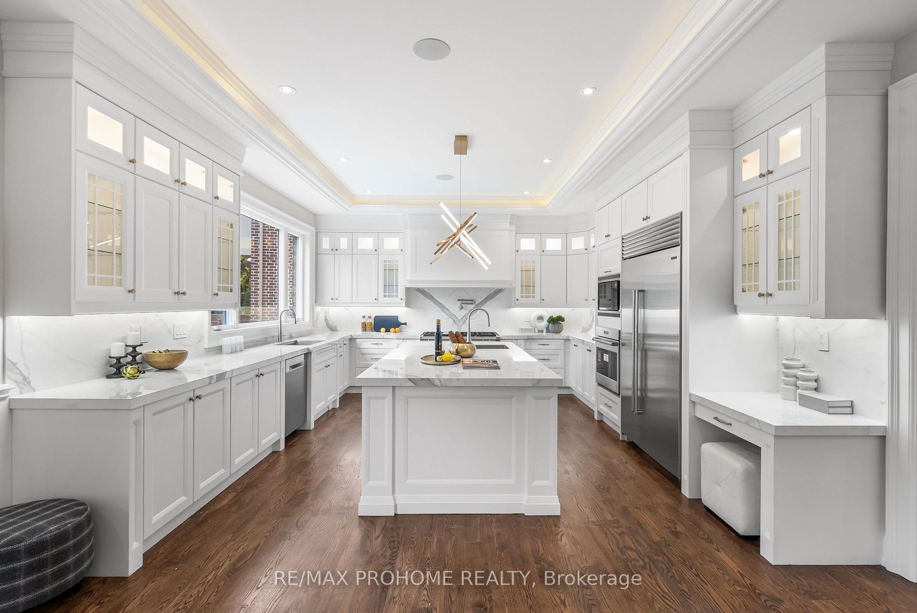 Welcome to 8 Worsley Court, a rare 80-ft premium frontage, custom-built estate with a 3-car garage, ideally situated on a quiet private court in one of Unionville's most coveted enclaves. This exceptional residence showcases over 6,500 sq. ft. of exquisite living space (including a fully finished walk-up basement with in-floor heating), blending timeless architecture with modern sophistication. Designed with uncompromising attention to detail, the home features 5 spacious bedrooms-each with its own ensuite-plus a 6th ensuite bedroom on the lower level, ideal for multi-generational living or extended family. A grand double-door entrance welcomes you into a bright, airy foyer with a skylight, paneled walls, and elegant custom millwork, setting the tone for refined elegance throughout. The open-concept main floor flows seamlessly between formal and casual living areas, accentuated by waffle ceilings, designer chandeliers, and wide-plank hardwood flooring. The gourmet chef's kitchen is a showpiece, complete with top-of-the-line built-in appliances, an oversized island, and a spacious walk-in pantry-perfect for both everyday family living and large-scale entertaining. The primary suite is a true sanctuary featuring a 7-piece spa-inspired ensuite, massive walk-in closet, and abundant natural light. The fully finished walk-up basement includes a theatre room, recreation area, wet bar, sauna, and ensuite guest bedroom-creating the ultimate space for entertainment and relaxation. Set just steps from Toogood Pond, Main Street Unionville, parks, and top-ranked schools, this residence offers the perfect balance of luxury, privacy, and convenience-an unparalleled lifestyle in the heart of Unionville.