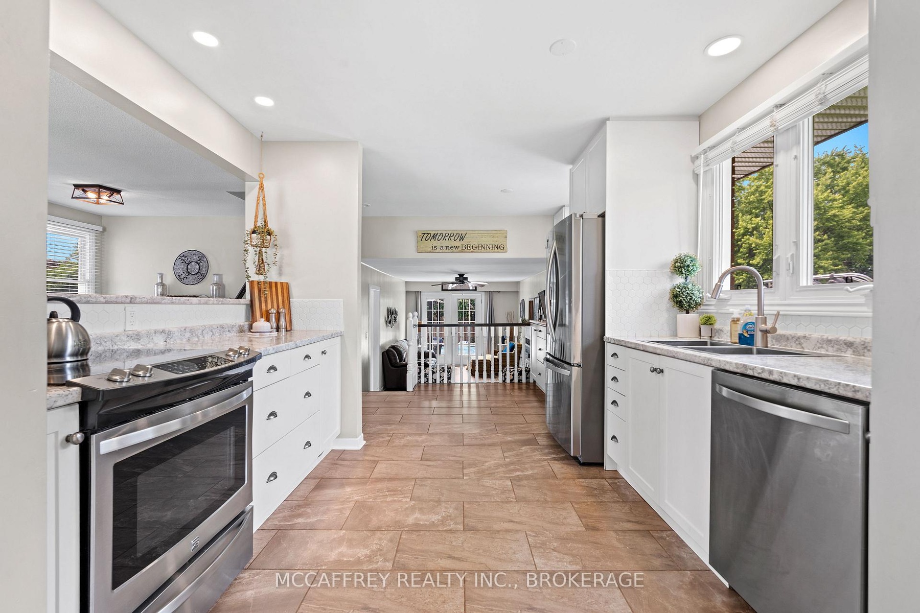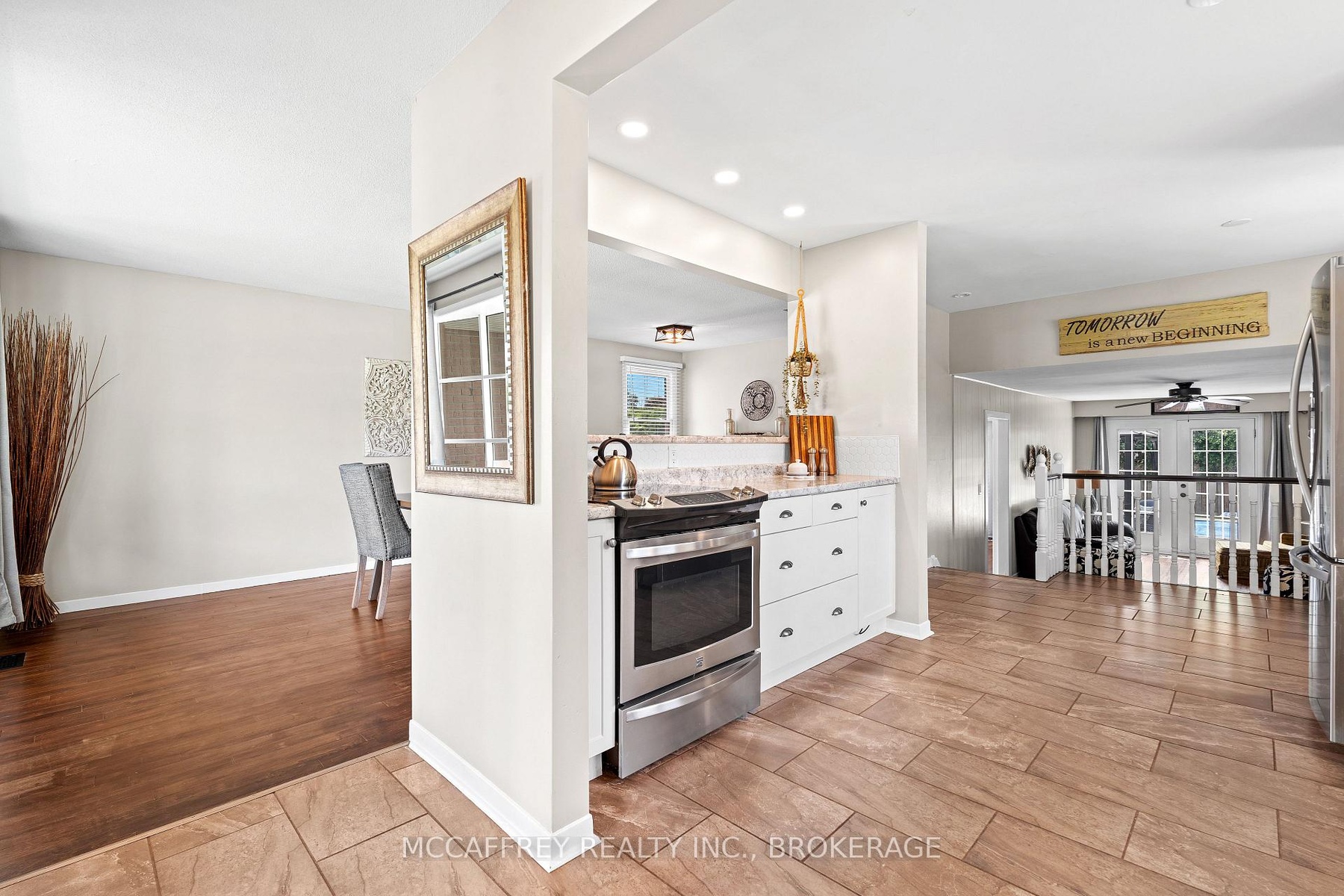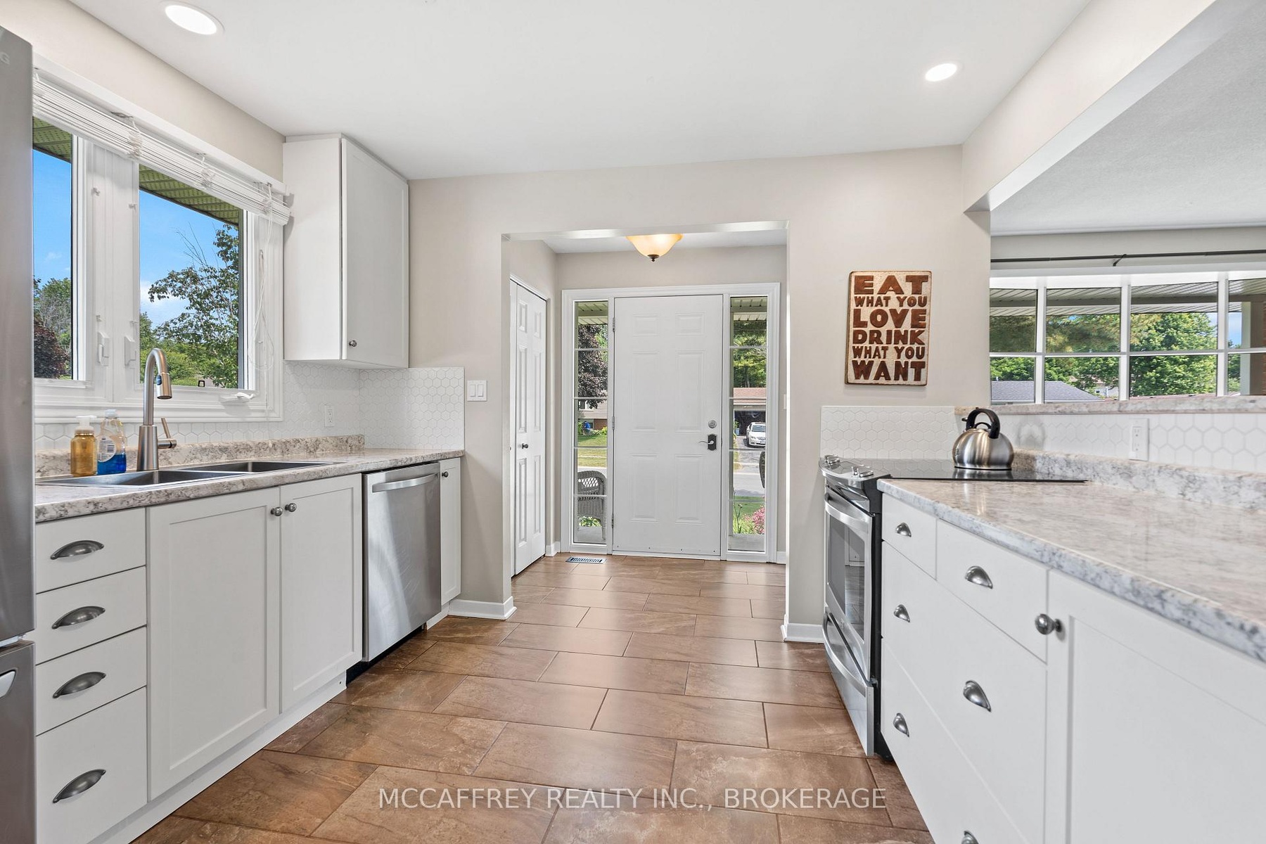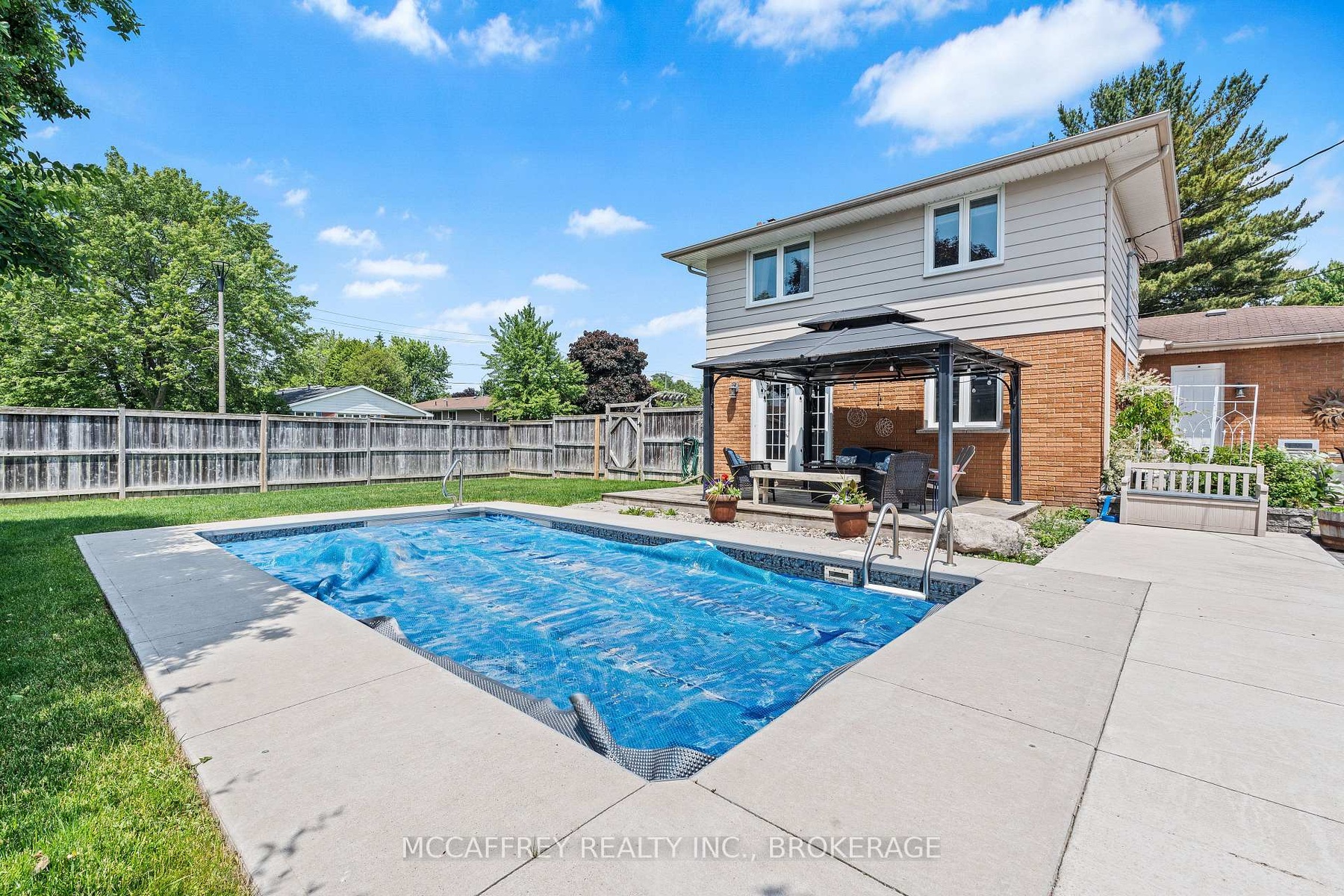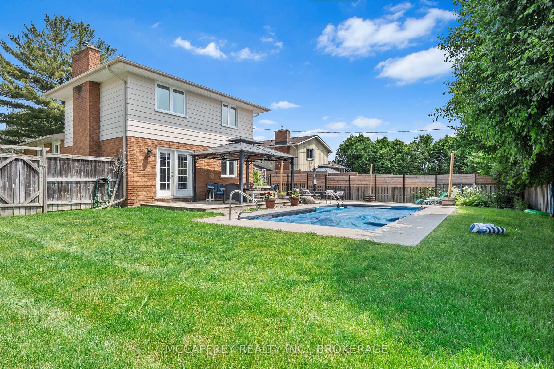 Welcome to your dream home nestled in one of Kingston's most charming and sought-after neighborhoods. This impeccably maintained back split is a true gem, set gracefully on a corner lot, offering the perfect blend of comfort, style, and convenience. As you approach the residence, you're greeted by lovely landscaping that enhances the curb appeal and sets the tone for what awaits inside. Step through the front door and into a bright, fresh, and inviting layout that effortlessly combines functionality with elegance. The heart of this home is the lovely kitchen, complete with a large island/ breakfast barideal for casual meals and entertaining guests. Adjacent to the kitchen, the spacious dining room creates a warm and welcoming atmosphere that flows seamlessly down into the living room. The living room is a cozy haven, featuring a gas fireplace as a focal point, perfect for relaxing evenings. Doors open to reveal an entertainer's paradise in the fully fenced backyard. Imagine sun-soaked afternoons by the inground pool, lounging on the stamped concrete patio, or hosting gatherings on the deck with a covered gazebo. The lush green space provides additional room for outdoor activities and gardening enthusiasts. Completing the main level is a spacious bedroom and a convenient 2-piece bathroom, ideal for guests or a home office. Ascend to the upper level, where you'll find the serene primary bedroom with double closets, an additional bedroom, and a tastefully designed 4-piece bathroom. The lower level offers even more living space, with two more bedrooms that can accommodate a growing family, guests, or a hobby room. A 3-piece bathroom with a combined laundry area ensures functionality and convenience. The utility room provides ample storage, keeping your home organized and clutter-free. From the front curb to the backyard oasis, this home exudes beauty at every turn. Don't miss the opportunity to make this stunning property your own. ( Pool installed 2018 )