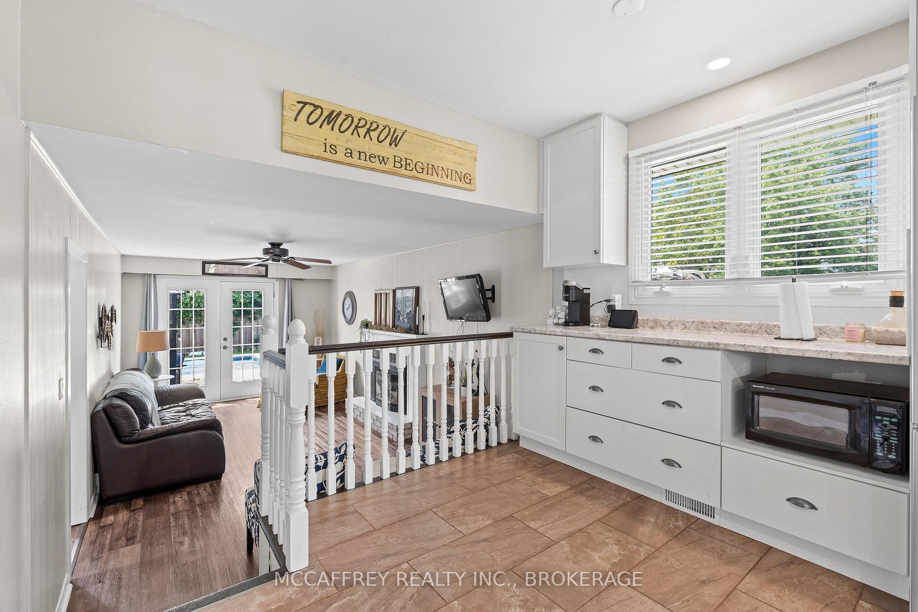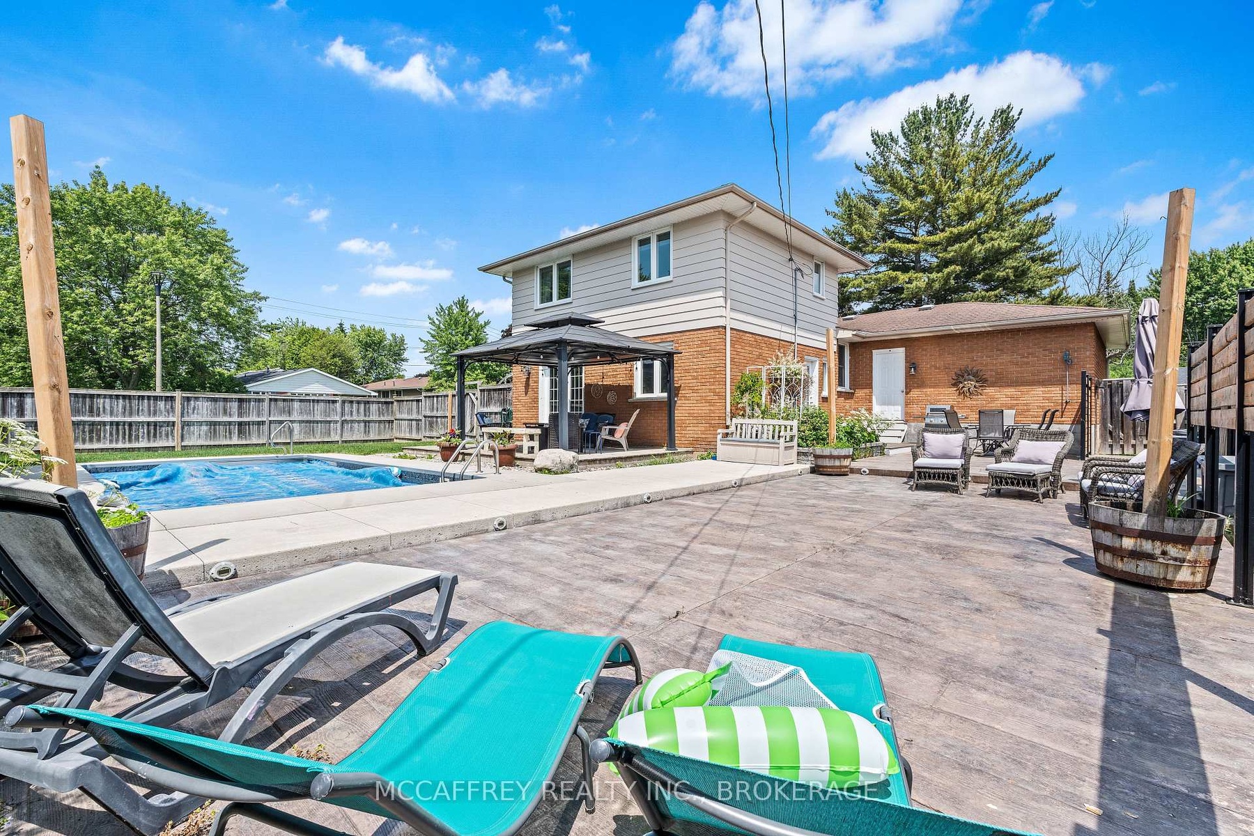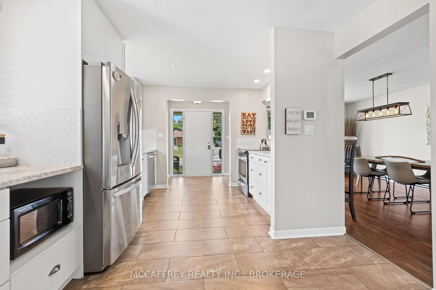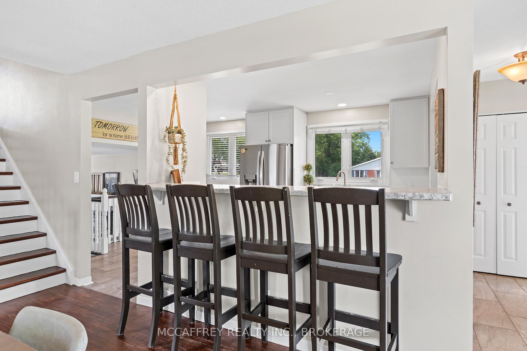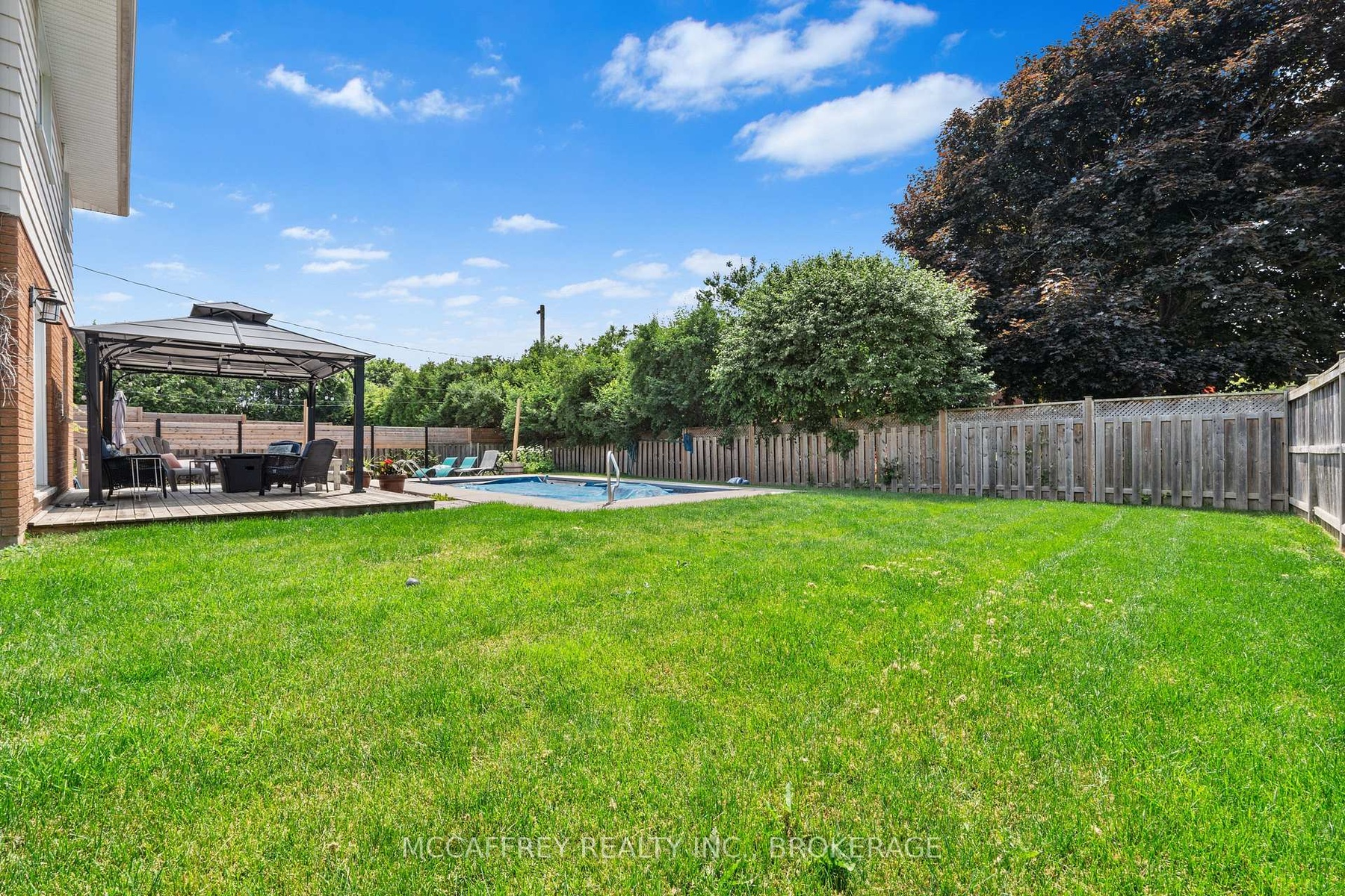 Welcome to your dream home nestled in one of Kingston's most charming and sought-after neighborhoods. This impeccably maintained back split is a true gem, set gracefully on a corner lot, offering the perfect blend of comfort, style, and convenience. As you approach the residence, you're greeted by lovely landscaping that enhances the curb appeal and sets the tone for what awaits inside. Step through the front door and into a bright, fresh, and inviting layout that effortlessly combines functionality with elegance. The heart of this home is the lovely kitchen, complete with a large island/ breakfast barideal for casual meals and entertaining guests. Adjacent to the kitchen, the spacious dining room creates a warm and welcoming atmosphere that flows seamlessly down into the living room. The living room is a cozy haven, featuring a gas fireplace as a focal point, perfect for relaxing evenings. Doors open to reveal an entertainer's paradise in the fully fenced backyard. Imagine sun-soaked afternoons by the inground pool, lounging on the stamped concrete patio, or hosting gatherings on the deck with a covered gazebo. The lush green space provides additional room for outdoor activities and gardening enthusiasts. Completing the main level is a spacious bedroom and a convenient 2-piece bathroom, ideal for guests or a home office. Ascend to the upper level, where you'll find the serene primary bedroom with double closets, an additional bedroom, and a tastefully designed 4-piece bathroom. The lower level offers even more living space, with two more bedrooms that can accommodate a growing family, guests, or a hobby room. A 3-piece bathroom with a combined laundry area ensures functionality and convenience. The utility room provides ample storage, keeping your home organized and clutter-free. From the front curb to the backyard oasis, this home exudes beauty at every turn. Don't miss the opportunity to make this stunning property your own. ( Pool installed 2018 )