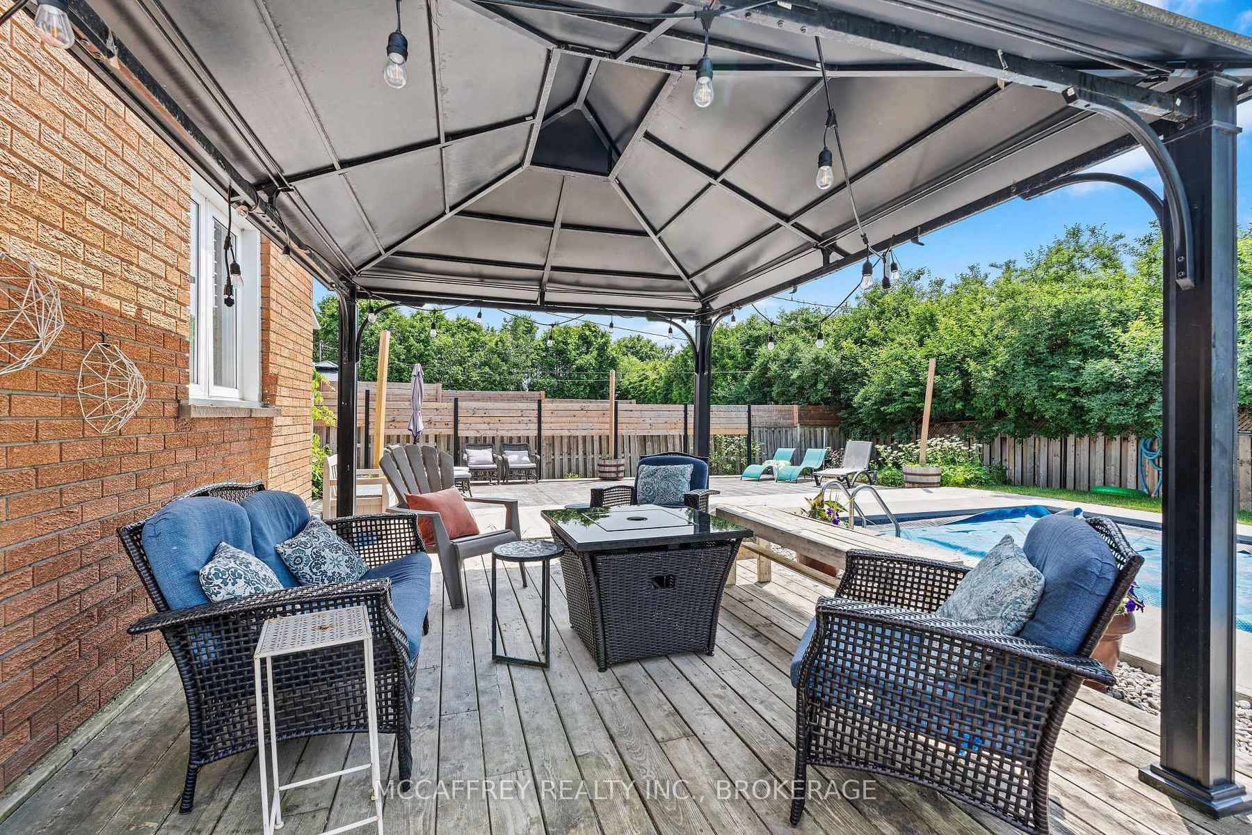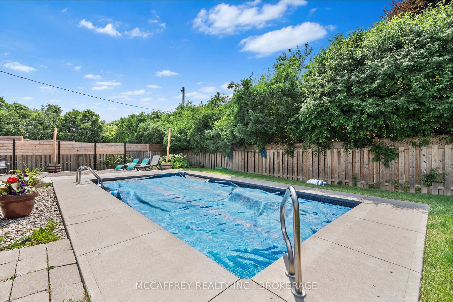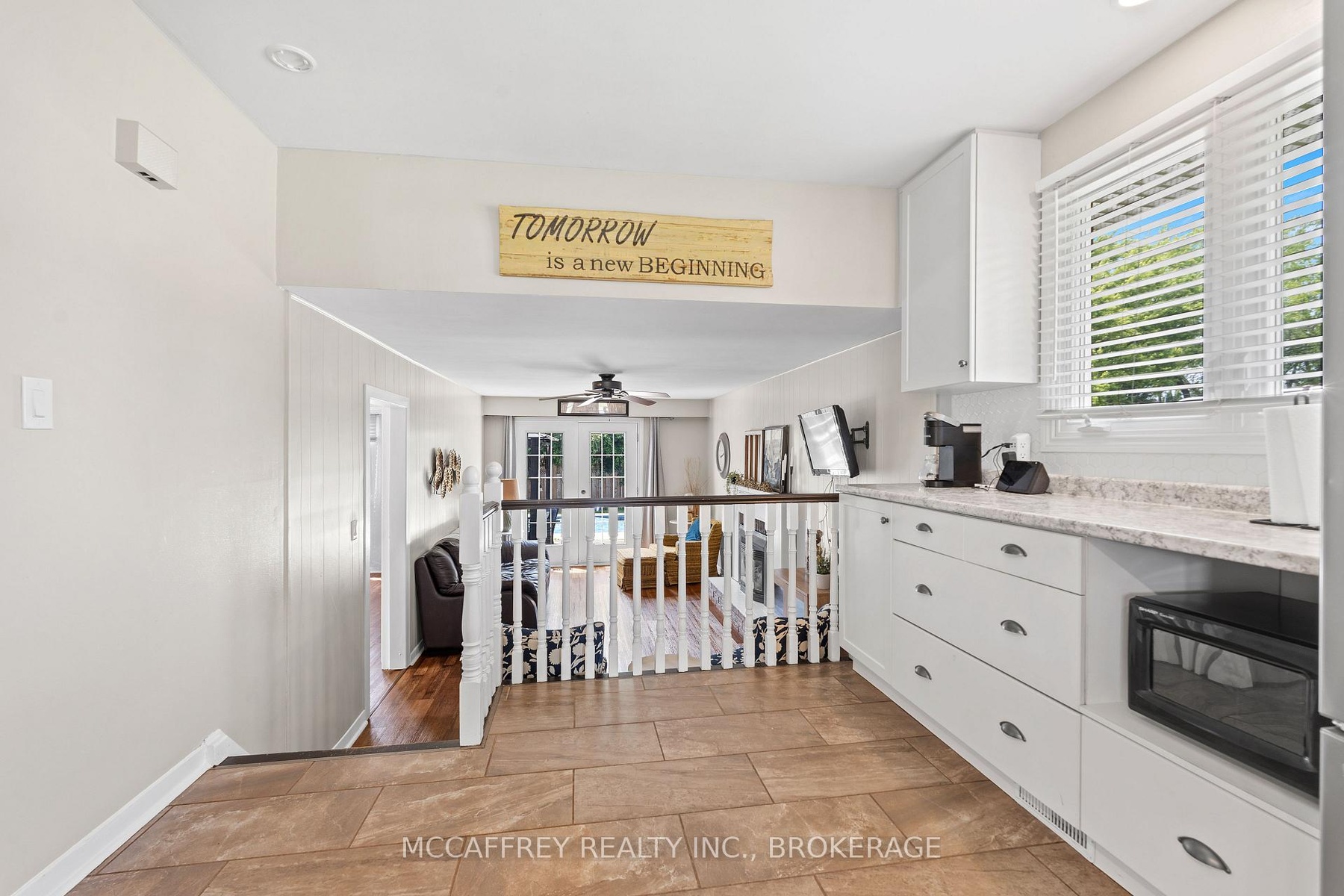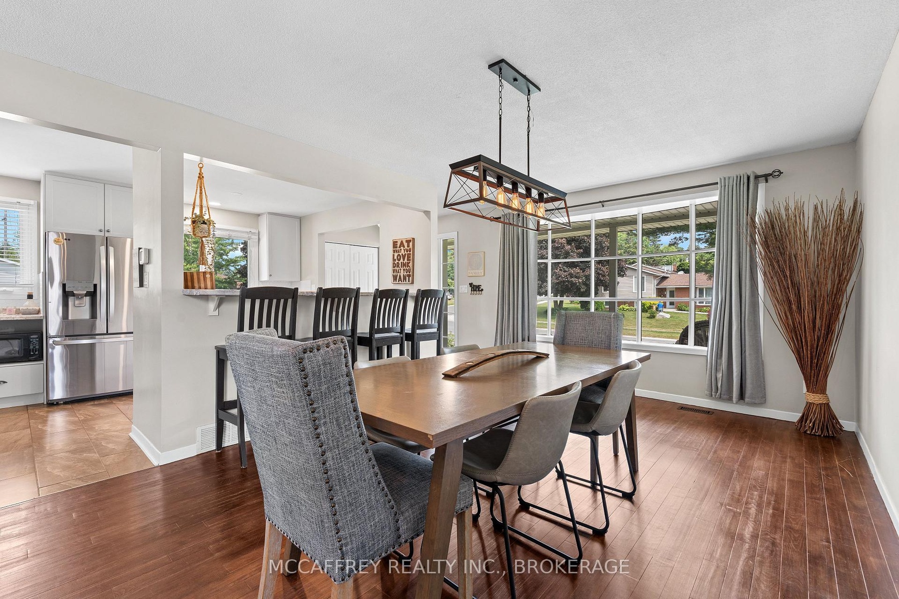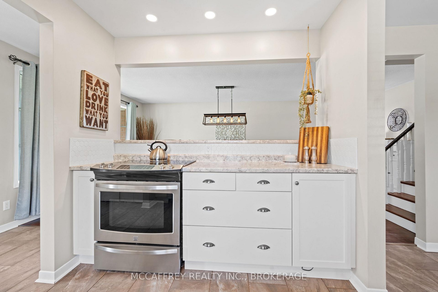 Welcome to your dream home nestled in one of Kingston's most charming and sought-after neighborhoods. This impeccably maintained back split is a true gem, set gracefully on a corner lot, offering the perfect blend of comfort, style, and convenience. As you approach the residence, you're greeted by lovely landscaping that enhances the curb appeal and sets the tone for what awaits inside. Step through the front door and into a bright, fresh, and inviting layout that effortlessly combines functionality with elegance. The heart of this home is the lovely kitchen, complete with a large island/ breakfast barideal for casual meals and entertaining guests. Adjacent to the kitchen, the spacious dining room creates a warm and welcoming atmosphere that flows seamlessly down into the living room. The living room is a cozy haven, featuring a gas fireplace as a focal point, perfect for relaxing evenings. Doors open to reveal an entertainer's paradise in the fully fenced backyard. Imagine sun-soaked afternoons by the inground pool, lounging on the stamped concrete patio, or hosting gatherings on the deck with a covered gazebo. The lush green space provides additional room for outdoor activities and gardening enthusiasts. Completing the main level is a spacious bedroom and a convenient 2-piece bathroom, ideal for guests or a home office. Ascend to the upper level, where you'll find the serene primary bedroom with double closets, an additional bedroom, and a tastefully designed 4-piece bathroom. The lower level offers even more living space, with two more bedrooms that can accommodate a growing family, guests, or a hobby room. A 3-piece bathroom with a combined laundry area ensures functionality and convenience. The utility room provides ample storage, keeping your home organized and clutter-free. From the front curb to the backyard oasis, this home exudes beauty at every turn. Don't miss the opportunity to make this stunning property your own. ( Pool installed 2018 )