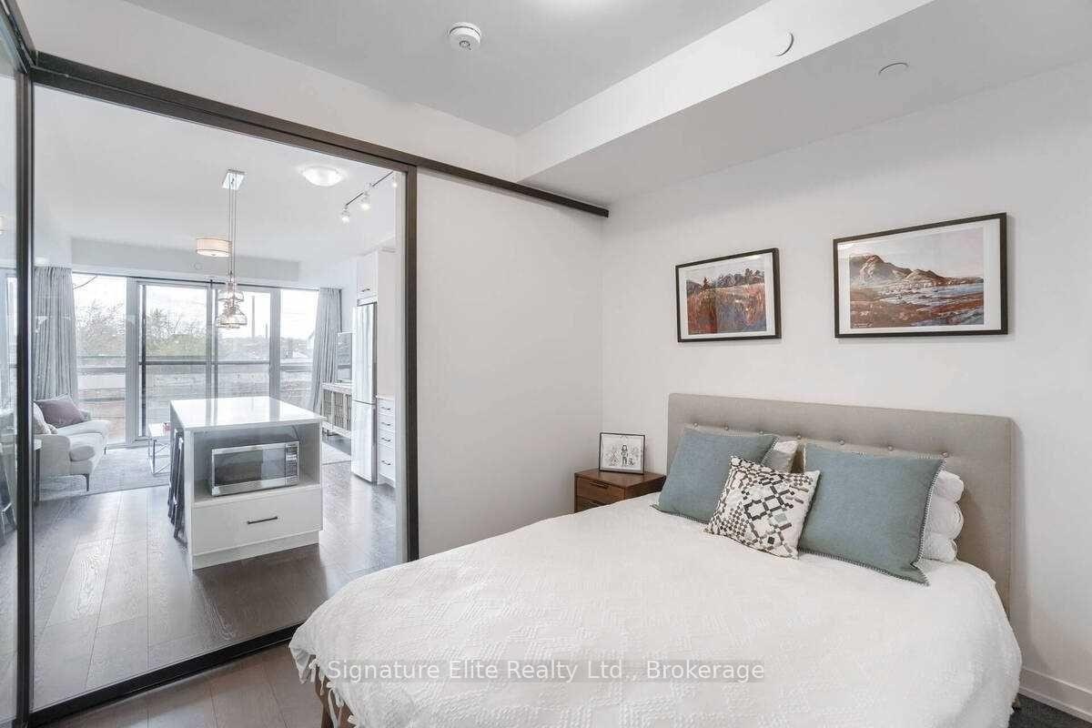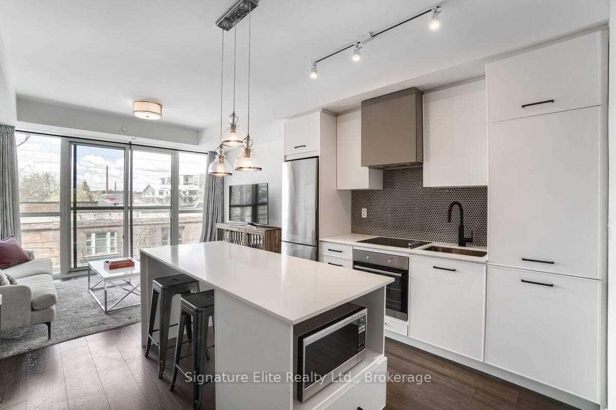 Live in the heart of Leslieville - where style, convenience, and community meet. This bright 1-bedroom + den suite offers a modern open-concept layout with floor-to-ceiling windows and a Juliette balcony overlooking the vibrant shops and restaurants of Queen Street East. The sleek kitchen features stainless-steel appliances, and a large centre island with seating area and excellent storage - perfect for both cooking and entertaining. The separate den provides flexibility for a dedicated home office or guest space, while ensuite laundry adds everyday ease. Enjoy an unbeatable East End location surrounded by trendy cafés, local boutiques, and multiple parks, with TTC streetcar access right outside your door and a quick commute downtown. Residents can enjoy amenities that include a gym, rooftop terrace, party room, pet spa, and bike storage. A stylish, functional lease in one of Toronto's most desirable neighbourhoods - steps to everything that makes Leslieville exceptional.