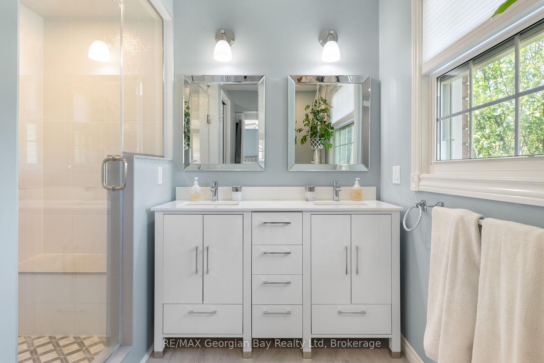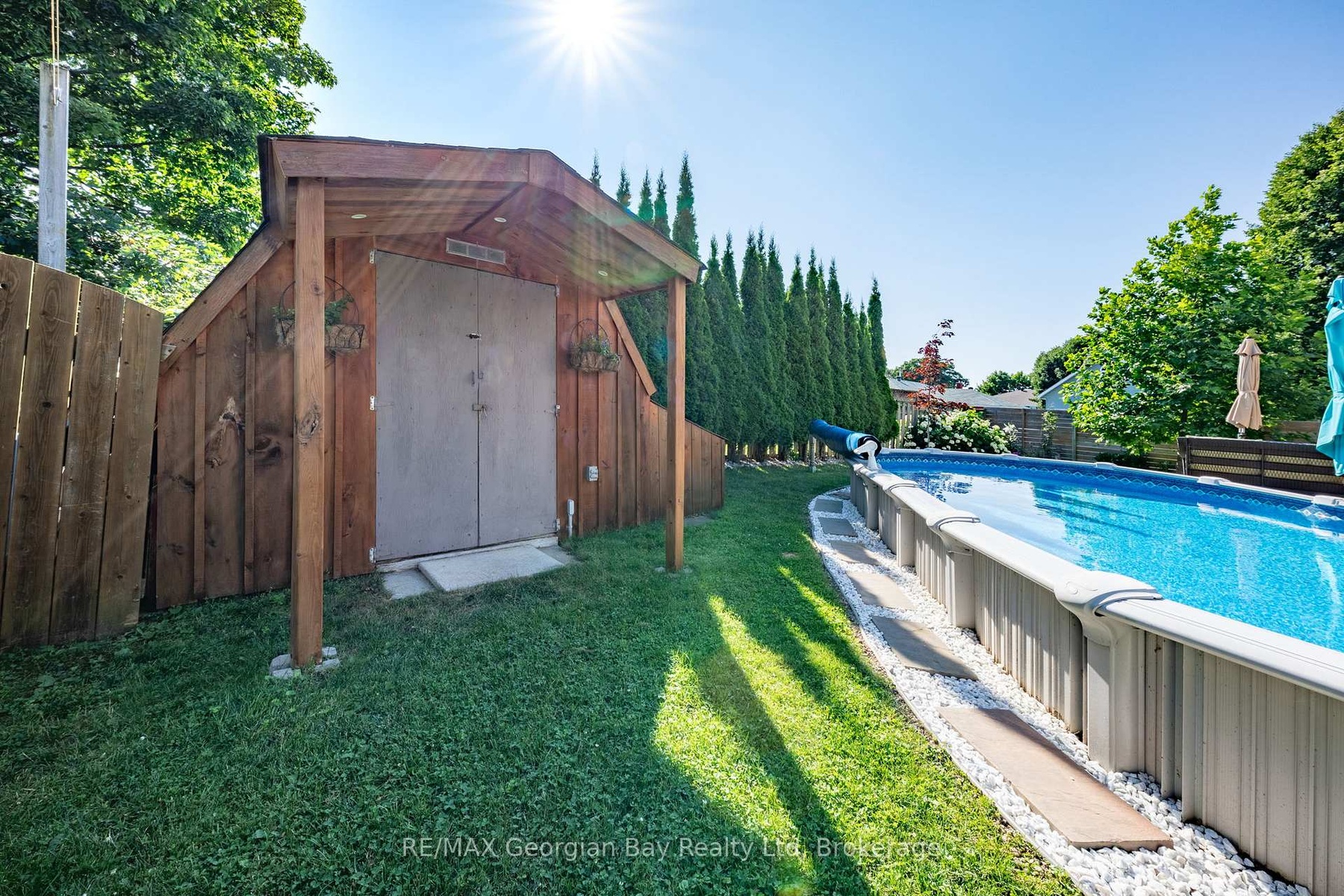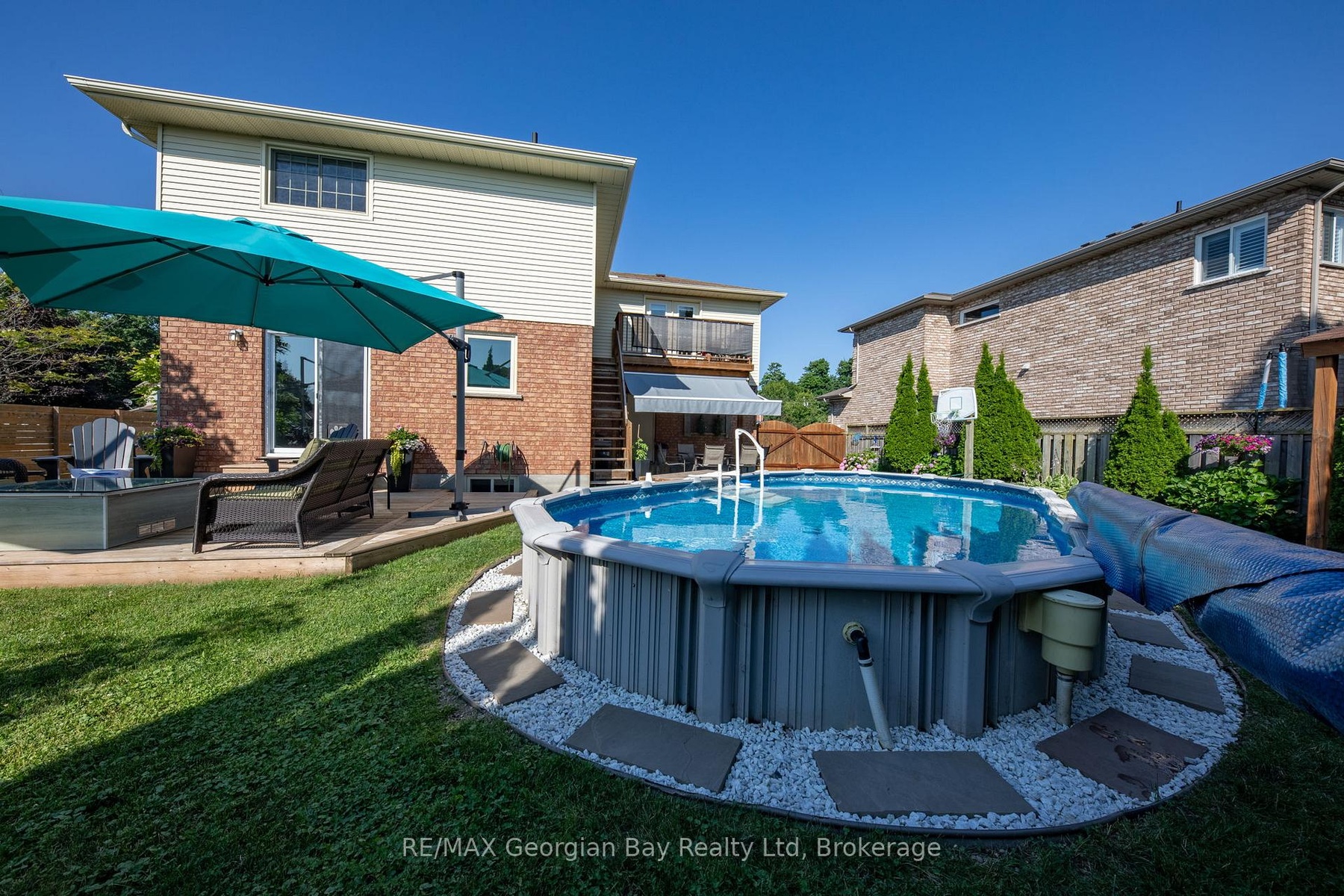 Location, Location, Location! This charming 3-bedroom family home is situated in Midlands highly desirable West End. The main level features a large eat-in kitchen, spacious living and dining areas, and a primary bedroom with ensuite and steam shower. The fully finished basement offers a generous rec room, exercise area, and office/storage space. Hardwood and ceramic floors flow throughout, complemented by gas heat, central air, a 2-car garage, and paved driveway. Perfect for entertaining, the backyard includes a deck, patio, above-ground pool, and fenced yard. All this within walking distance to local amenities, schools, and the beautiful shores of Georgian Bay- too much to list!