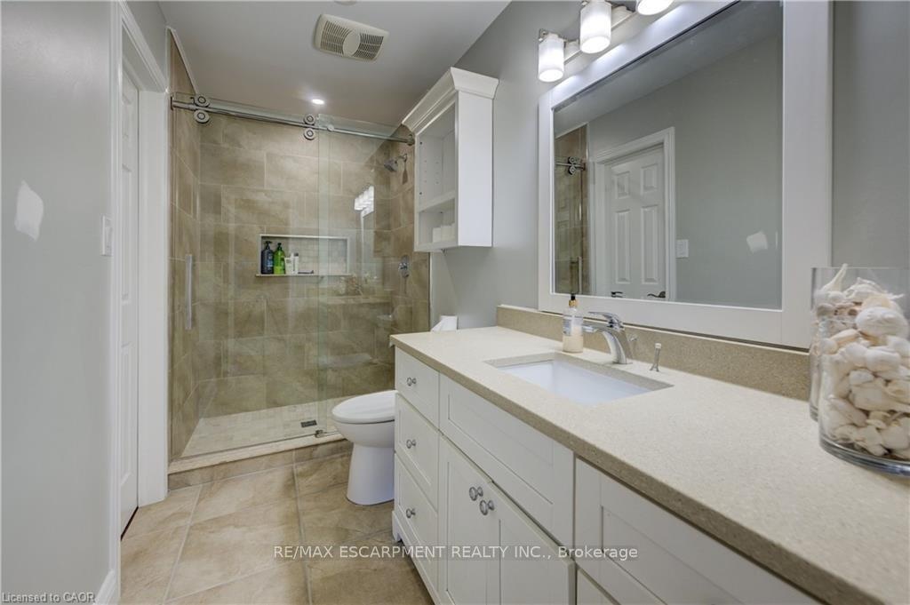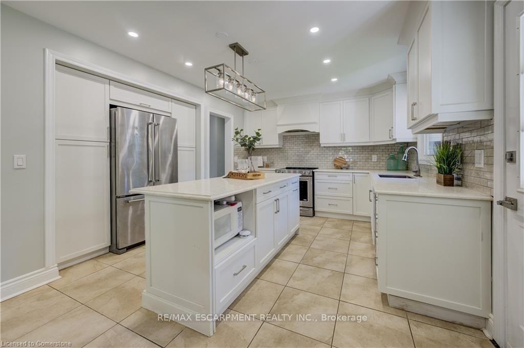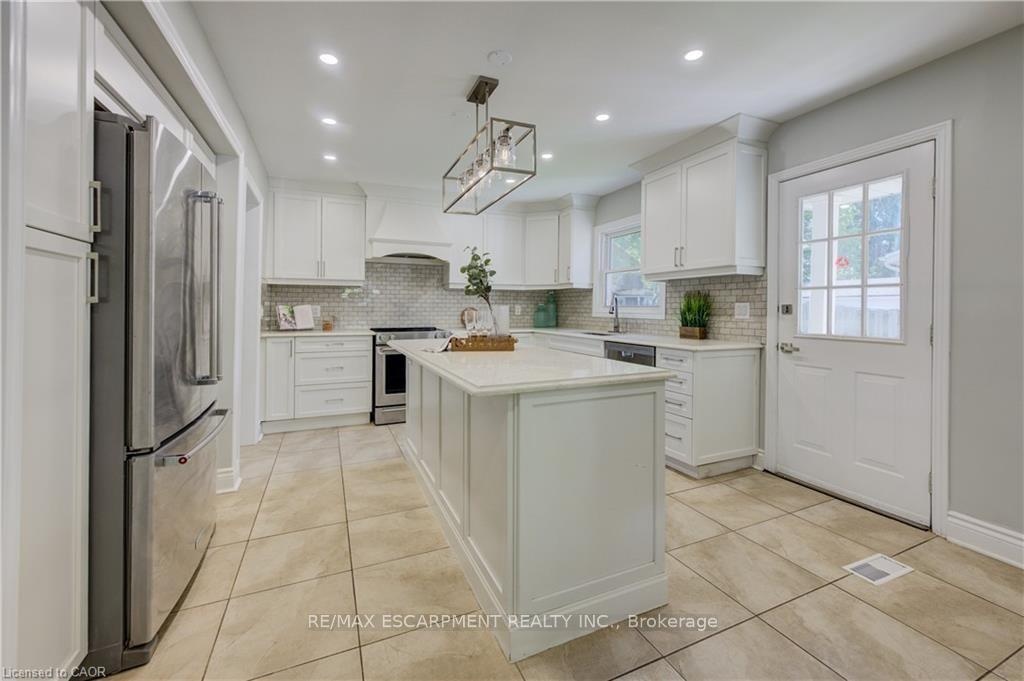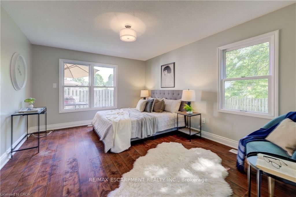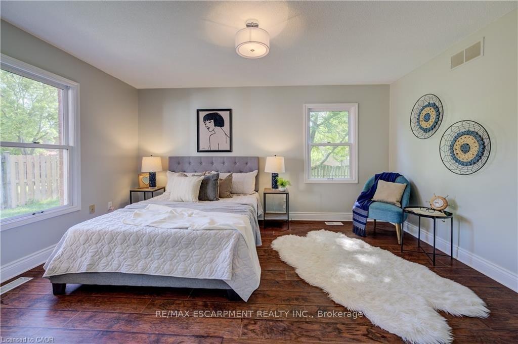 Welcome to serenity!! This stunning home is situated in a beautiful and QUIET neighbourhood with mature trees, yet only minutes to major hwys! Gorgeous fireplace with stone feature sets the tone for this lovey home creating a welcoming atmosphere. Professional upgrades include a Kitchen a chef would love! Stunning cabinetry, pot lighting, quartz countertop, island & stainless steel appliances. Main level primary bedroom with walk-in closet and fully updated bath. The view from the upper level looking over the living room is breathtaking!! An additional added feature, is the open upper hall (could be used as home office). Wood floors, freshly painted and ready! Enjoy this summer is a VERY large fully fenced yard where you can enjoy some family time!