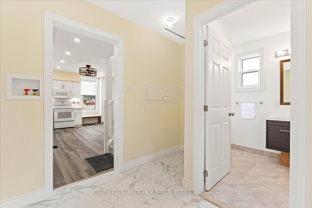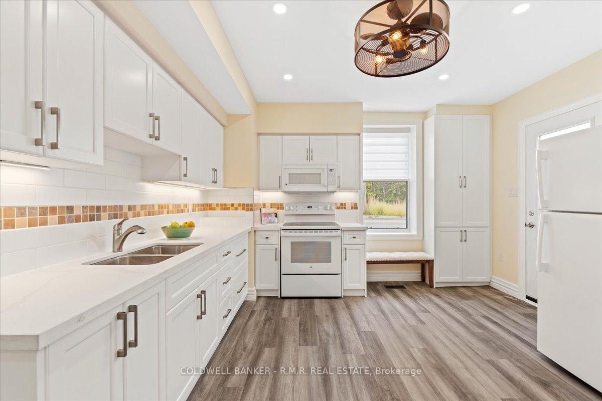 Tucked in the heart of Ontario's scenic "Apple Route," home to the well-known Big Apple, this newly renovated home invites you to enjoy the simple pleasures of small-town living. Every corner of this home has been thoughtfully upgraded throughout and is move in ready, including new windows and front door (2023), upgraded insulation and new drywall (2024), 200-amp service (2024), new back addition with steel roof (2024) to add to the rest of the home's maintenance free steel roofing, pot lights (2024), 2 bathrooms and kitchen (2025), new flooring throughout (2025), to name a few. From the moment you arrive, you will feel the warmth and charm this home offers. The bright, open-concept living and dining area is made for everyday life, sharing meals, relaxing with family, or catching up with friends. Large new windows fill the space with natural light, while sliding patio doors lead to the backyard, providing extra space to enjoy. The kitchen is the true heart of the home with quartz countertops, offers ample cabinetry, under-cabinet lighting and new appliances, making it ideal of meal preparation or entertaining. The main level boasts a new addition which includes the convenience of a full bath, laundry and spacious utility room. Upstairs, you will find three inviting bedrooms that balance comfort and charm, perfect for a growing family, guests, or a dedicated home office. A full bathroom completes the upper level. Enjoy being within walking distance of shops, the library, and restaurants, all while having Lake Ontario close by. The easy access to Highway 401, makes commuting or weekend getaways a breeze. Whether you are starting out, or simplifying life, this house is the perfect place to call home.