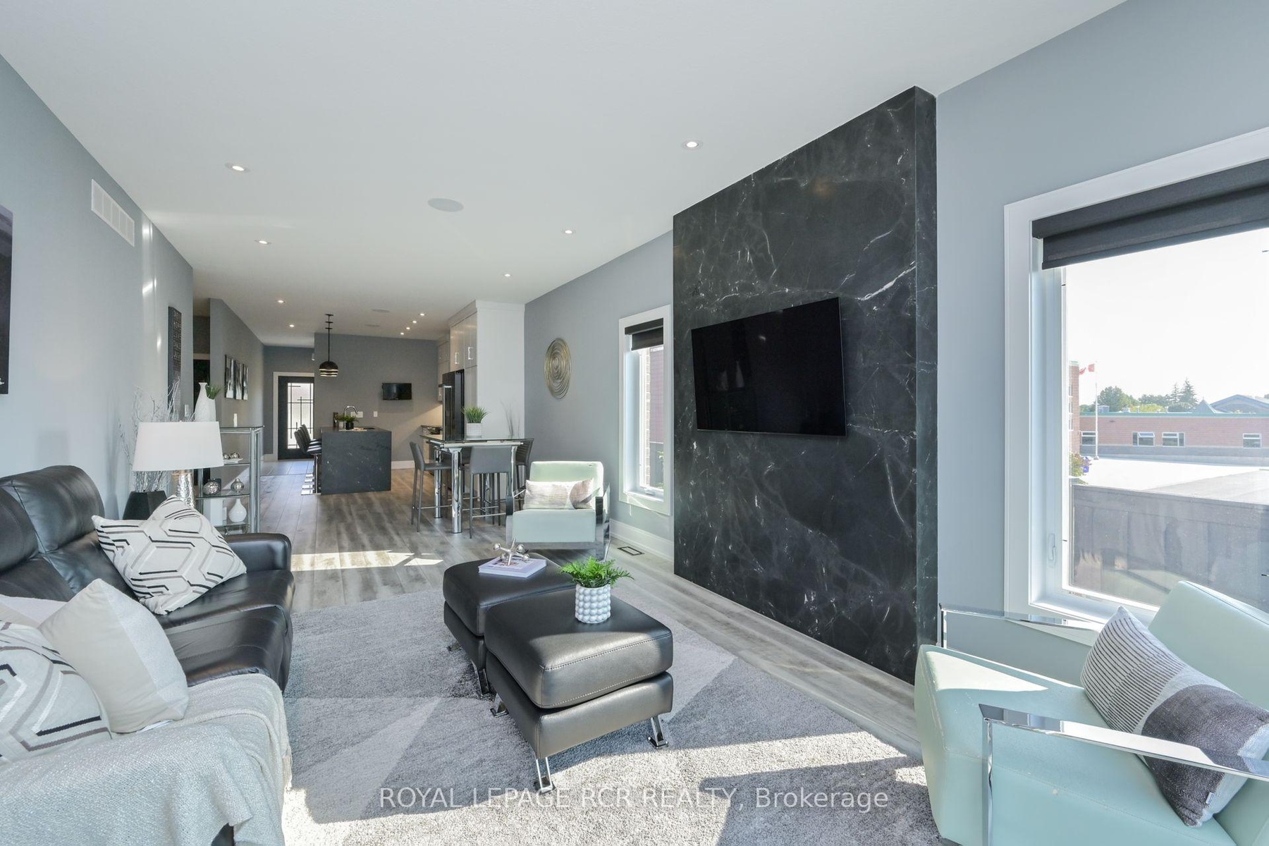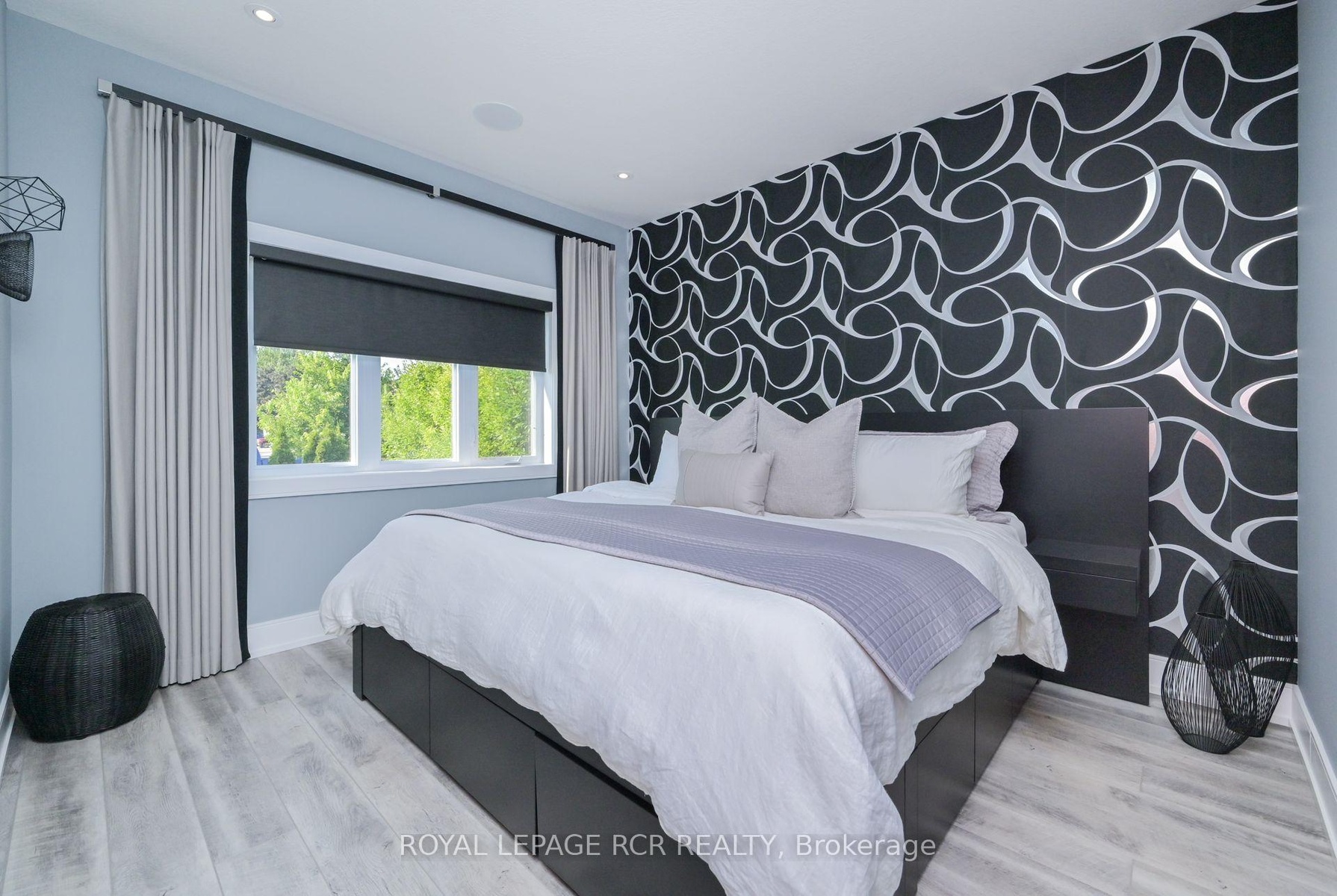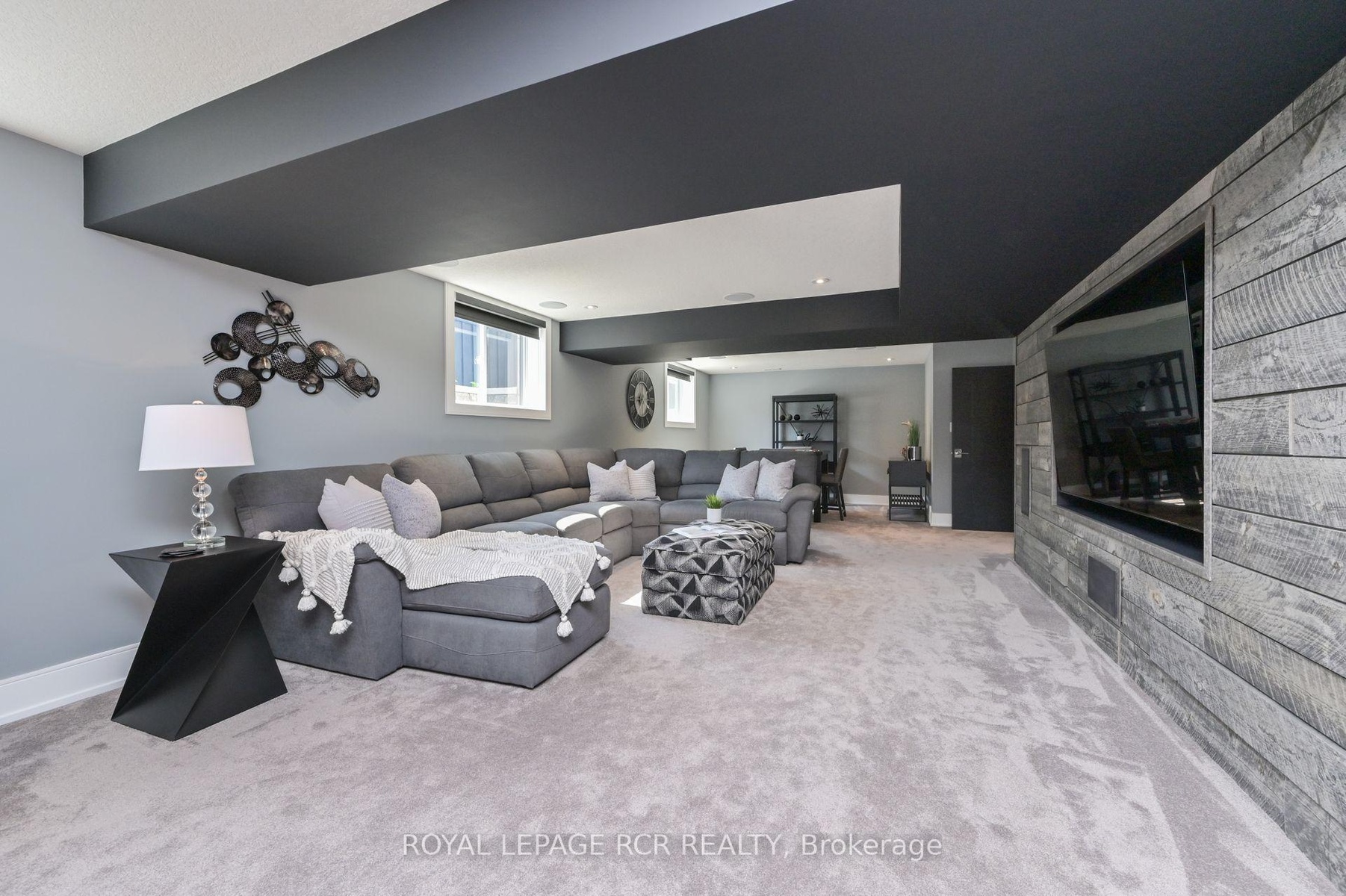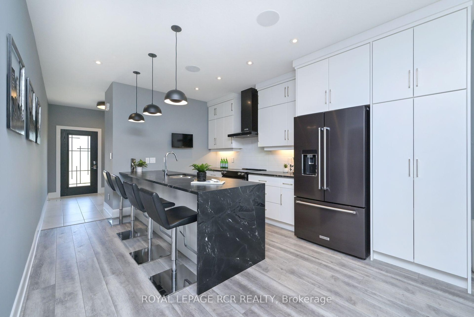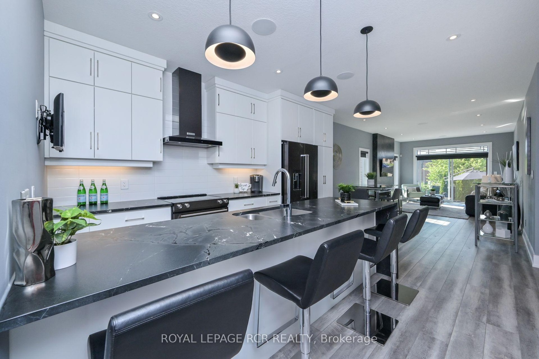 Look no further for luxurious living in the heart of Fergus! Close to all amenities, fine dining, parks, and the historic charm Fergus has to offer, we proudly present this exquisite, fully customized, fully finished, 2+1-bedroom, 3-bathroom bungalow with every modern update imaginable. Maintenance free landscaping with turf, concrete walkways and massive back patio for entertaining overlooks stunning perennial gardens with numerous varieties of trees, flowers and perennials that bloom all year long. Large foyer invites guests with double closet, wood accent wall, glass railing/custom maple staircase and flows into the open concept kitchen/living/dining room boasting leather granite counters, 10' breakfast bar, top of the line black stainless steel appliances, floor to ceiling cabinets, undermount lighting, 9' ceilings, custom leather granite accent wall with built in tv and huge sliding doors with transom windows which walks out to back patio. Primary bedroom with walk in closet & custom 3-piece ensuite with walk in shower. Additional bedroom and custom 4-piece bathroom complete the main level. Lower level features spectacular rec/games room with custom 3D accent wall, enormous built in tv, huge laundry room, 3rd bedroom, 3-piece bathroom and storage room. **EXTRAS** Custom updated trim, doors, exquisite lighting, speaker system throughout, blink cameras, custom electronic blinds - the list doesn't end!