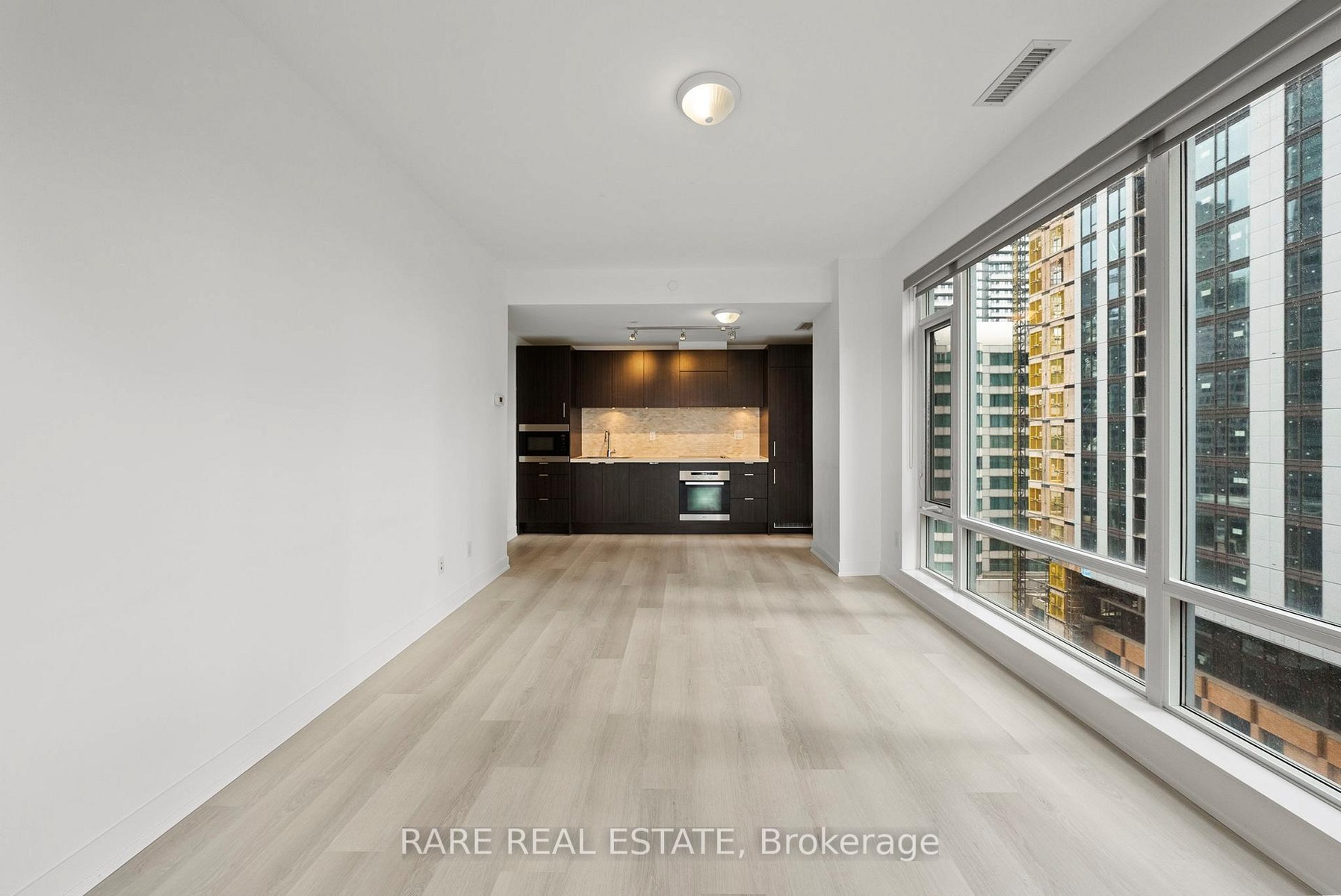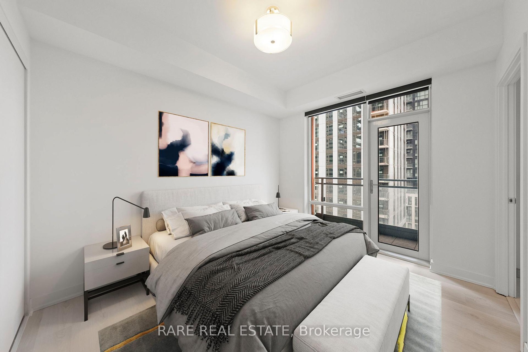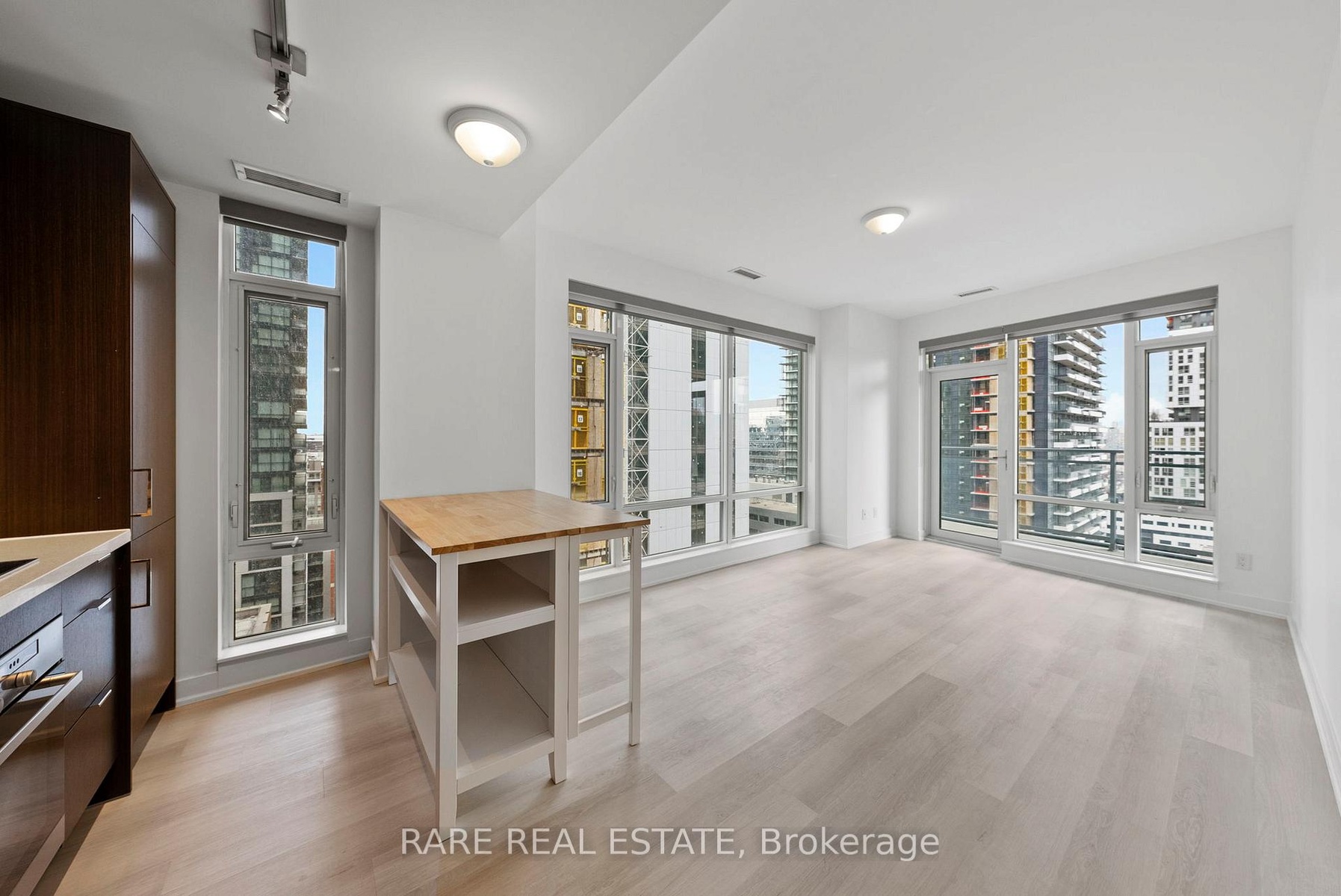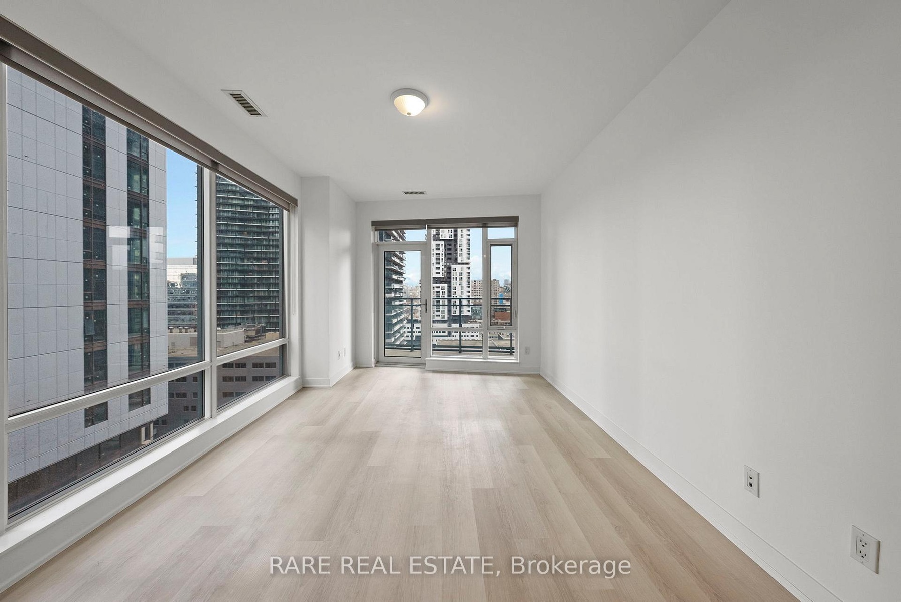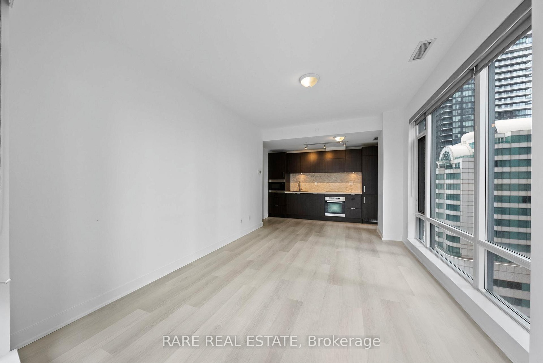 Welcome Home To Your Stunning Corner Suite At Cinema Tower! This freshly painted and professionally cleaned split 2-bedroom, 2-bathroom layout offers 985 sq. ft. of living space (858 sq. ft. interior + 127 sq. ft. balconies) filled with natural light. Located in the heart of Torontos Entertainment and Financial District, this highly desirable building offers an unbeatable lifestyle.The spacious, open-concept living and dining area is perfect for entertaining, featuring floor-to-ceiling windows with spectacular north-west city views and direct access to one of two private balconies. The designer kitchen boasts quartz countertops, high-end integrated appliances, and an upgraded island that is ideal for both cooking and gathering.The primary bedroom offers a large closet, a private balcony, and a spa-like 4-piece ensuite bathroom. The second bedroom is generously sized with floor-to-ceiling windows and ample closet space, with a second full bathroom conveniently located nearby making this suite perfect for families, professionals, or anyone who values comfort and privacy.Additional highlights include upgraded vinyl flooring throughout, an abundance of natural light, and a layout that provides excellent flow and functionality. Both bedrooms are private and well-proportioned, and the unit feels bright, spacious, and inviting.Residents of Cinema Tower enjoy access to incredible amenities including a state-of-the-art fitness centre, 24-hour concierge, rooftop terrace, media room, party room, and more. With the TTC right at your doorstep and some of Torontos best dining, shopping, and entertainment all around you, this location is second to none.