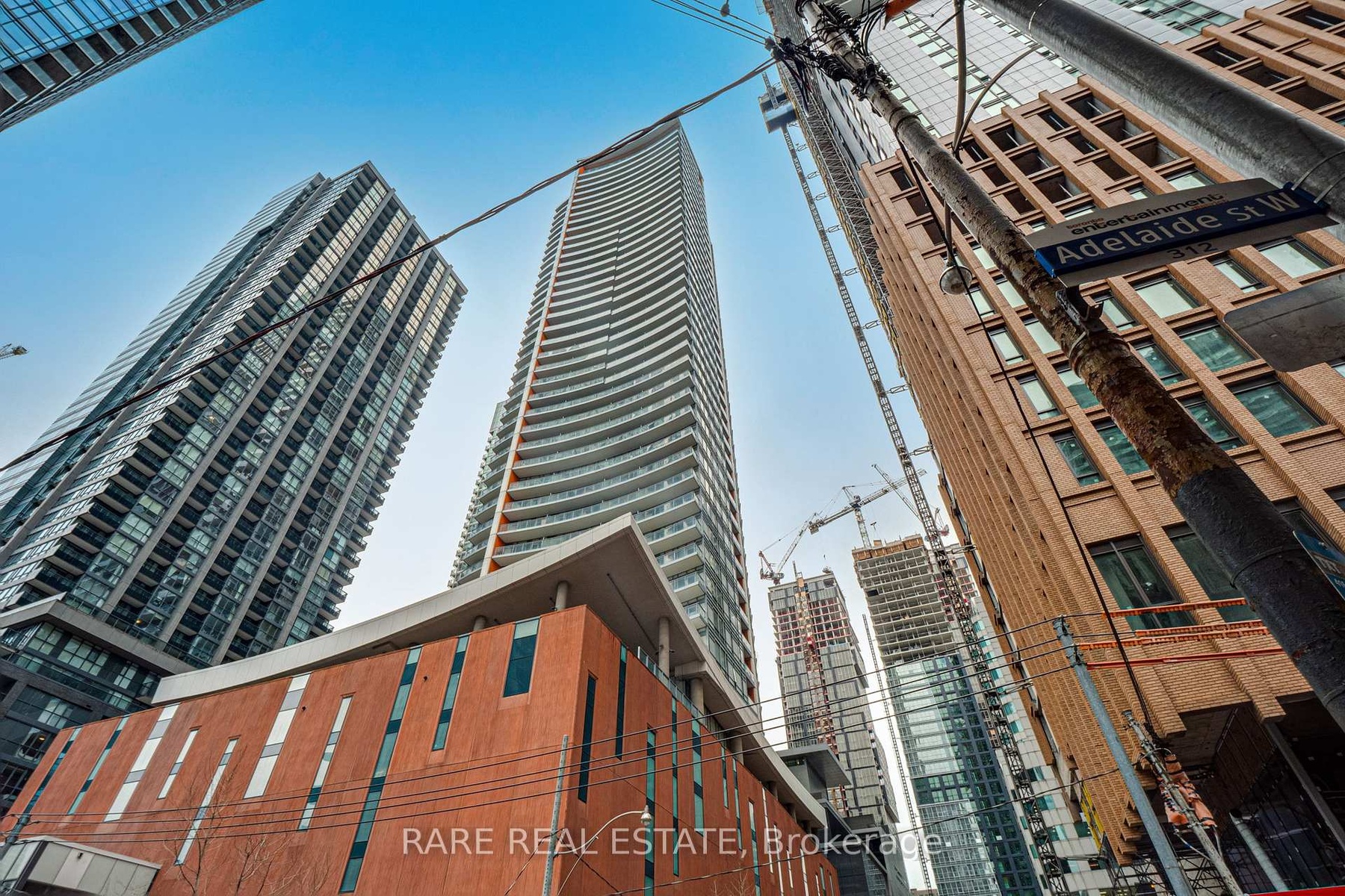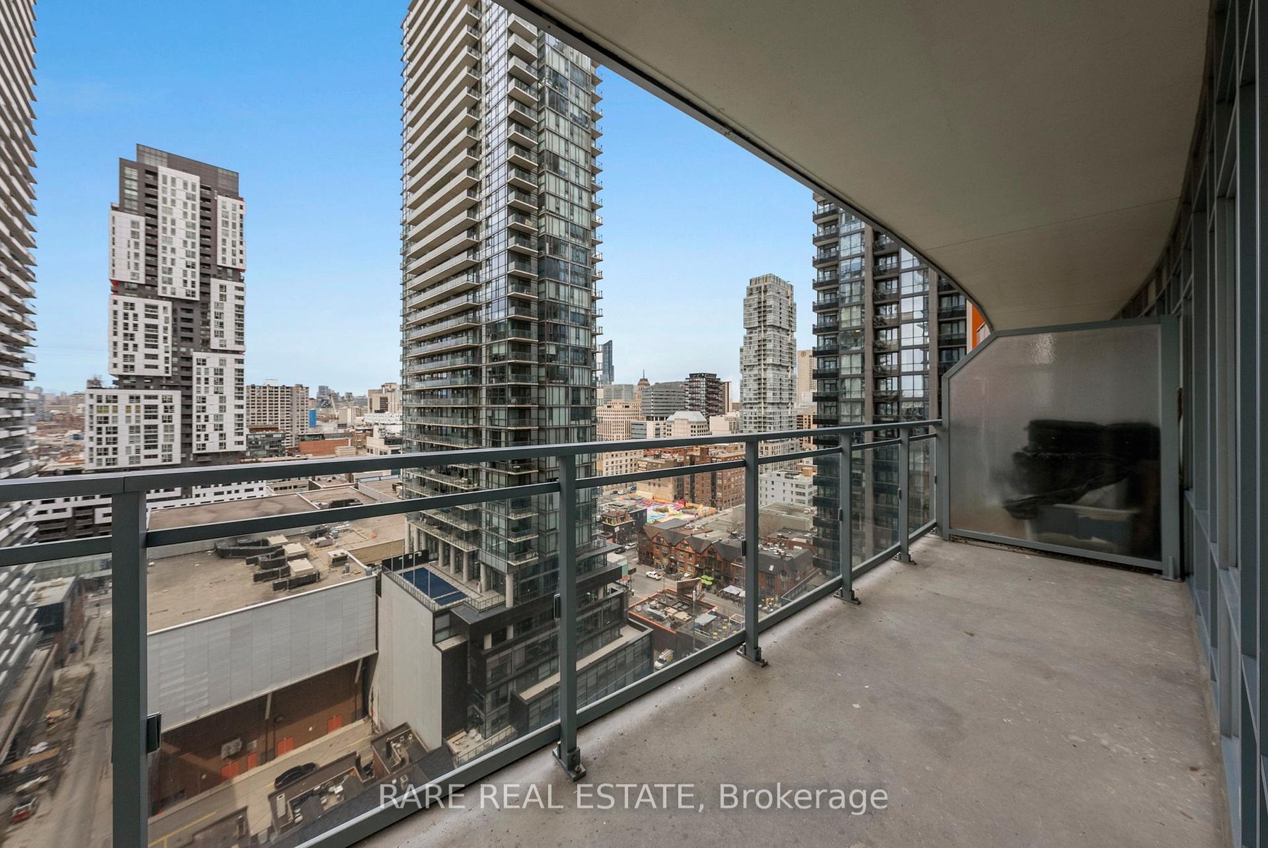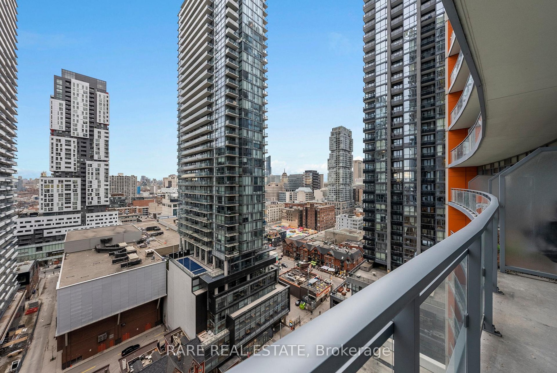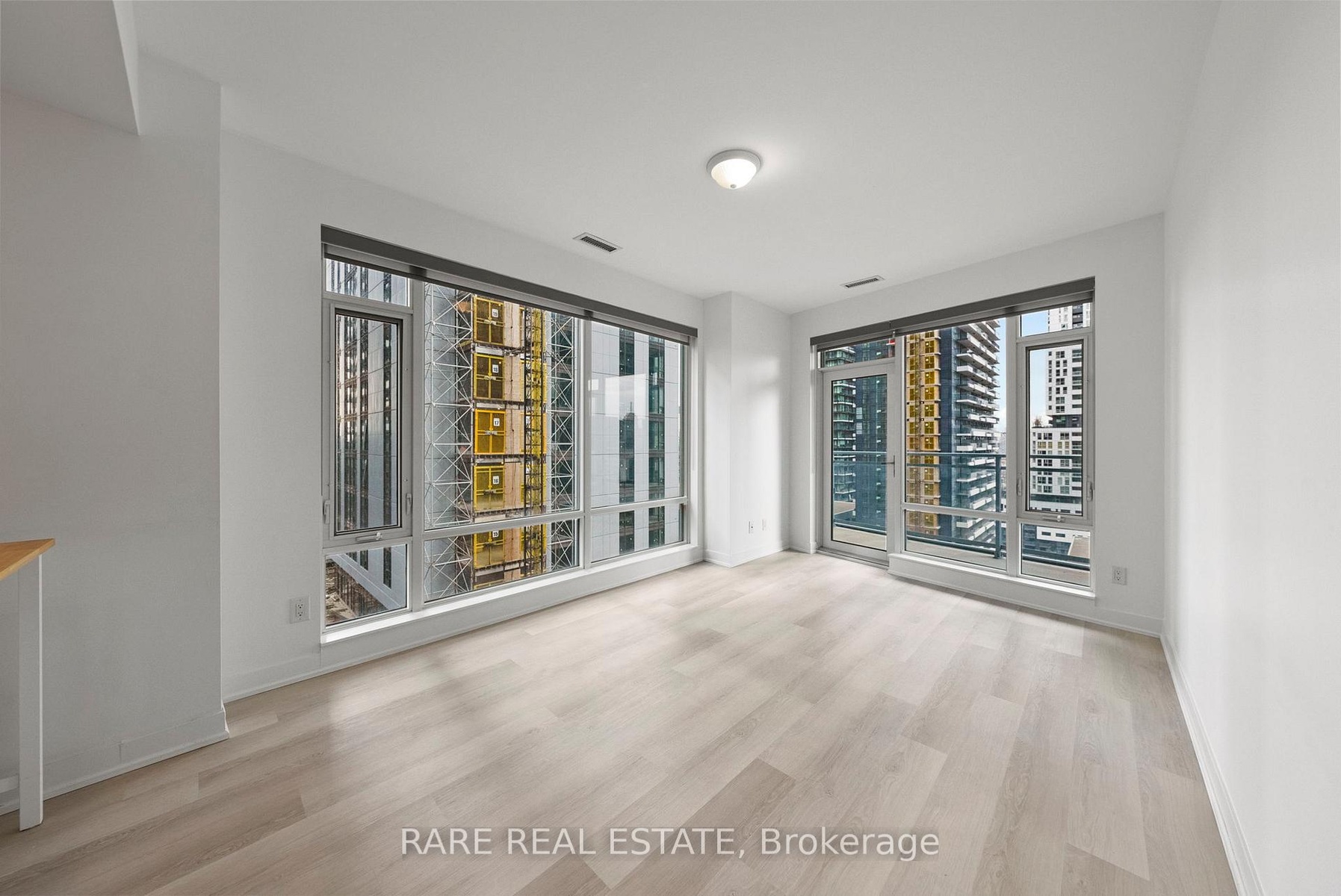 Welcome Home To Your Stunning Corner Suite At Cinema Tower! This freshly painted and professionally cleaned split 2-bedroom, 2-bathroom layout offers 985 sq. ft. of living space (858 sq. ft. interior + 127 sq. ft. balconies) filled with natural light. Located in the heart of Torontos Entertainment and Financial District, this highly desirable building offers an unbeatable lifestyle.The spacious, open-concept living and dining area is perfect for entertaining, featuring floor-to-ceiling windows with spectacular north-west city views and direct access to one of two private balconies. The designer kitchen boasts quartz countertops, high-end integrated appliances, and an upgraded island that is ideal for both cooking and gathering.The primary bedroom offers a large closet, a private balcony, and a spa-like 4-piece ensuite bathroom. The second bedroom is generously sized with floor-to-ceiling windows and ample closet space, with a second full bathroom conveniently located nearby making this suite perfect for families, professionals, or anyone who values comfort and privacy.Additional highlights include upgraded vinyl flooring throughout, an abundance of natural light, and a layout that provides excellent flow and functionality. Both bedrooms are private and well-proportioned, and the unit feels bright, spacious, and inviting.Residents of Cinema Tower enjoy access to incredible amenities including a state-of-the-art fitness centre, 24-hour concierge, rooftop terrace, media room, party room, and more. With the TTC right at your doorstep and some of Torontos best dining, shopping, and entertainment all around you, this location is second to none.