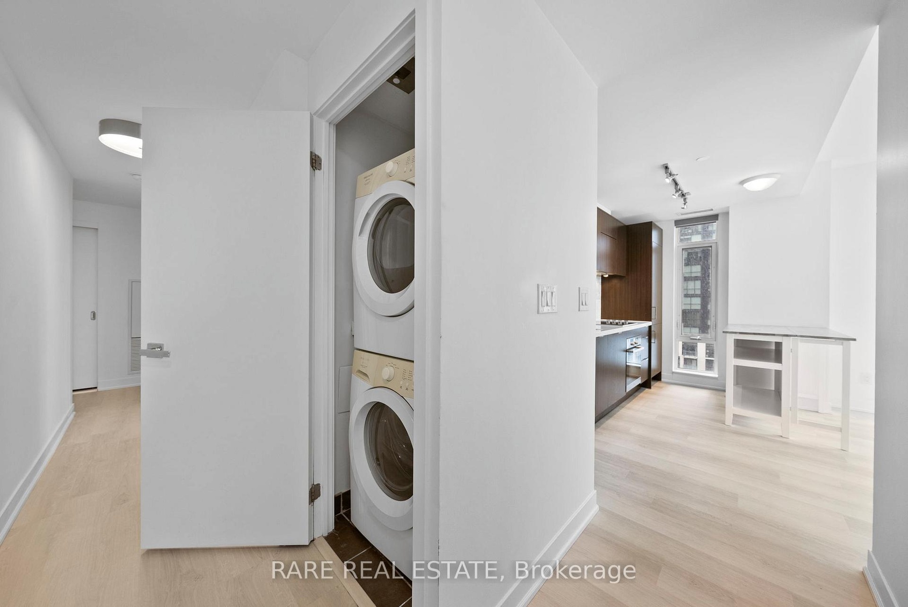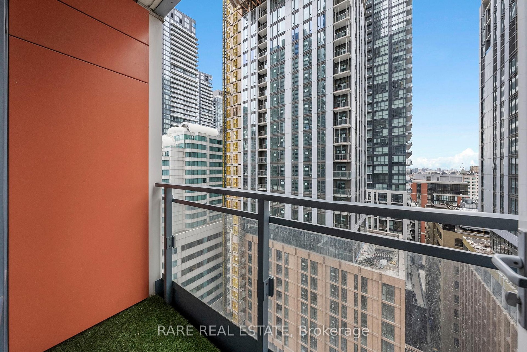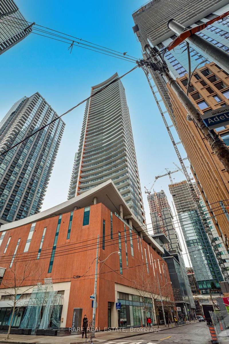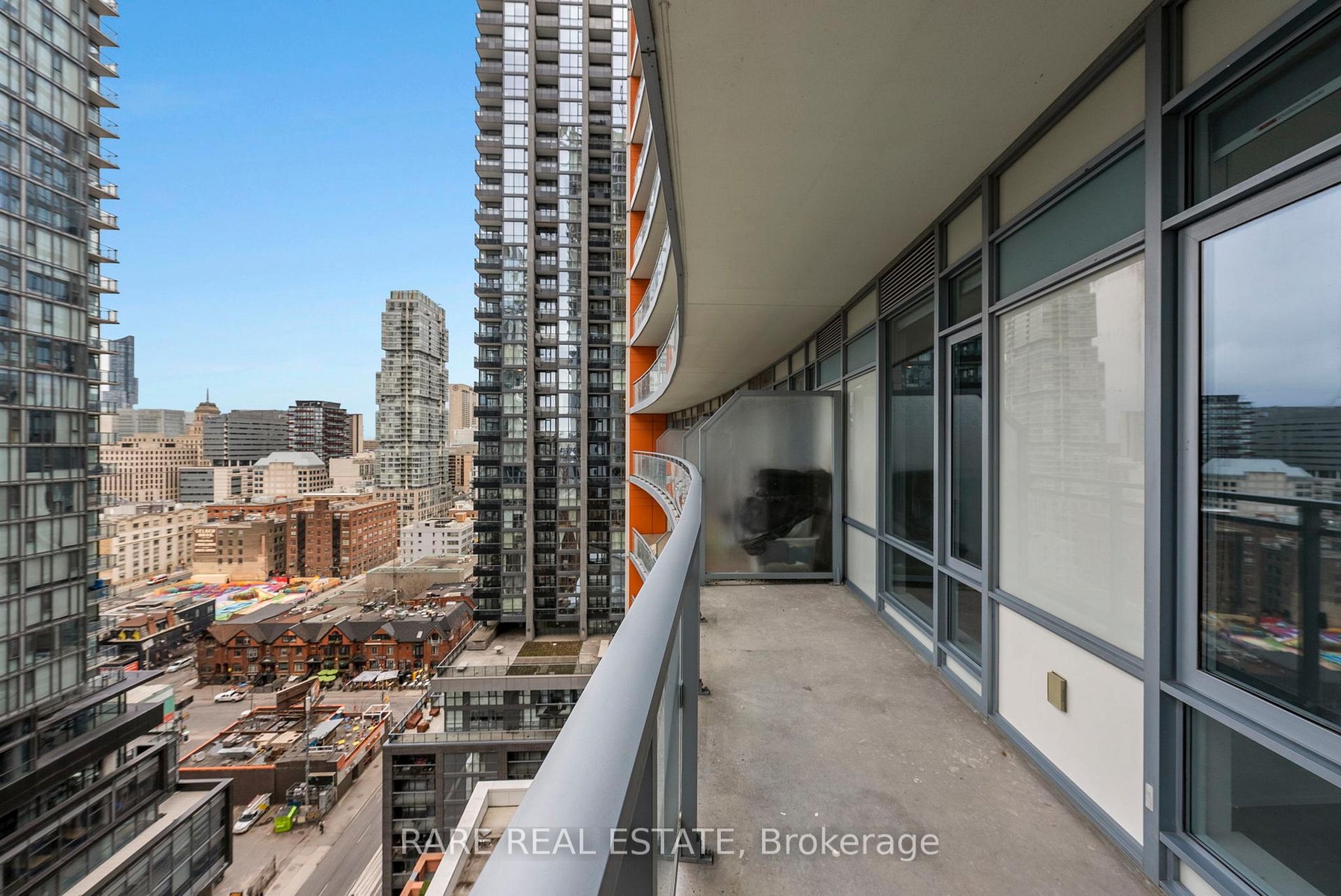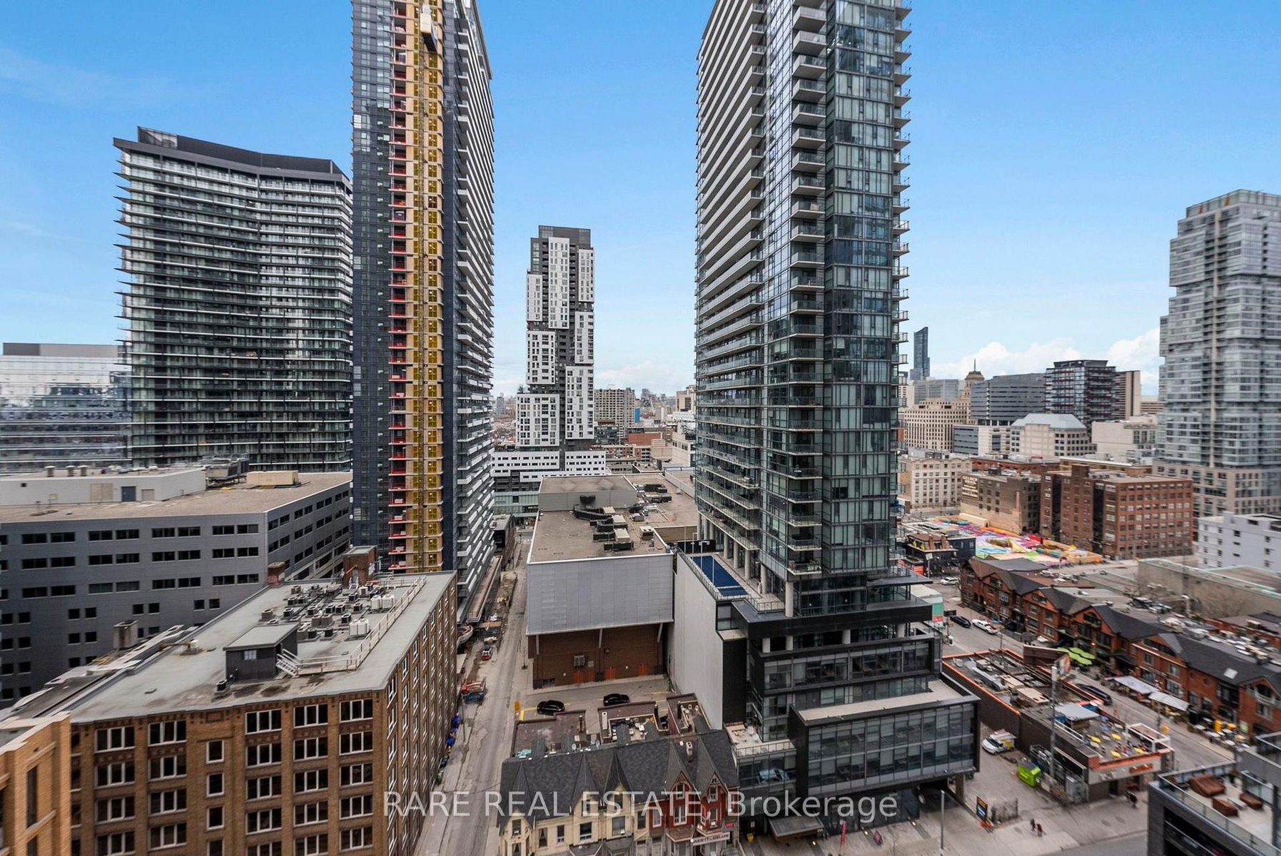Welcome Home To Your Stunning Corner Suite At Cinema Tower! This freshly painted and professionally cleaned split 2-bedroom, 2-bathroom layout offers 985 sq. ft. of living space (858 sq. ft. interior + 127 sq. ft. balconies) filled with natural light. Located in the heart of Torontos Entertainment and Financial District, this highly desirable building offers an unbeatable lifestyle.The spacious, open-concept living and dining area is perfect for entertaining, featuring floor-to-ceiling windows with spectacular north-west city views and direct access to one of two private balconies. The designer kitchen boasts quartz countertops, high-end integrated appliances, and an upgraded island that is ideal for both cooking and gathering.The primary bedroom offers a large closet, a private balcony, and a spa-like 4-piece ensuite bathroom. The second bedroom is generously sized with floor-to-ceiling windows and ample closet space, with a second full bathroom conveniently located nearby making this suite perfect for families, professionals, or anyone who values comfort and privacy.Additional highlights include upgraded vinyl flooring throughout, an abundance of natural light, and a layout that provides excellent flow and functionality. Both bedrooms are private and well-proportioned, and the unit feels bright, spacious, and inviting.Residents of Cinema Tower enjoy access to incredible amenities including a state-of-the-art fitness centre, 24-hour concierge, rooftop terrace, media room, party room, and more. With the TTC right at your doorstep and some of Torontos best dining, shopping, and entertainment all around you, this location is second to none.