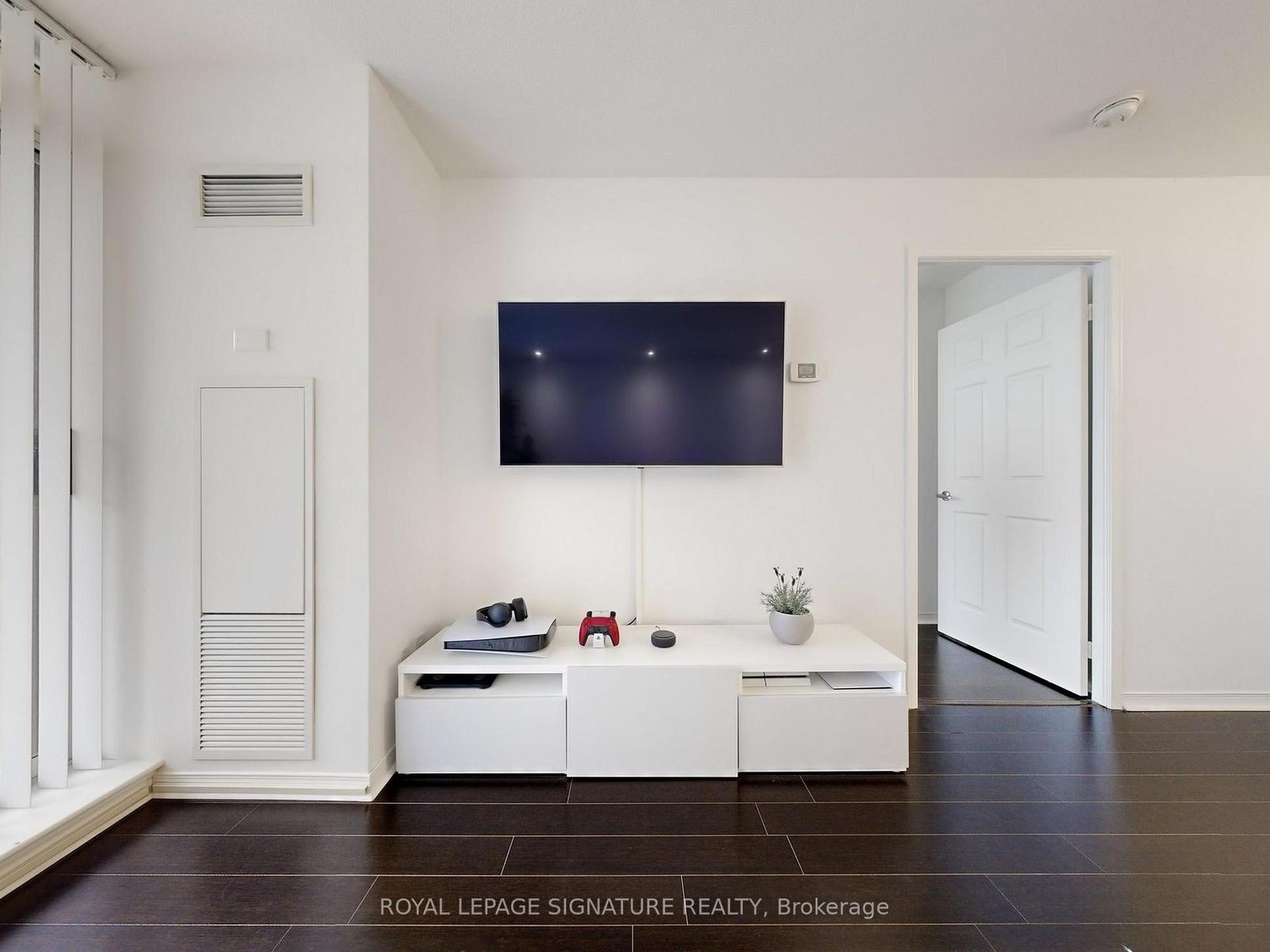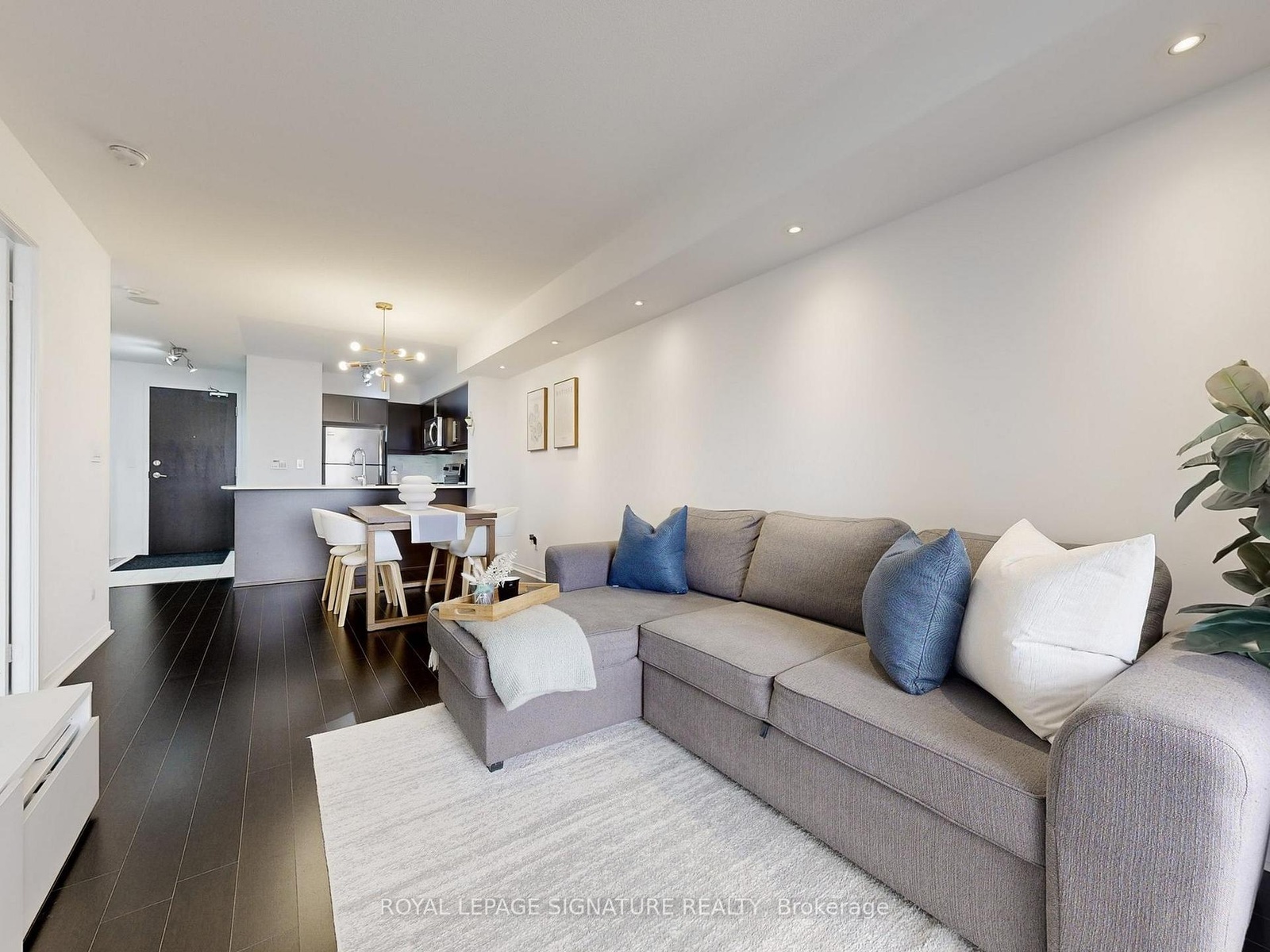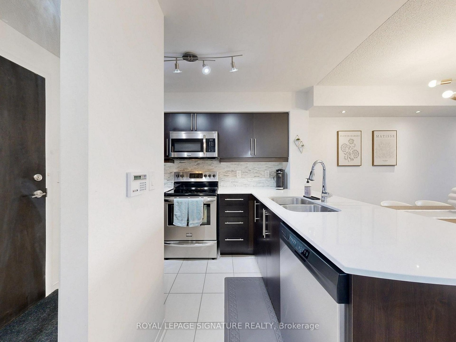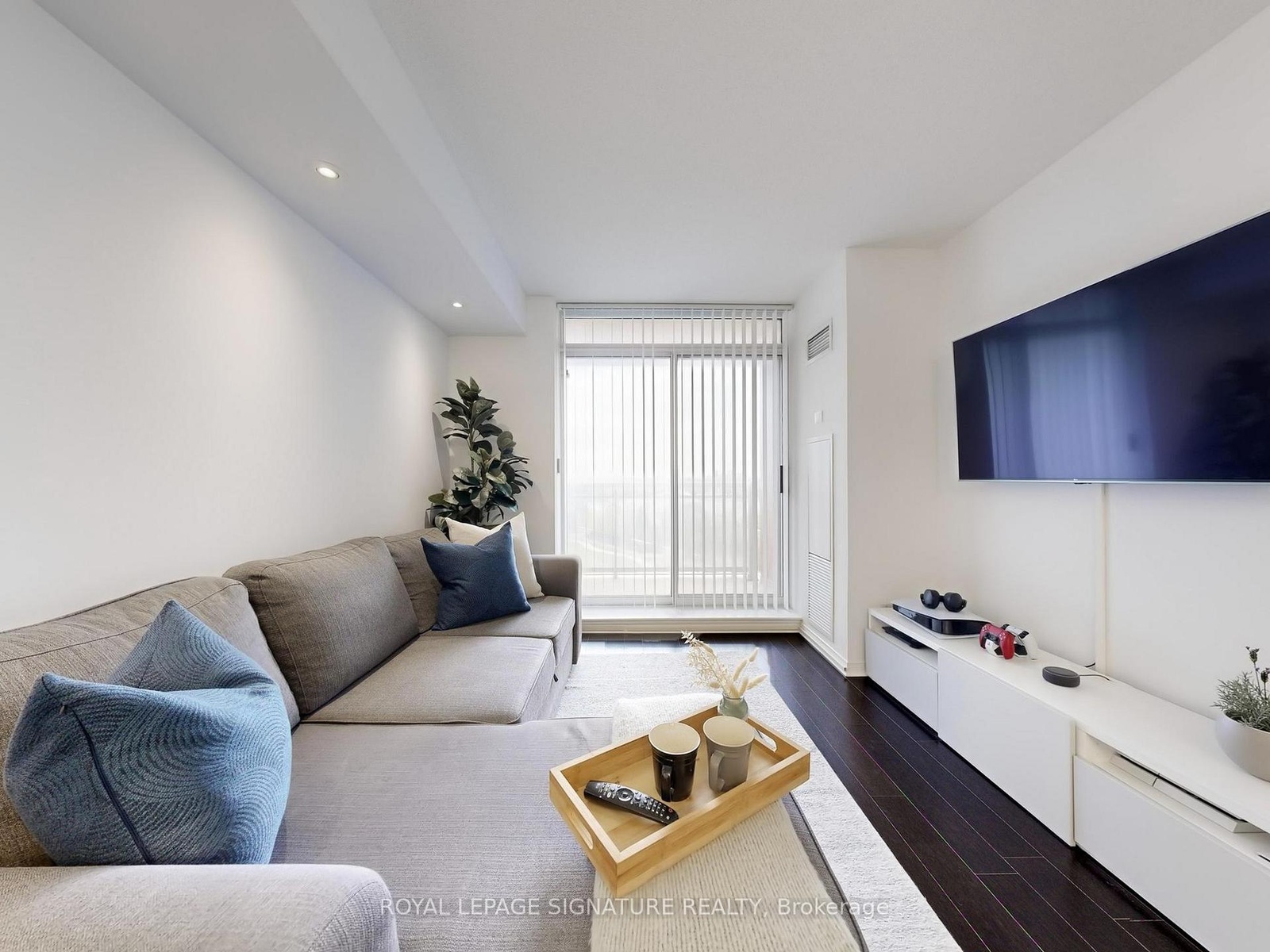 Stunning 1+Den with Unobstructed South-Facing View The Gates of Bayview Glen III - Prestigious High-Rise Condominium Developed By The Pemberton Group :Tastefully decorated and meticulously maintained, this 1-bedroom plus den unit offers a modern and luxurious living experience. Open Concept Suite featuring soaring 9' ceilings and a versatile layout designed to suit your lifestyle. Perfect for First- Time buyers, Professionals, Investors or Down sizers seeking luxury. Premium Upgrades & Features Designer Kitchen: The kitchen has been fully upgraded with sleek cabinetry, a stylish glass backsplash, and a Quartz countertop with an undermount sink. It also features a new touchless faucet, providing the ultimate in convenience and a modern aesthetic.Luxury Flooring: Enjoy the elegance of upgraded hardwood floors throughout the unit.Potlights: The living room and master bedroom are enhanced with potlights on dimmer switches, allowing you to set the perfect ambiance.