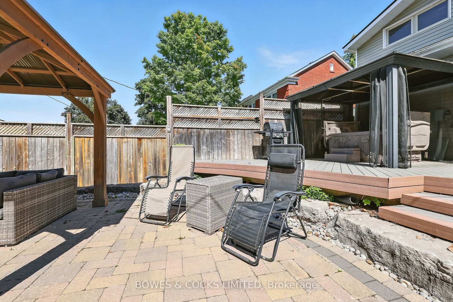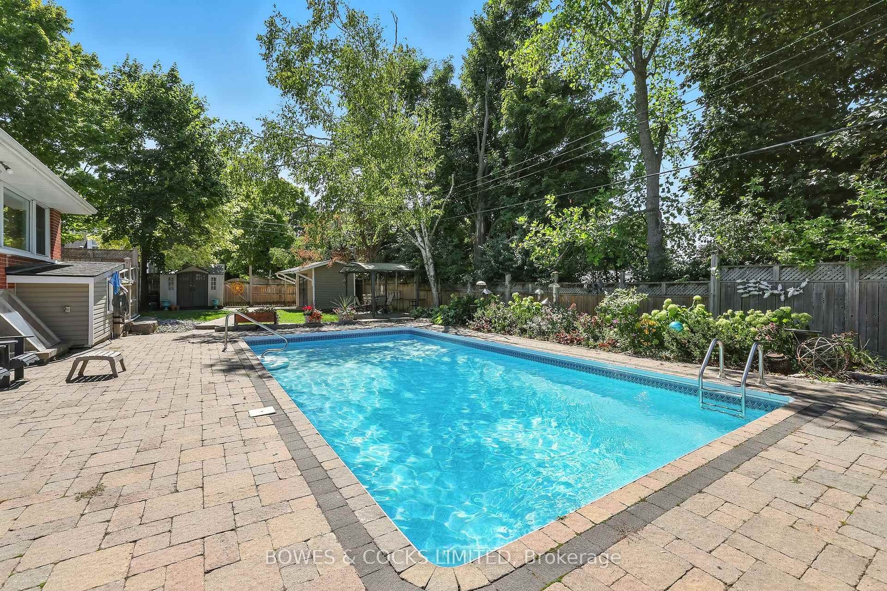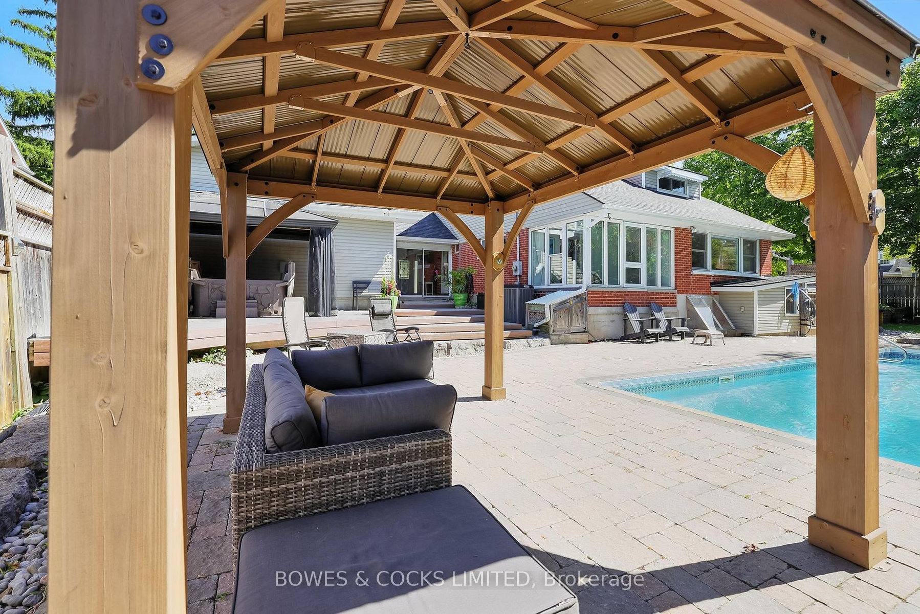 Welcome to 433 Manorhill Avenue. This expansive, solid-brick home is set on a double-wide corner lot with mature trees, offering a serene, country-like feel in Peterborough's highly desirable Old West End. The main floor welcomes you with comfort and elegance, featuring two bedrooms, a full bathroom, a formal living and dining room, an updated kitchen and a lovely sunroom. With engineered hardwood floors throughout, a cozy brick fireplace, and large windows overlooking the pool and gardens, creating a perfect space to relax. Upstairs, you'll find two additional spacious bedrooms and another full bathroom. The lower level offers excellent potential for multigenerational living or guest accommodations, complete with its own separate entrance, a bedroom, kitchenette, bathroom, and a cozy living room with a welcoming brick fireplace. The fully fenced backyard is a private retreat, professionally landscaped with raised garden beds, perennial flower beds, and interlocking stone surrounding the large inground pool. Multiple gazebos, a hot tub, and generous patio space provide the perfect setting for entertaining or unwinding. The oversized attached two-car garage includes a workshop and a loft designed as a mancave-complete with a pool table and lounge space. Ideally located within walking distance to Peterborough Regional Health Centre, shopping, schools, and amenities, this home truly offers it all: space, character, privacy and a lifestyle you'll love.
