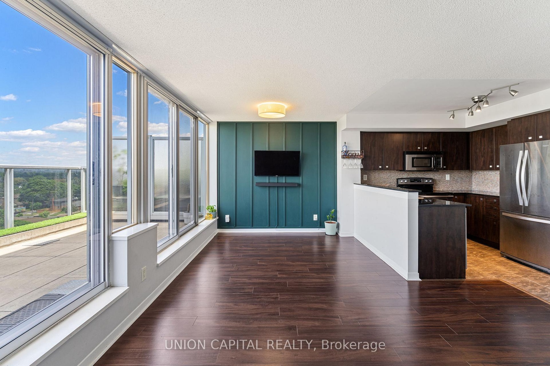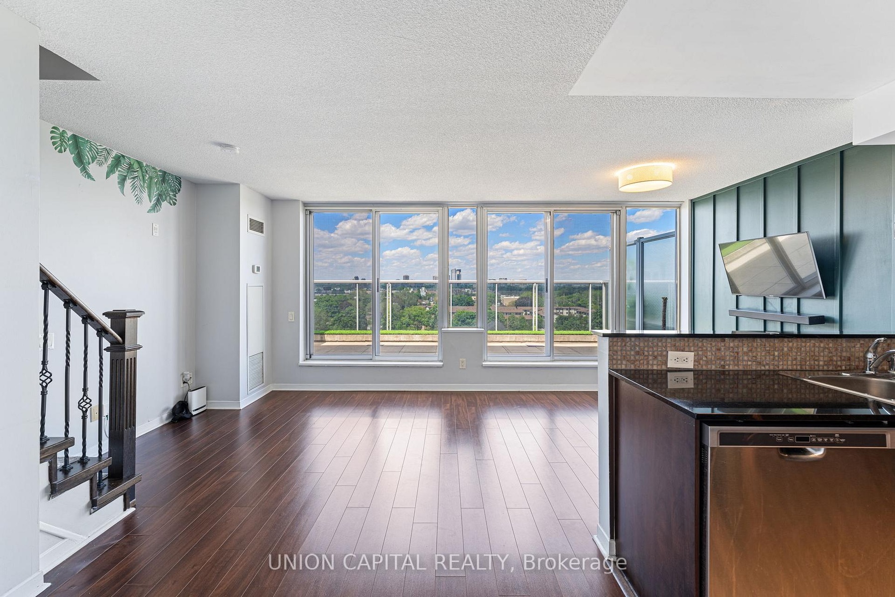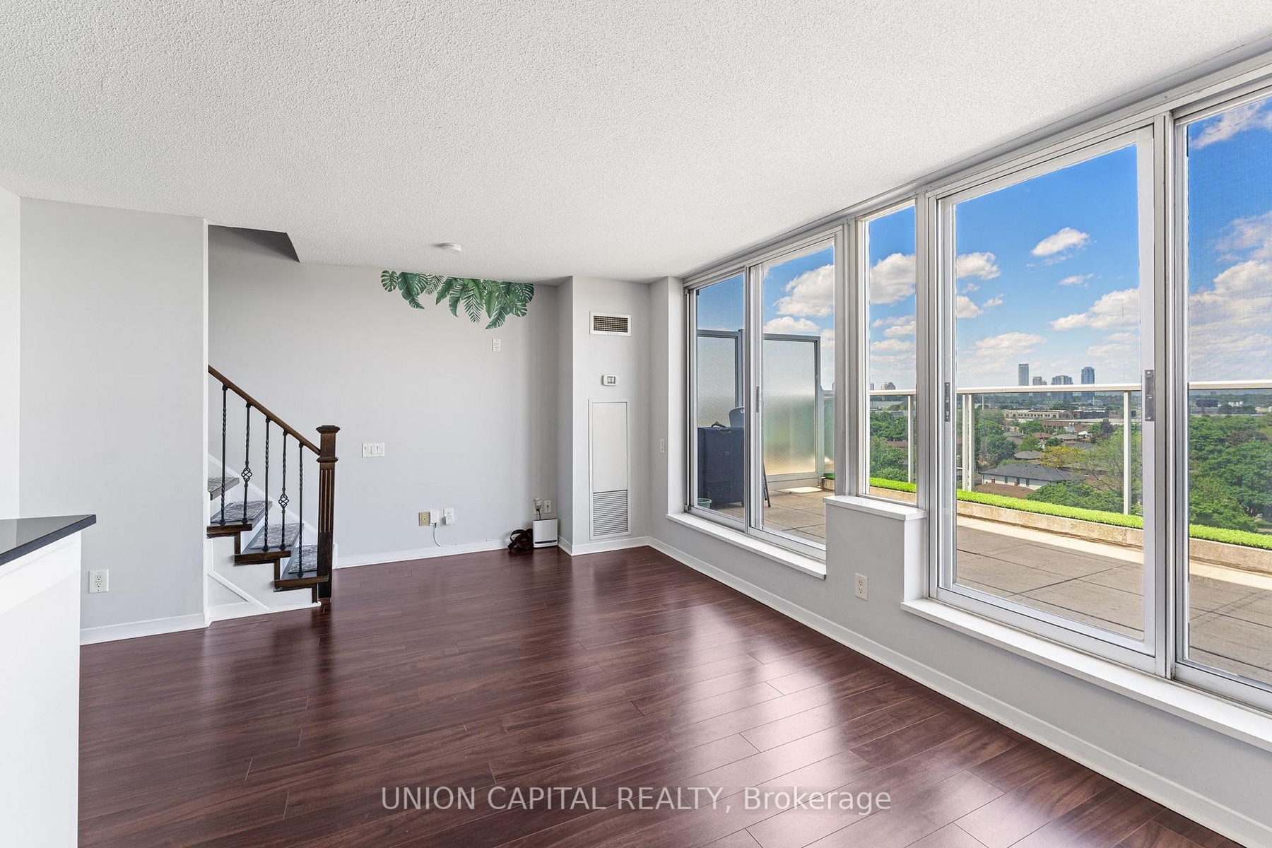 Welcome to this stunning 2-storey penthouse suite, offering 862 sq ft of stylish urban living. The upper level features two spacious bedrooms, each with its own Juliette balcony, and two bathrooms, including a private 4-piece ensuite in the primary bedroom. Take in the beautiful city views on the walk out terrace from the living area! There is 1 parking spot included. The building offering a concierge, indoor lap pool, sauna, gym and party room. Located In A High Demand And TTC Accessible Neighbourhood. Minutes To Hwy 427/401/QEW. Steps From Cineplex, Restaurants, Ikea, Costco, Banks, Sherway Gardens, Walmart & Much More. 5Minute Drive To Kipling TTC And Mimico Go Station. Islington And Queensway Bus Stop A Short Walk Away. 7 Minute Walk To Sobeys. 15 Minutes To Downtown. Tenant pays hydro. Pictures taken before current tenant moved in.