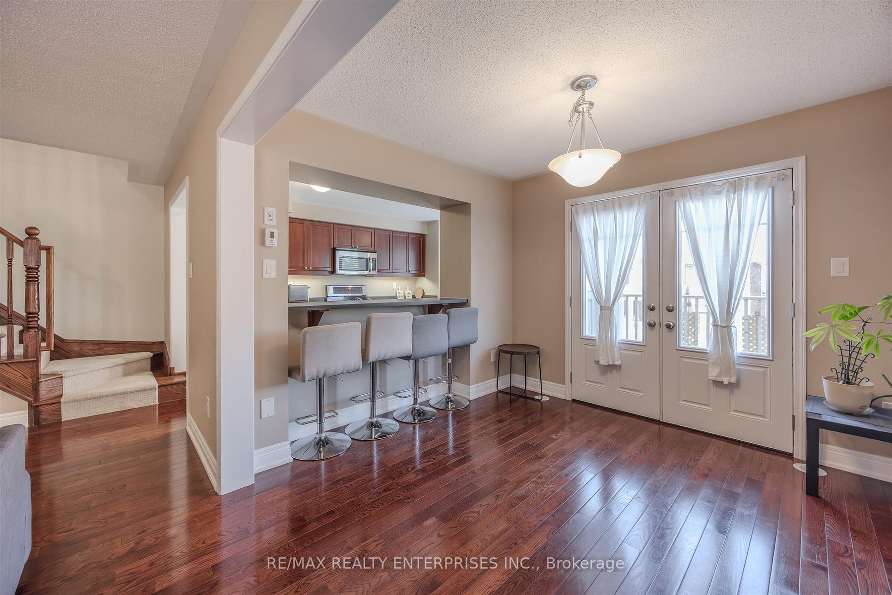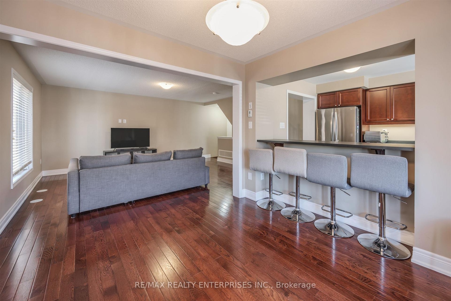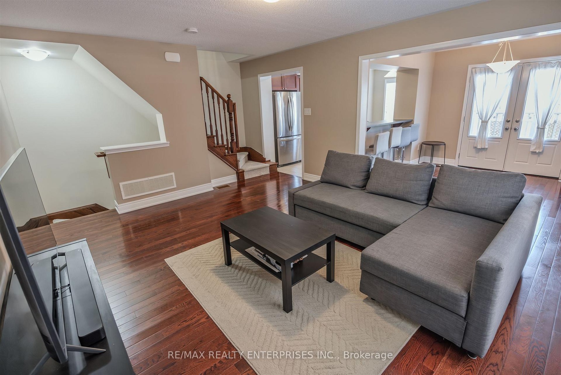 Welcome to this beautiful Mattamy-built, Energy Star-rated end unit townhouse offering nearly 1,300 sqft of stylish, low-maintenance living. Designed with comfort and functionality in mind, this bright home features oak staircases, hardwood flooring on the middle level, and a spacious open-concept layout perfect for both daily living and entertaining. The entry level includes a convenient covered front porch, a large foyer with a powder room, and a finished laundry room with a full-size washer and dryer. The middle level offers a bright and airy open-concept space with plenty of windows. The kitchen boasts stainless steel appliances, generous counter space, and a large window that fills the room with natural light, while the dining area opens to a walkout balcony ideal for morning coffee, evening relaxation, or barbecuing with friends and family. Upstairs, youll find three well-sized bedrooms, ample closet space, and a 4-piece bathroom. With no sidewalk, parking for three vehicles, and direct garage access, this move-in ready home is as practical as it is beautiful. Located directly across from a large park, the Milton Sports Centre, and Sports Complex, and just steps from grocery stores, schools, medical offices, banks, and the hospital everything you need is right at your doorstep well, almost at your doorstep!