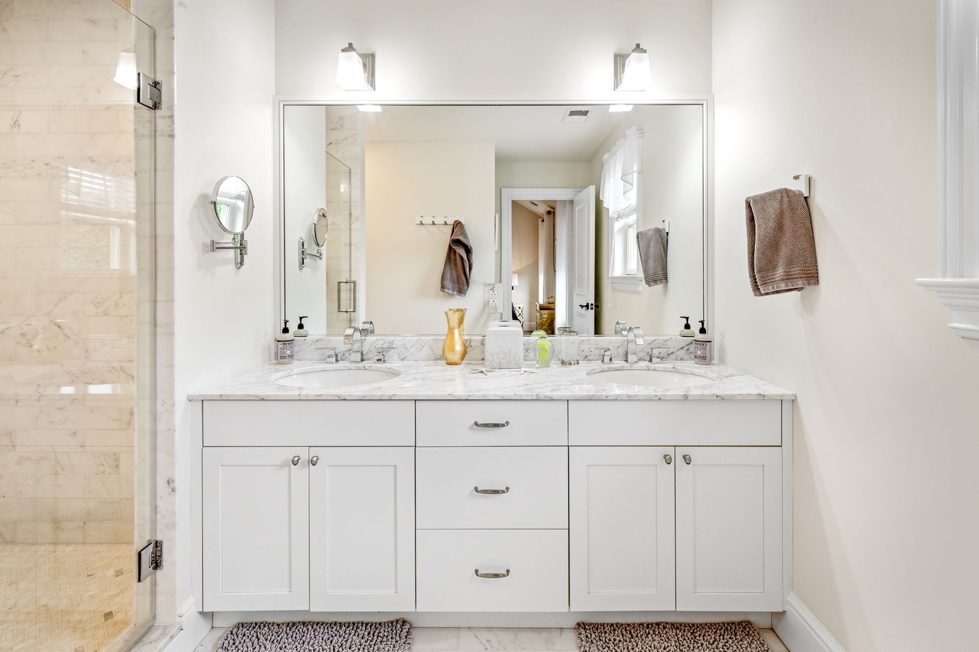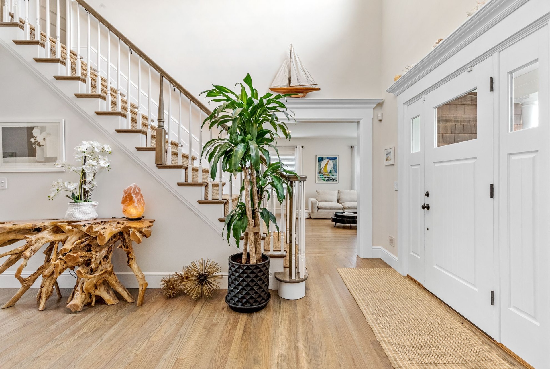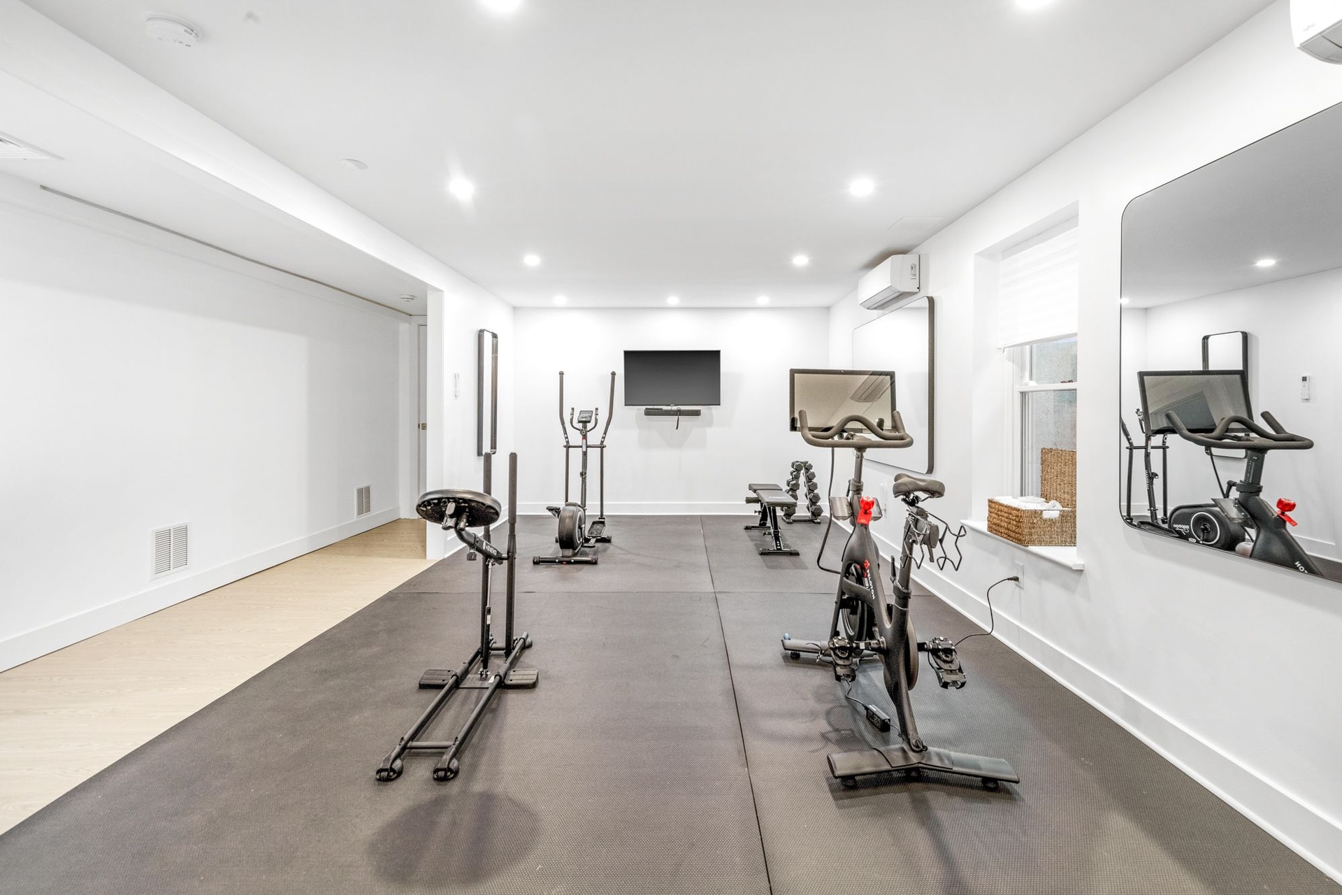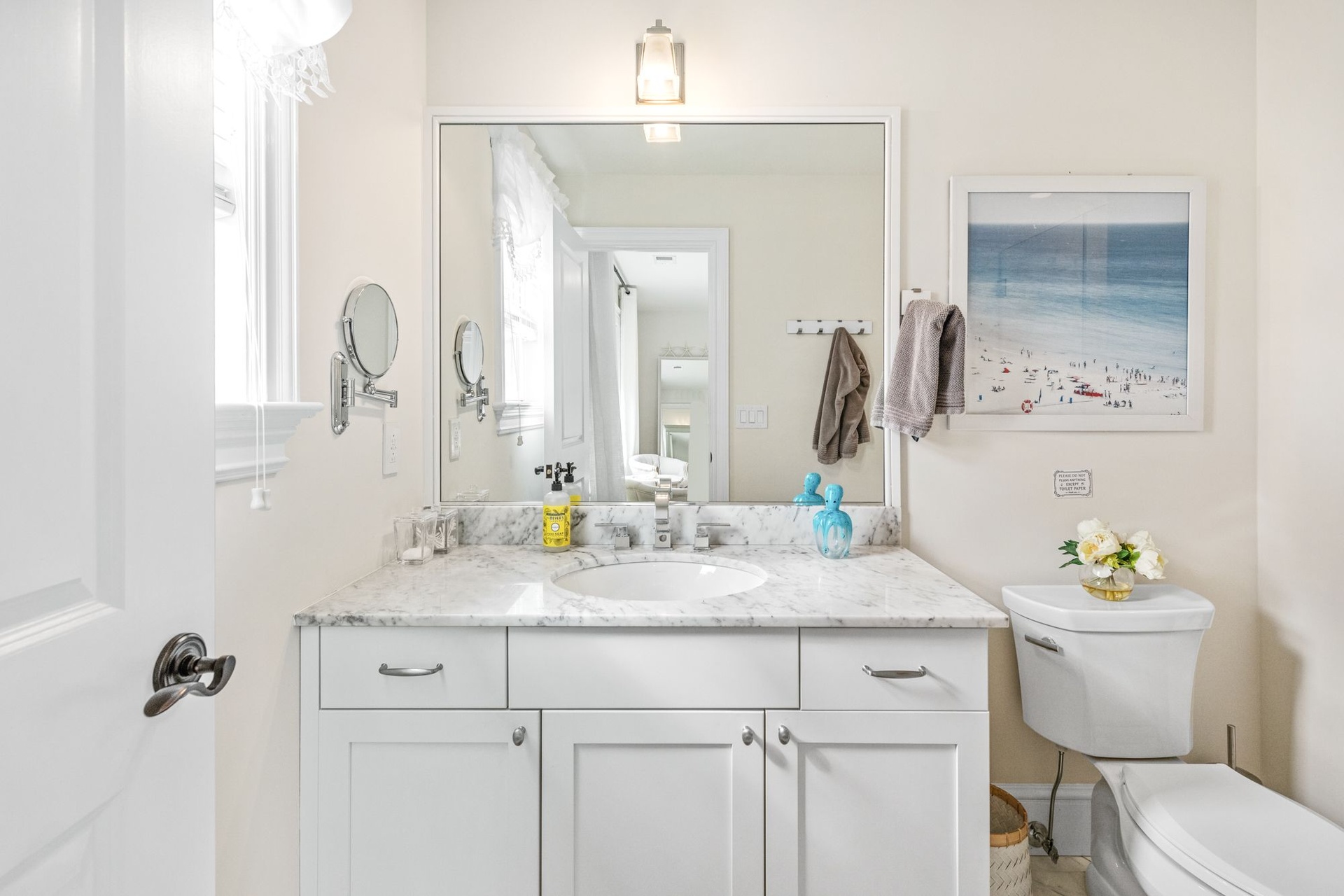 Enjoy cozy evenings in the spacious living room with a fireplace and flat-screen TV, or relax in the sun-filled great room, also featuring a large TV and elegant decor. The first-floor primary suite offers a spa-like retreat with an en-suite bath, while a second primary bedroom upstairs provides additional flexibility and privacy.