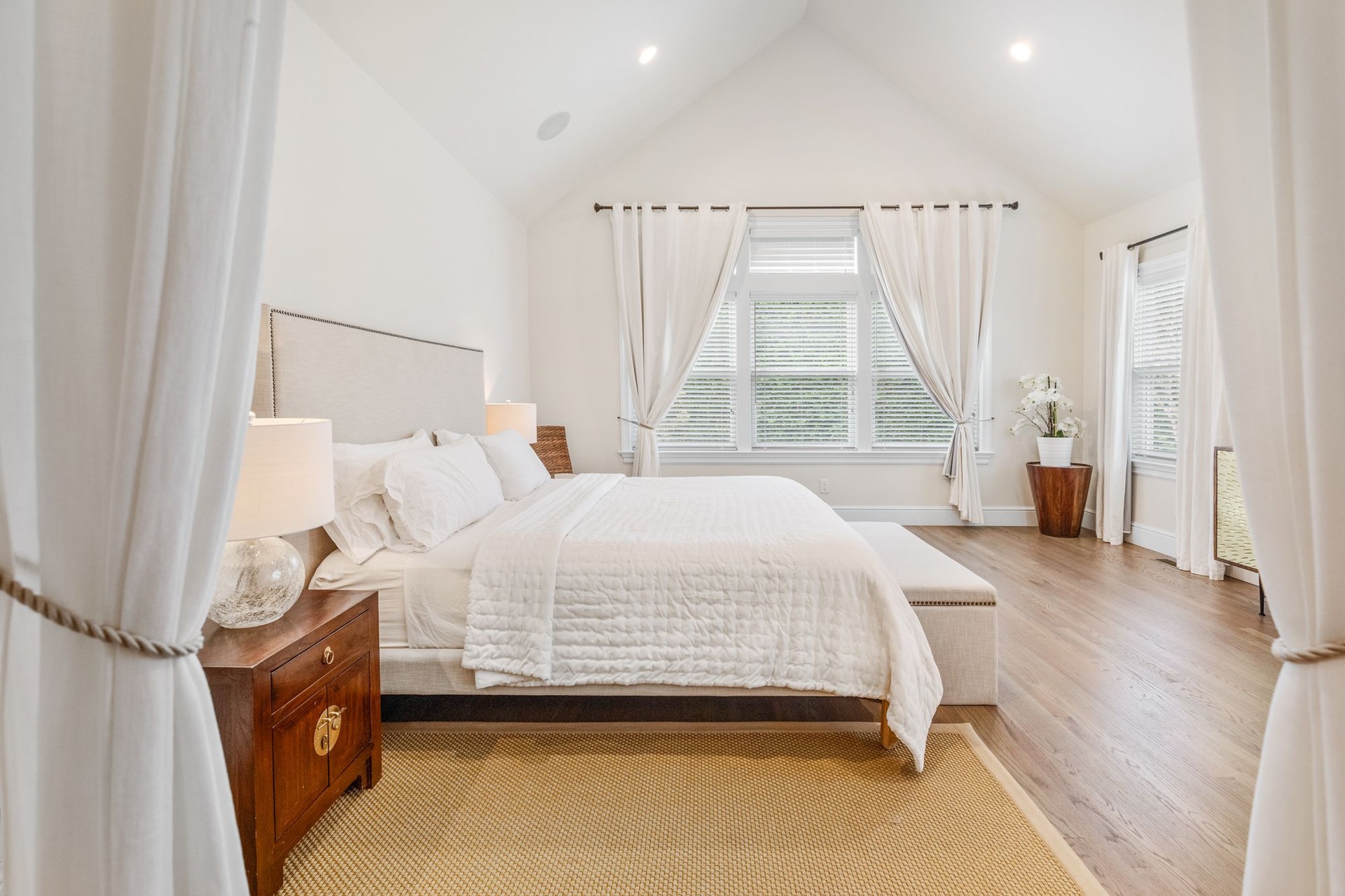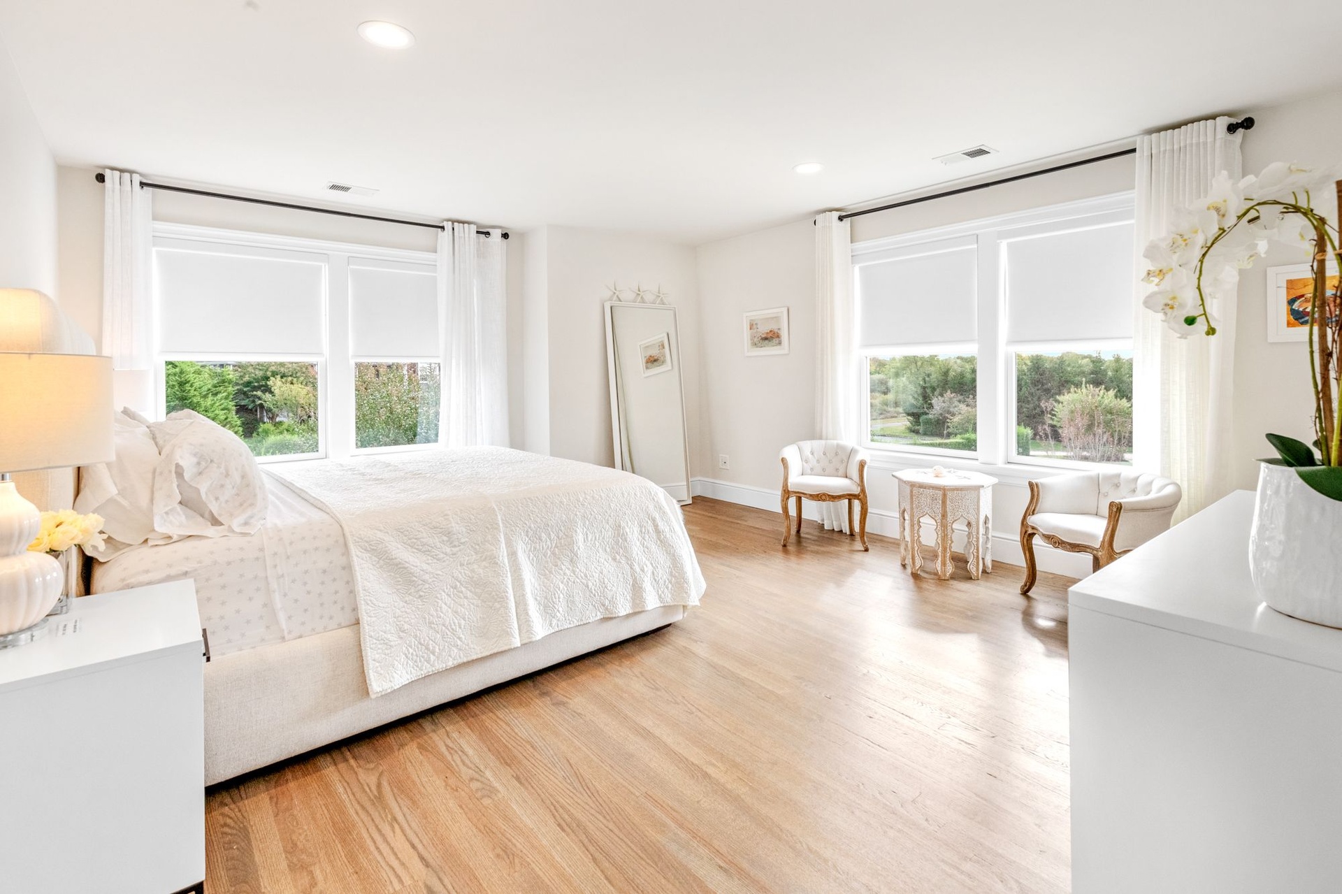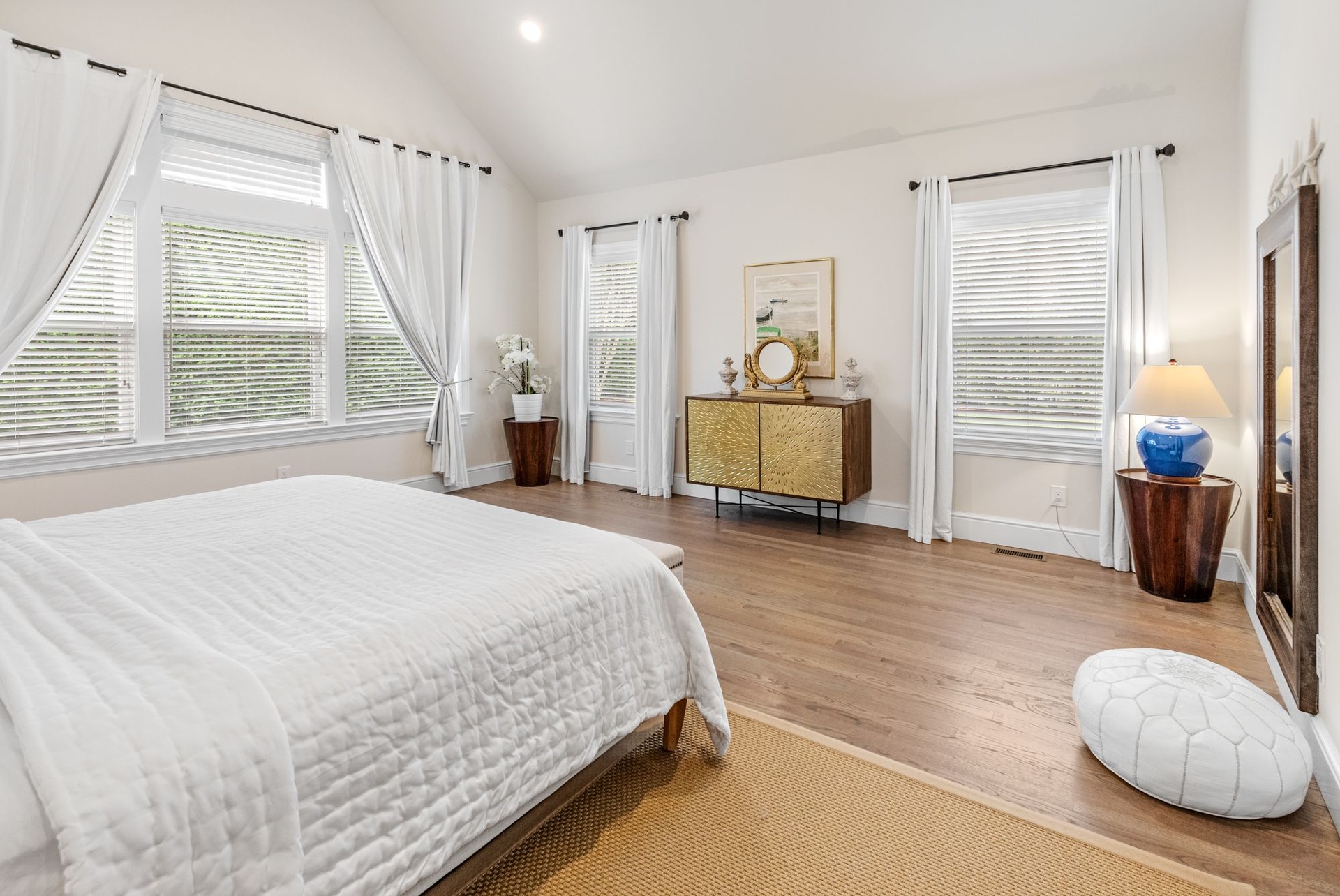 Three more grandly scaled guest bedrooms, all with luxurious furnishings and high-end bedding, include dedicated workspaces—perfect for remote working. This home includes Sono surround sound throughout and interior and exterior WI-FI.