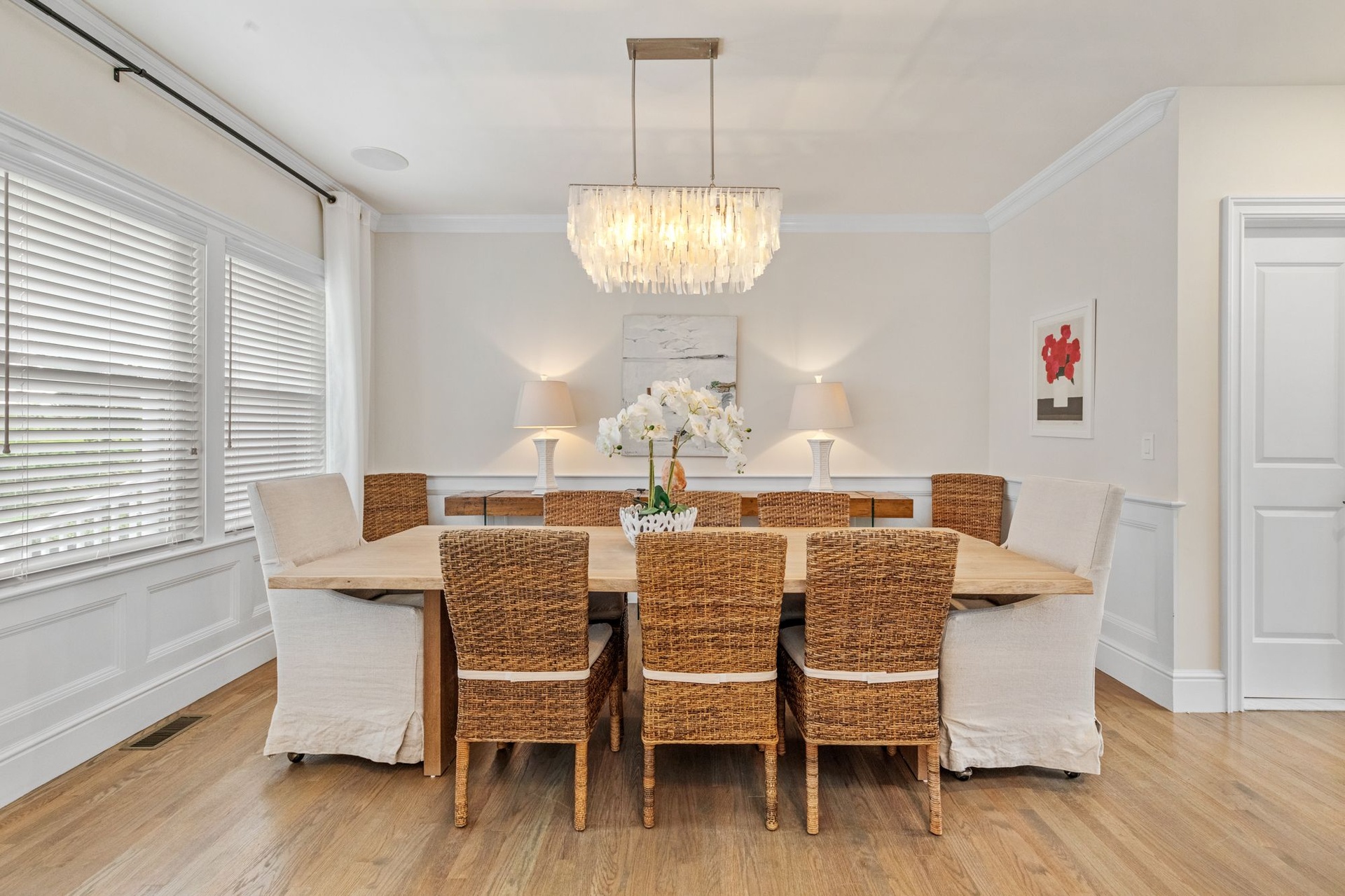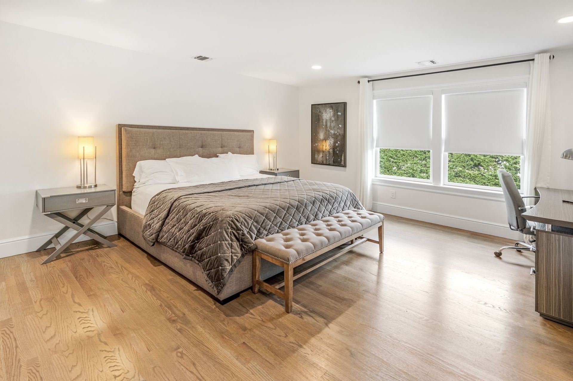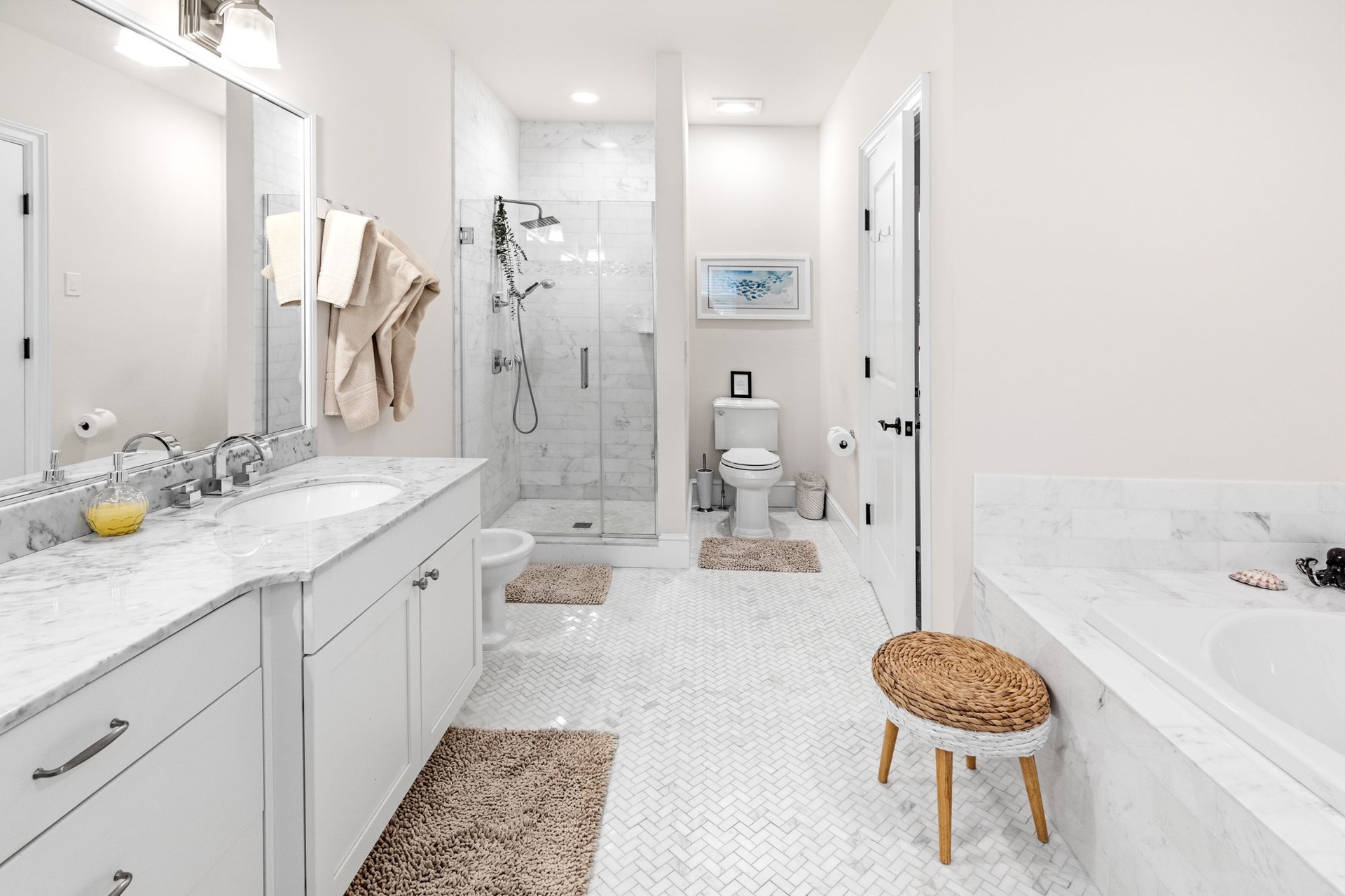 Three more grandly scaled guest bedrooms, all with luxurious furnishings and high-end bedding, include dedicated workspaces—perfect for remote working. This home includes Sono surround sound throughout and interior and exterior WI-FI.
