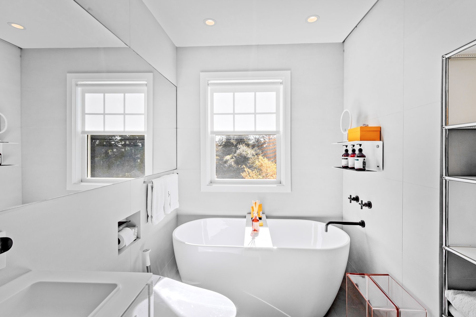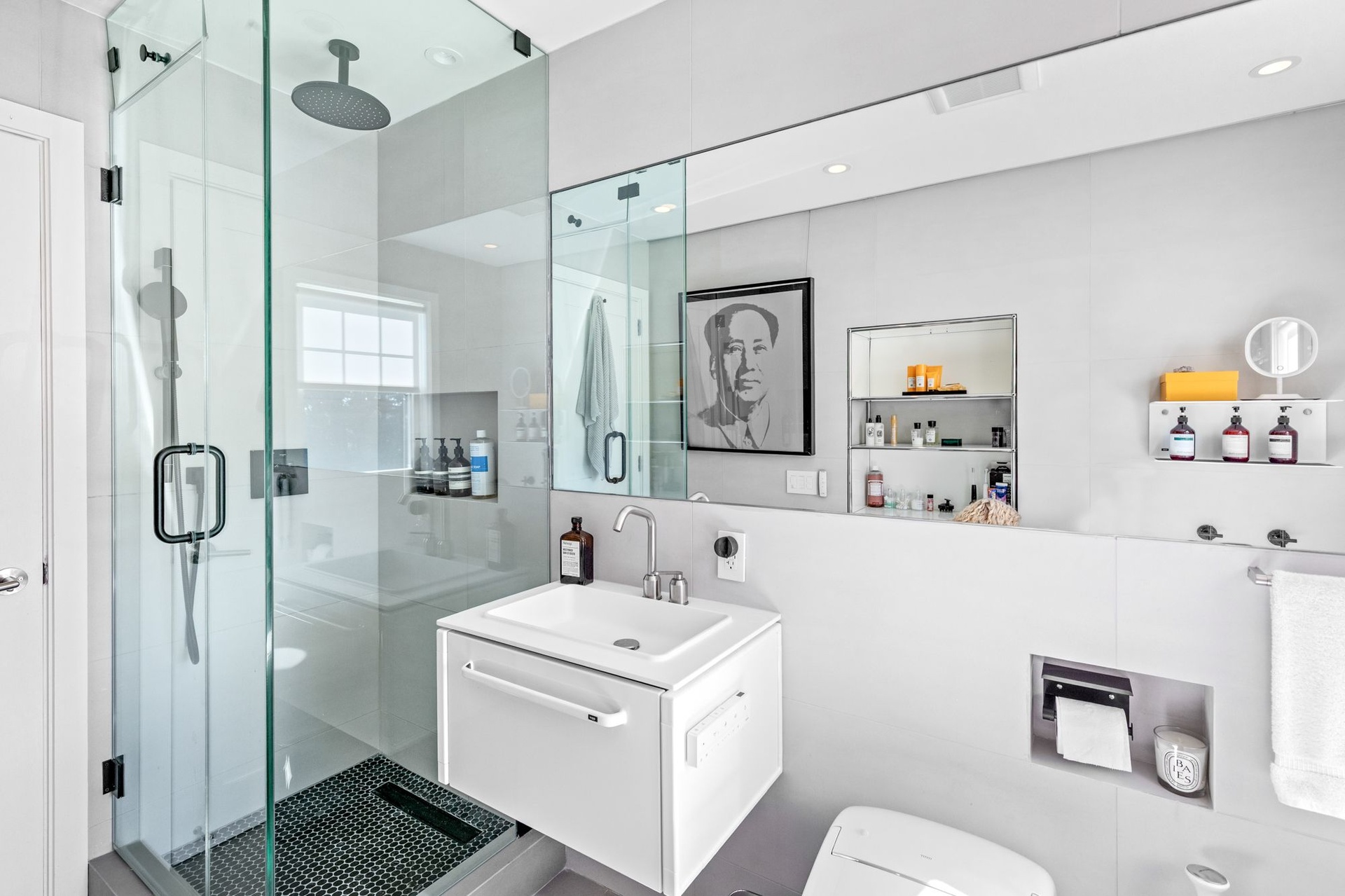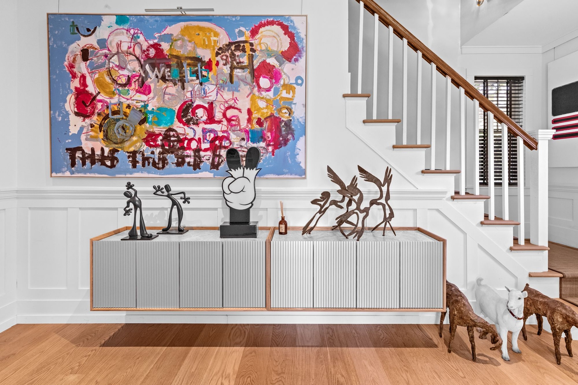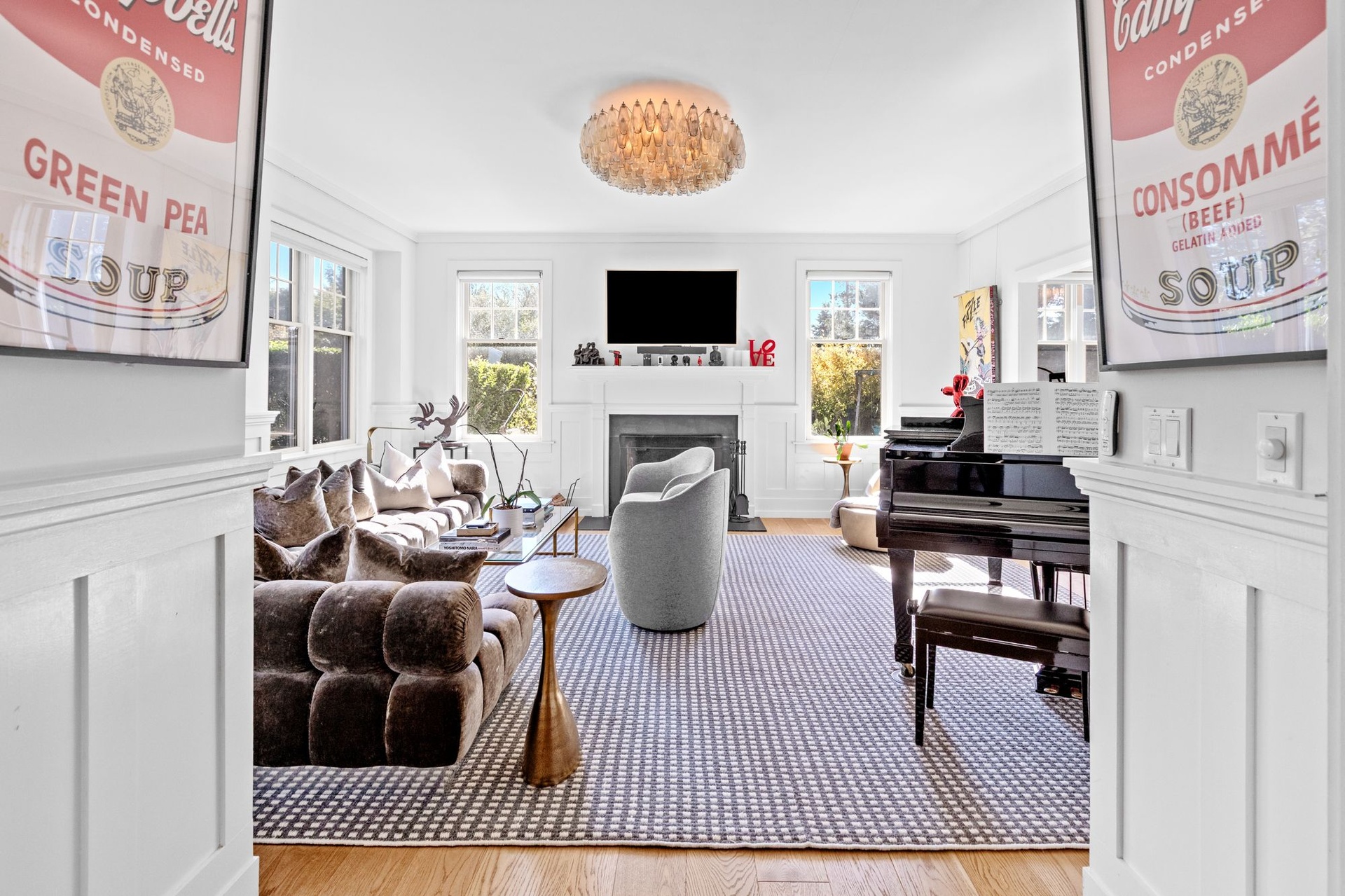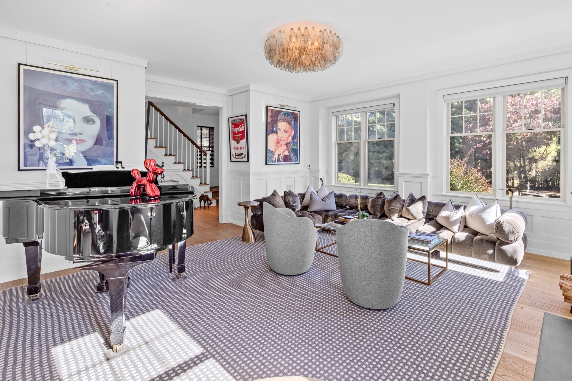 Just beyond the Southampton Village awaits the quintessential retreat for the ever-discerning connoisseur. Stylish 2-story traditional comprises nearly 4,000 square feet of living space with elegantly appointed rooms. Exquisitely detailed with unrivaled finishes, this stylish take on a Hamptons Classic feature a modern aesthetic with cool undertones. Polished wide plank floors reflect light in the living room with a fireplace and flow throughout the main level to a bright, spacious dining area with an extra-long table ideal for entertaining. A state-of-the-art Bulhaup eat-in kitchen has luxe cabinetry, marble accents, and Viking and Wolf appliances. A first-floor laundry room is conveniently attached. A full main floor bath with a shower is located off of the living room. All bedrooms and bathrooms are dressed in Frette linens. The finished lower level features a media room, attached study, guest bedroom, and full bath. B