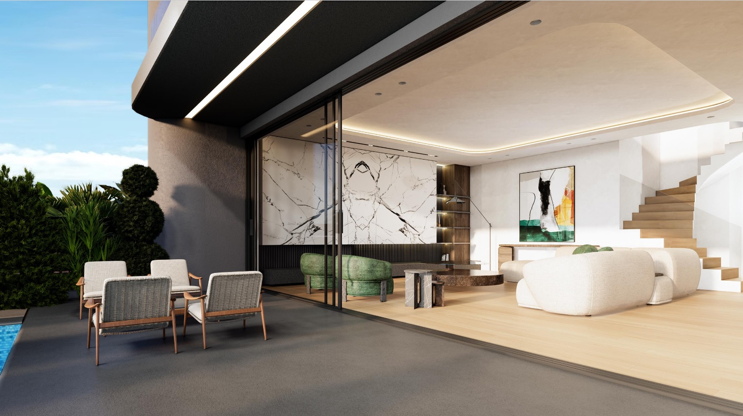 Every detail of the architecture has been conceived to reflect lightness and fluidity. Expansive glass surfaces invite natural light and frame serene sea views, while clean lines and subtle textures create timeless sophistication.