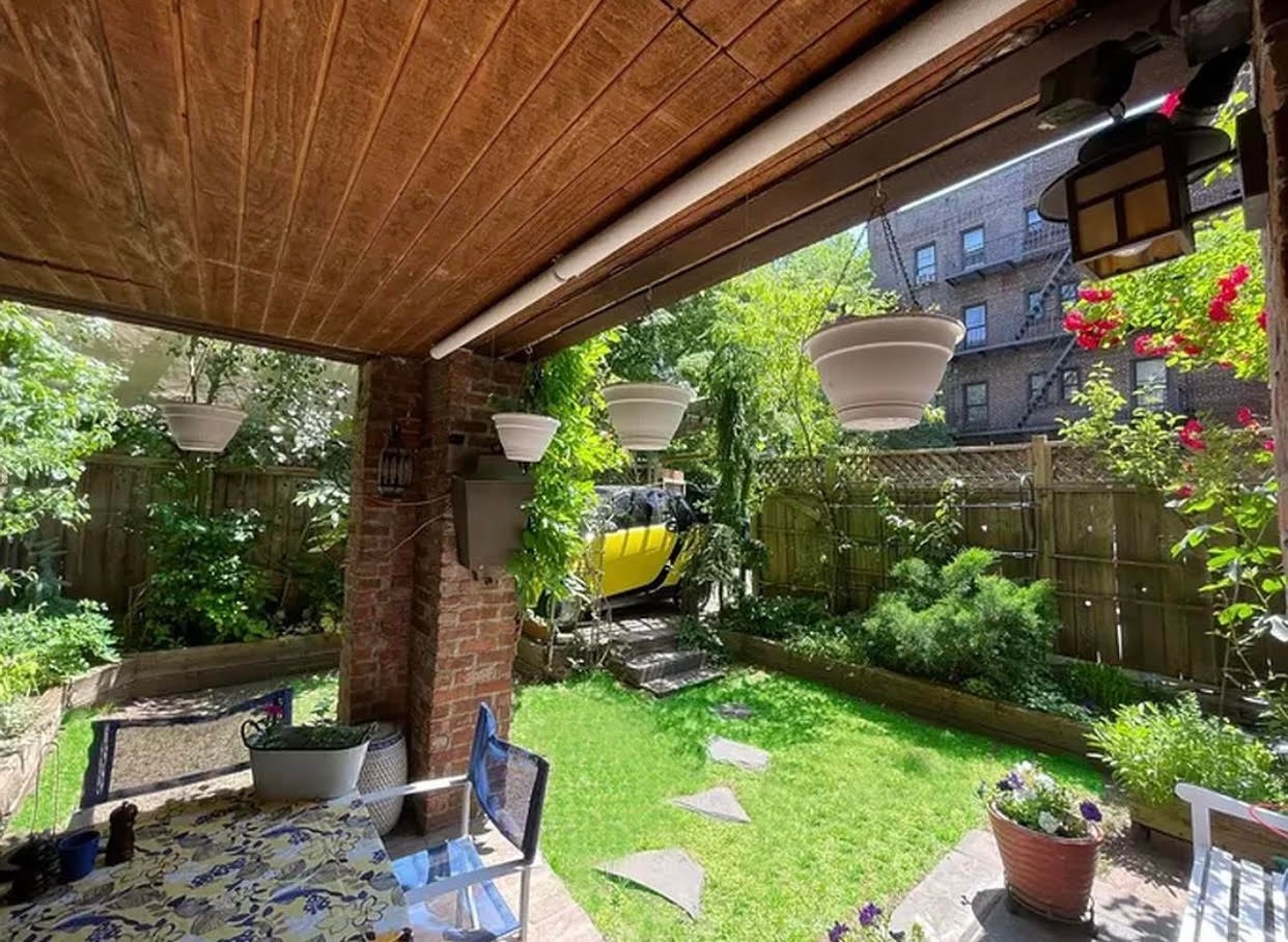 Step through French doors, and you are carried into a world apart — a European-style garden that feels at once cultivated and romantic. Stone pathways meander through lush plantings, creating spaces for intimate morning coffees, candlelit dinners, or quiet afternoons beneath the trees. Here, in the very heart of Harlem, a touch of Europe awaits.