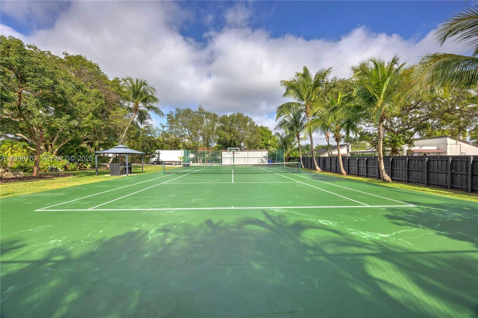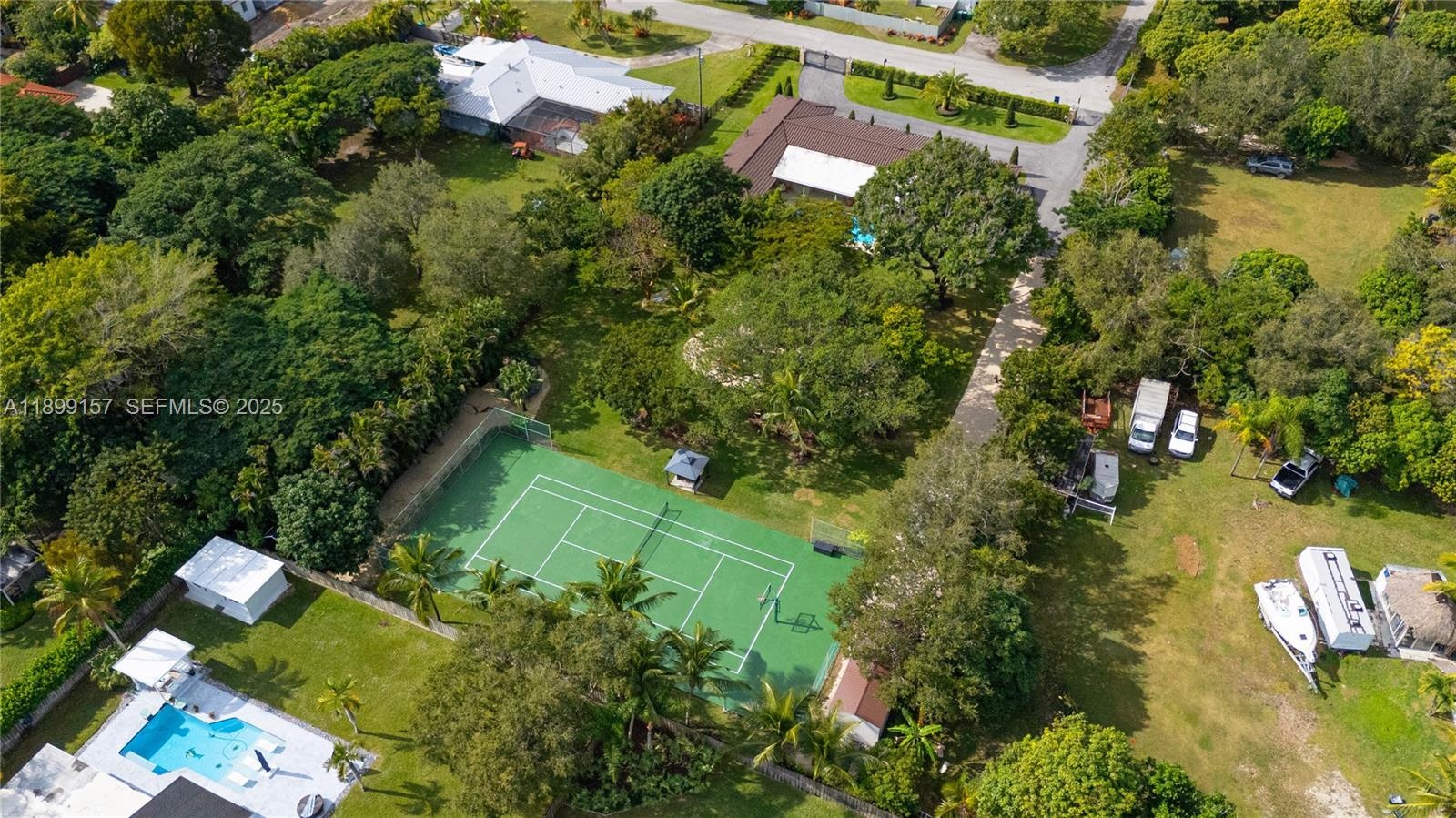 Nestled on over one acre of manicured grounds, this 5-bedroom, 4-bath home offers a rare blend of space, comfort, and resort-style amenities. Featuring a formal living, dining & family room w/ beautifully renovated kitchen and appliances. The primary suite features dual vanities & walk-in closets, while a private guest wing of living room, wet bar, and ensuite bedroom ensures ultimate privacy for visitors. Step outside to a large covered patio with bar overlooking the beautiful pool leading to the koi pond, fire-pit, tennis court, expansive lawn, and large storage shed. The home has an 8 yr roof and full impact rated doors & windows. Located in one of Miami’s most peaceful enclaves just moments from Palmer Trinity School, this estate offers the perfect balance of tranquility & elegance