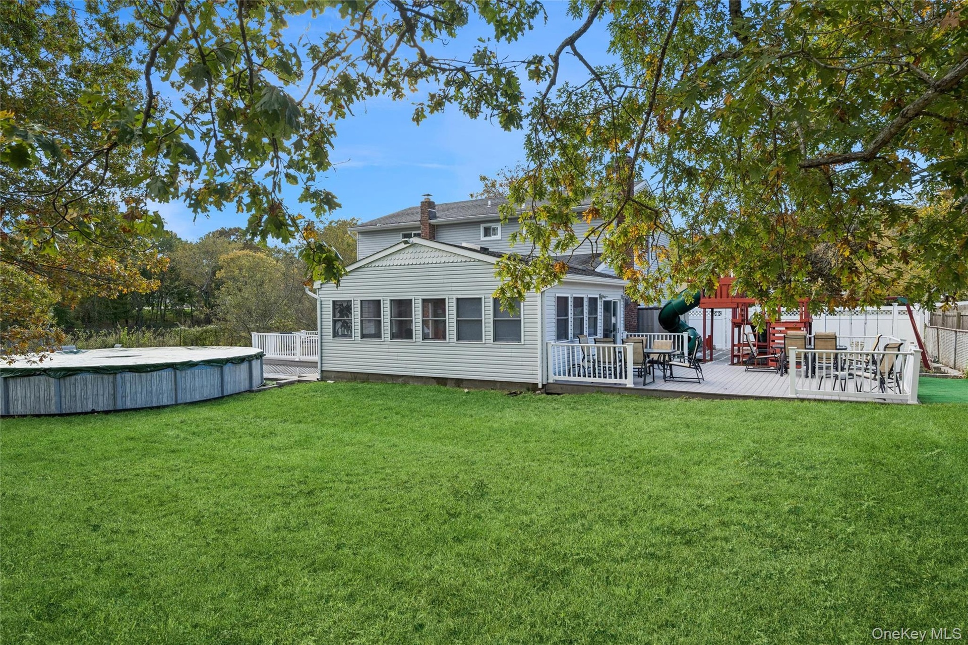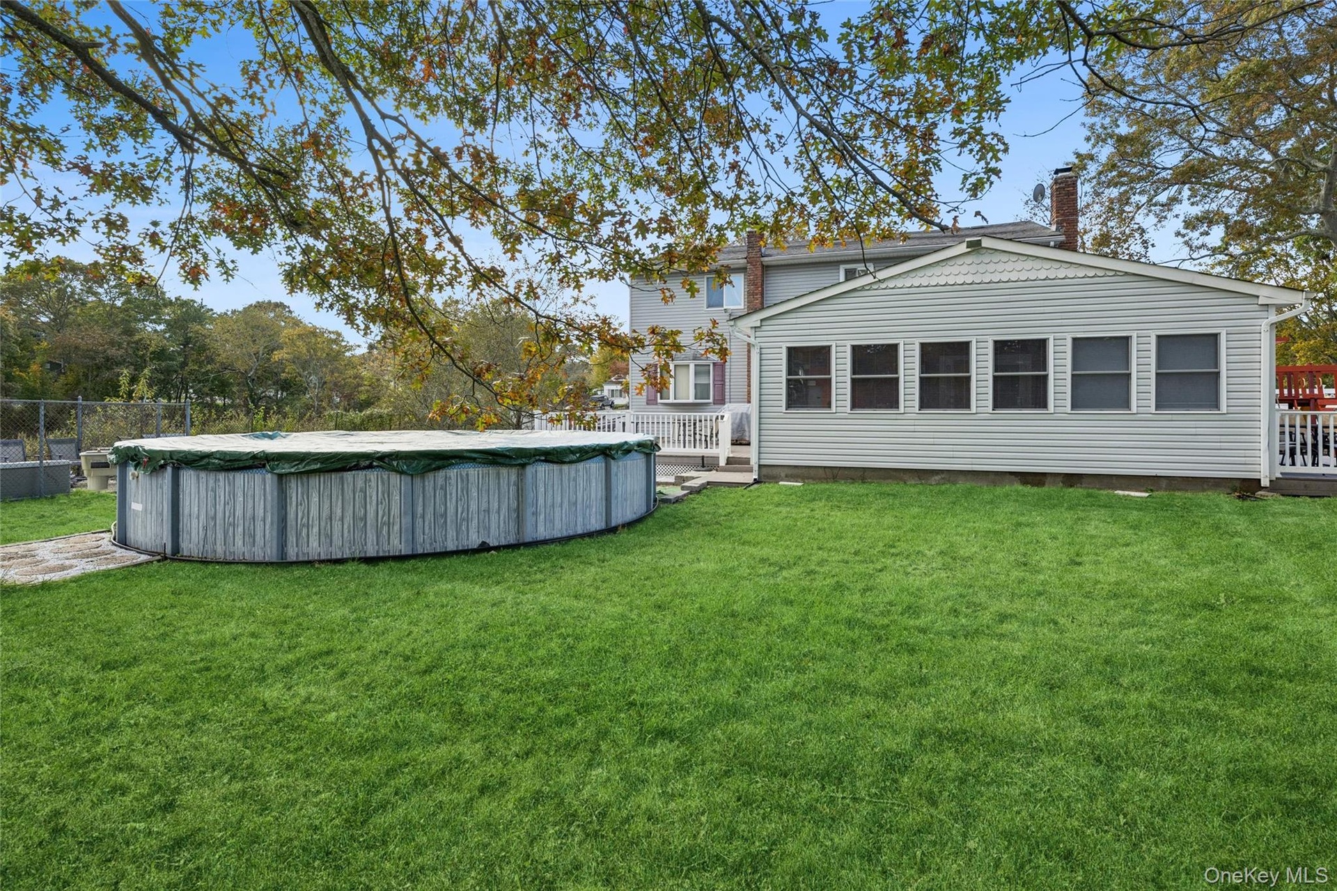 Welcome to this quiet residential spot in Holtsville (Sachem Schools) clean, well kept homes with in-ground utilities. This 4 bedroom 2.5 bath Colonial boasts large bedrooms on the second floor and 2 Full baths. Also an attic for storage.. The main level has a spacious living room with a wood-burning Fireplace. Also a formal Dining room for entertaining. The dining room flows in to the eat in kitchen. The refrigerator, microwave, dishwasher and stove are less than 1 year old. Off the kitchen is a den for relaxing with a half bath. The washer and dryer are in the bathroom, no need to go to the basement to do laundry. There is a spacious finished basement with a professional foosball table that will stay. The "crown jewel" of this home is the tremendous add on Hot tub room. This room is surrounded by windows and has many skylights and cathedral ceilings. Hot tub can accommodate 8-10 average size humans watching Sunday Football! There is central air with an apx. 3 year old unit outside. All windows, boiler and roof have been replaced at some point. IG sprinklers cover the whole property. There is a small putting green to practice your "short game" Also a small basketball court area, and a wood jungle gym that will all remain. Much decking for summer barbecues. As well as a garage for either storage or park your vehicle. Also an above ground pool for summer enjoyment (just needs a pump) This home is waiting for the next Sachem Schools family to move in and call it home!
