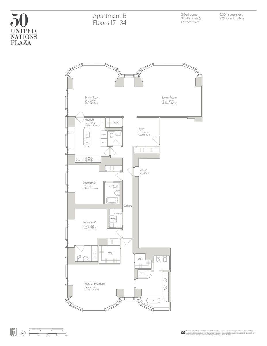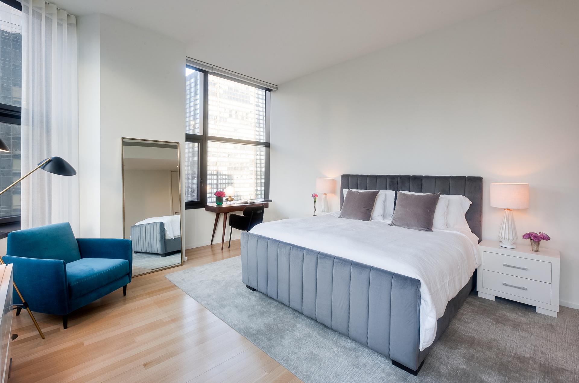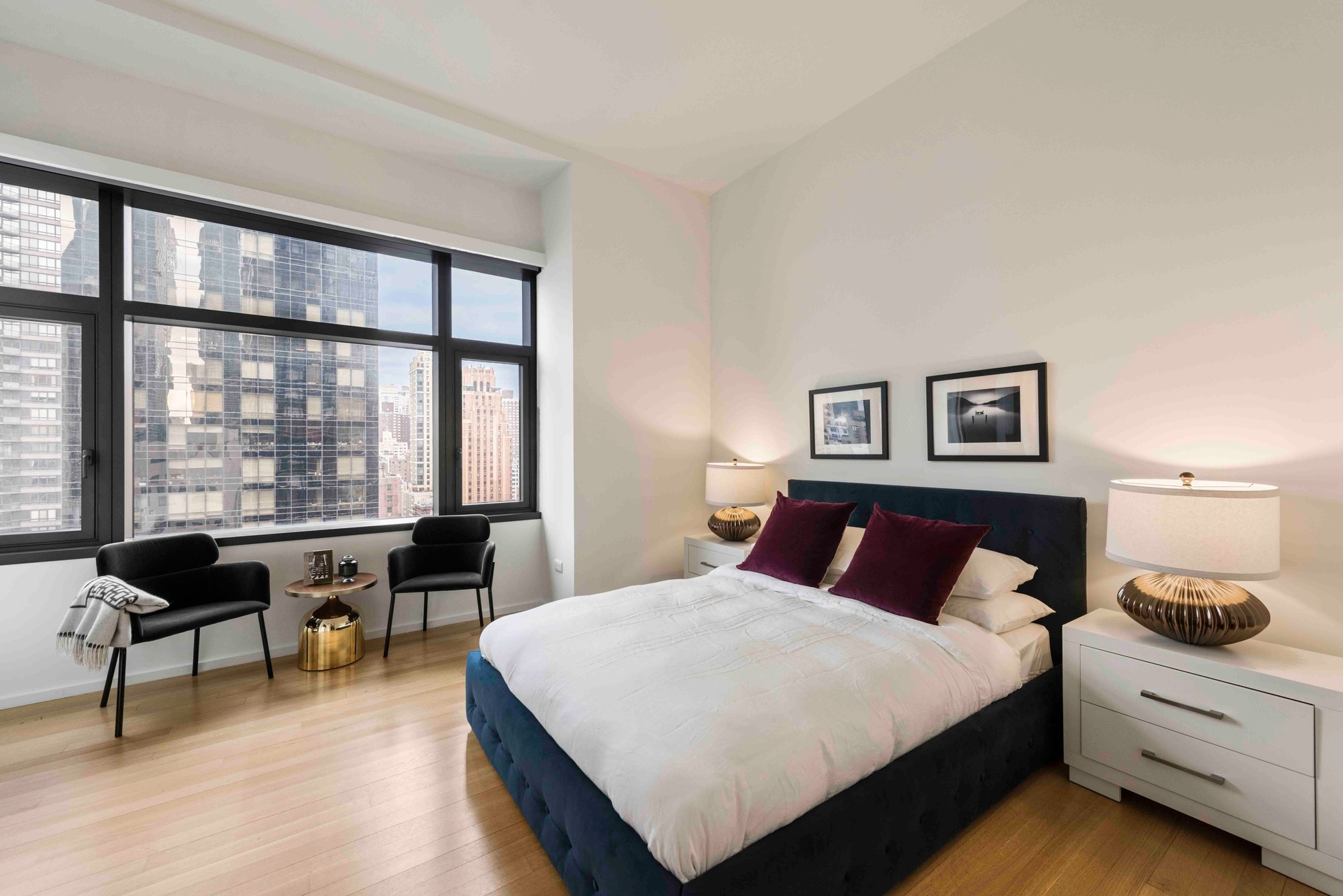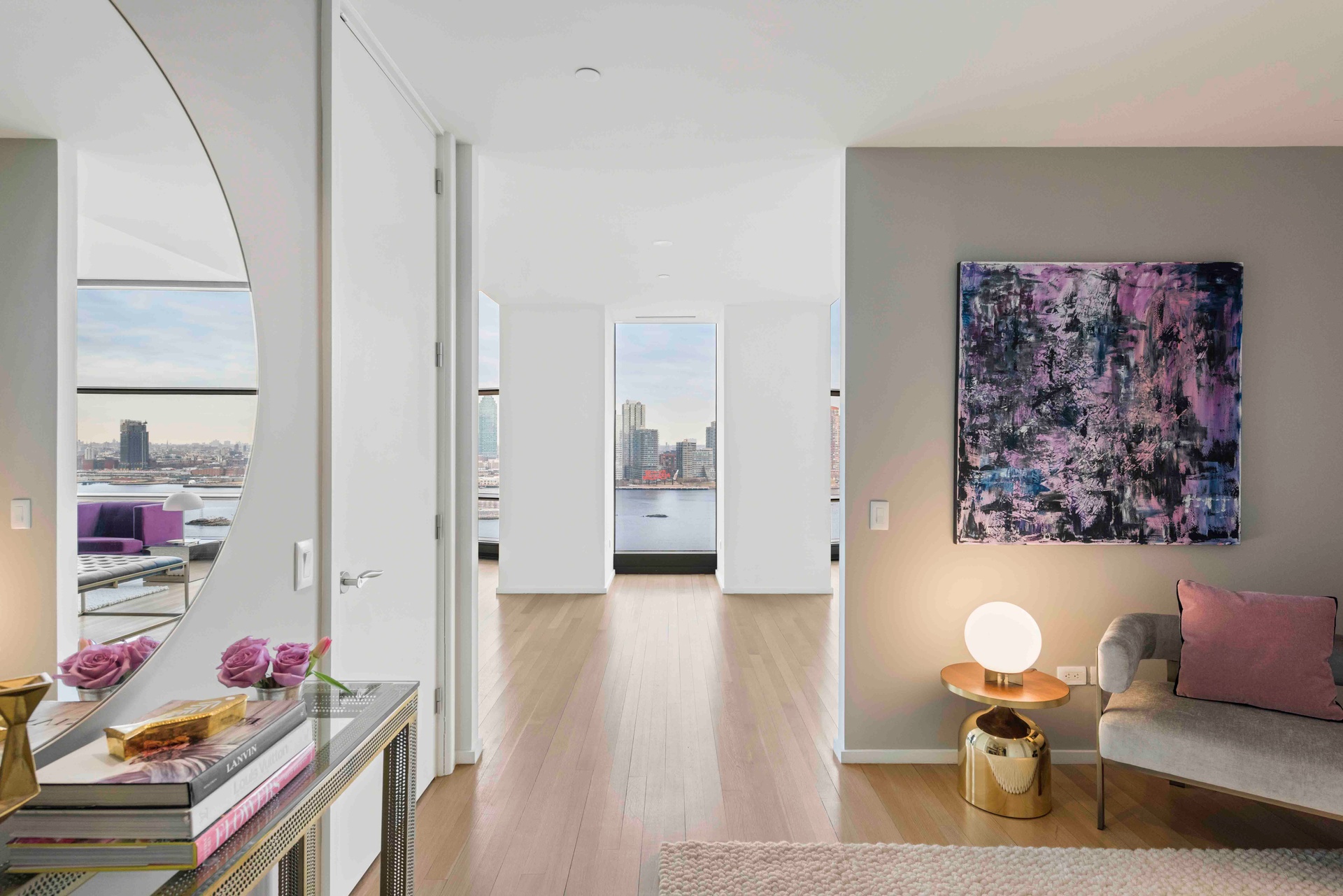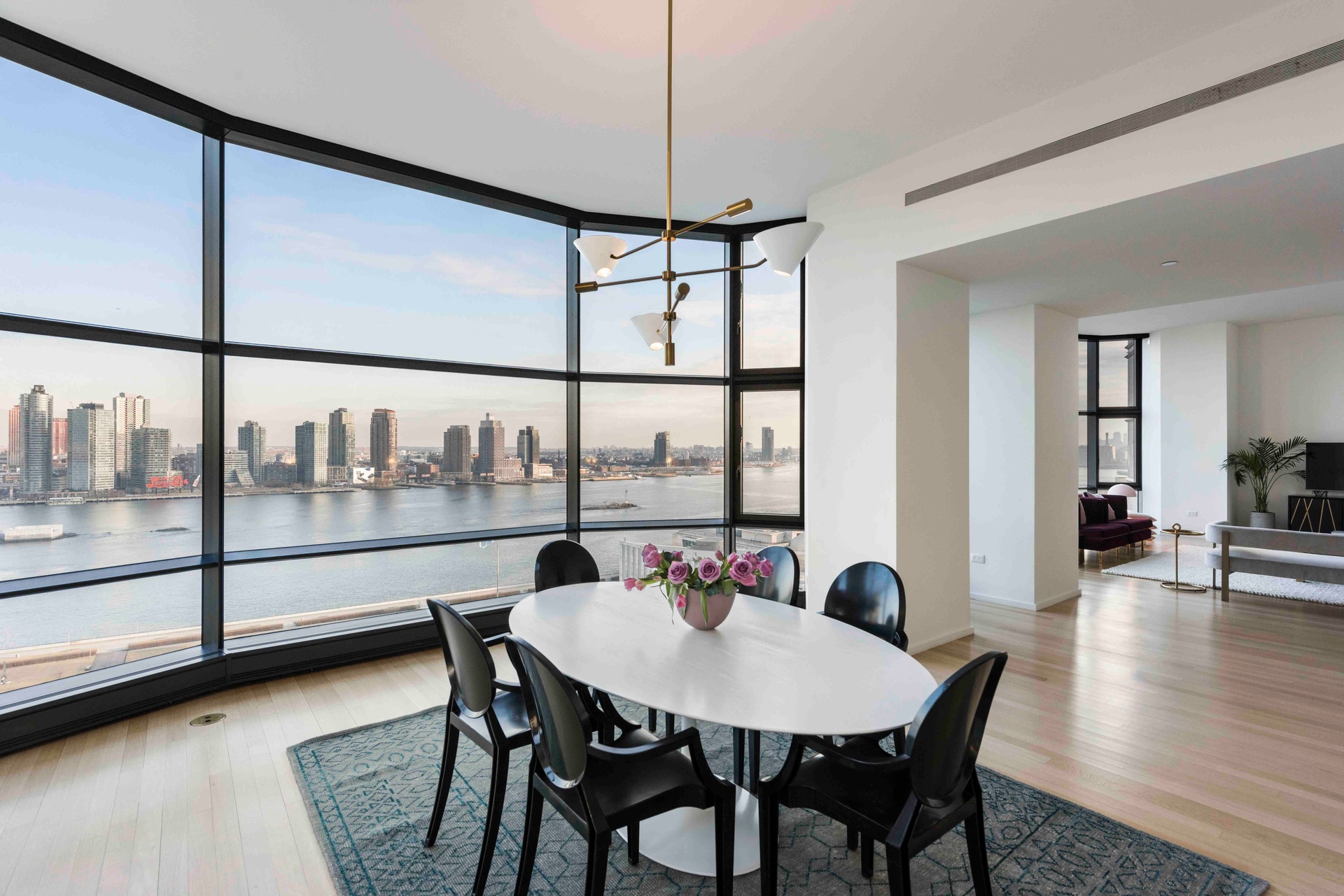 Welcome to Residence 17B - A fully furnished residence with parking included. An expansive and elegant family sized 3004 square foot home comprised of a fully equipped chef’s kitchen, three grand bedrooms plus a gracious and separate dining area, three bathrooms, one powder room and private laundry room. The Eastern side of the residence spans over 50 linear feet with 11-foot floor to ceiling windows and unobstructed serene River views, offering gorgeous light throughout the day. The residence offers two signature oversized floor to ceiling bay windows in both the massive living and dining areas exuding a personality of calm while being perfectly pristine and oh-so-grown up.