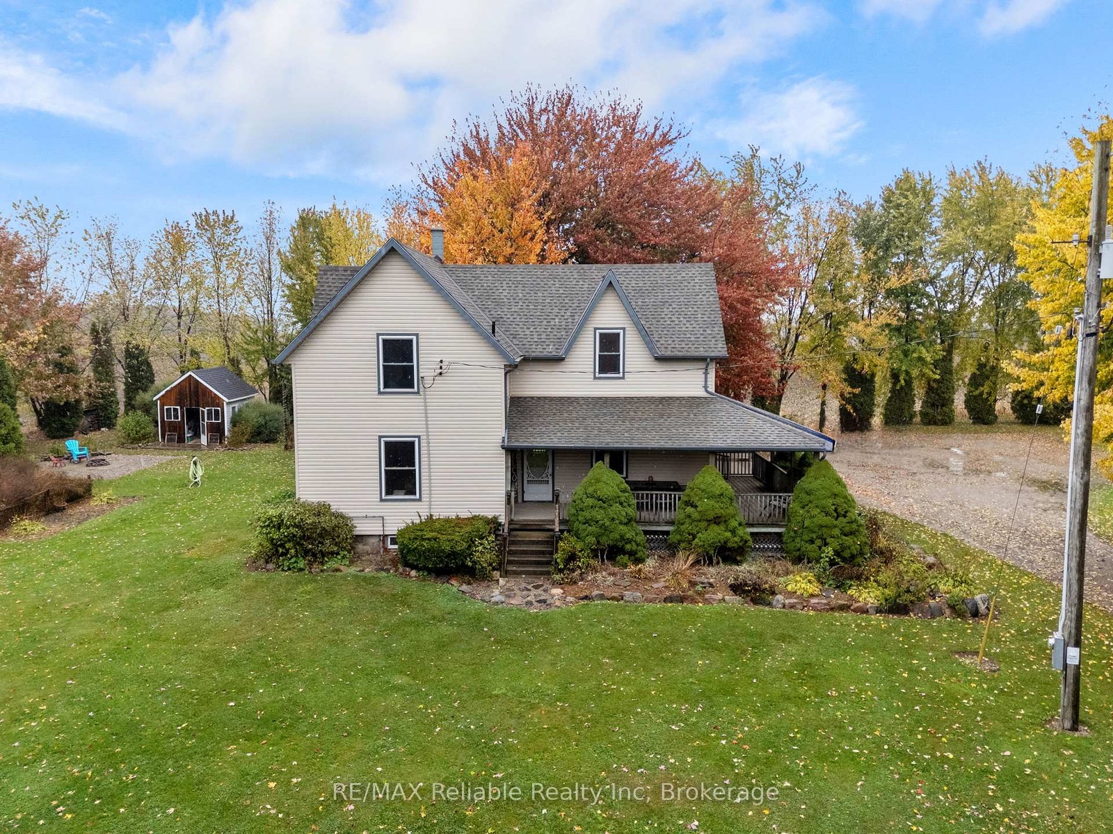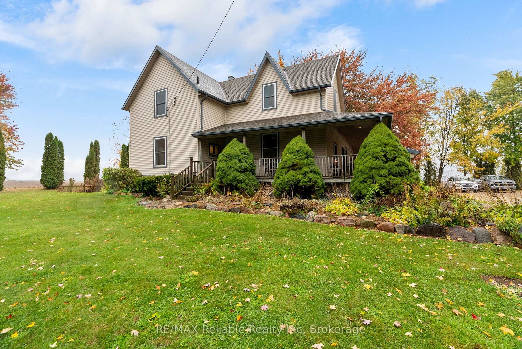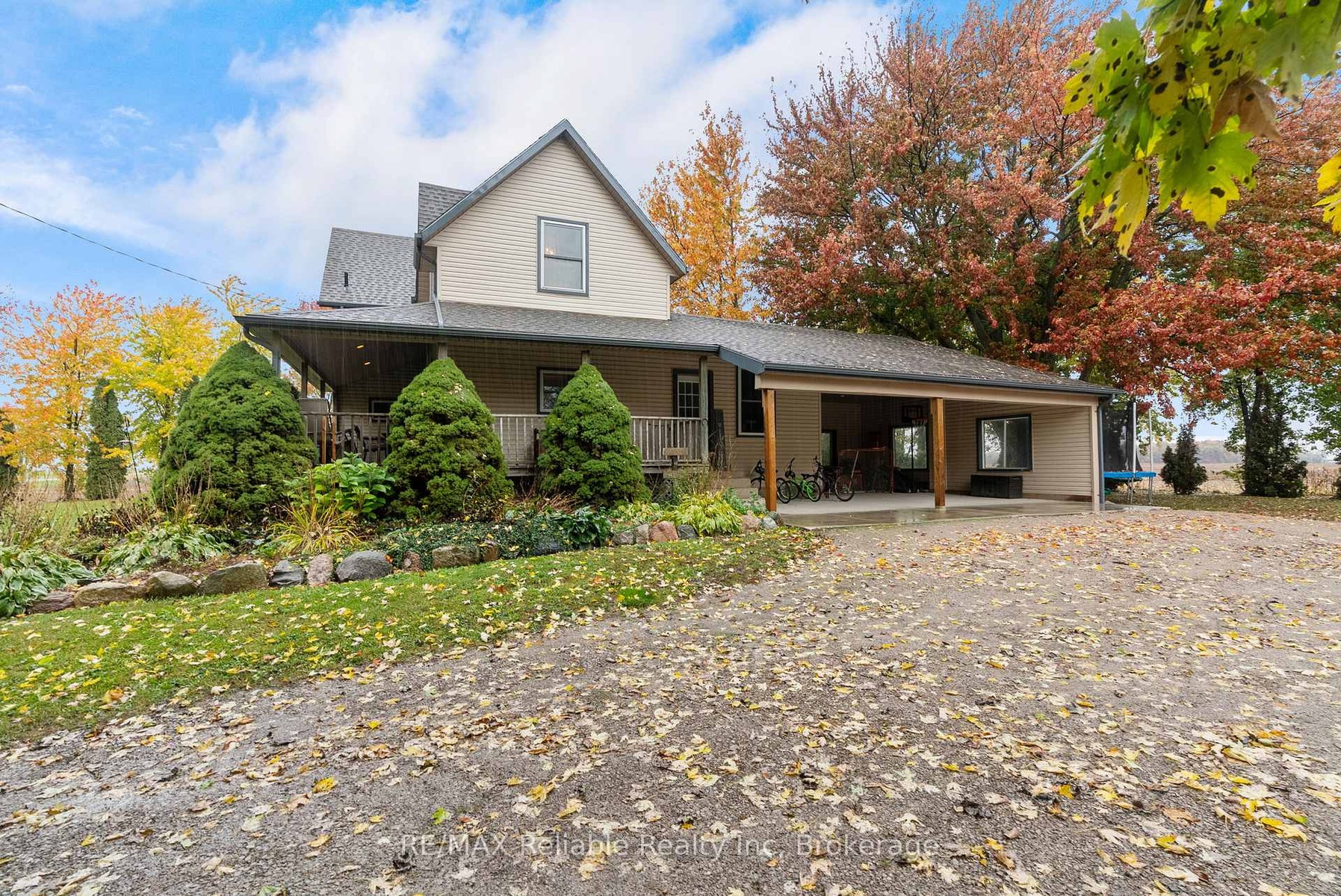 Private country acreage Retreat! Nestled among mature trees, this charming country property offers exceptional privacy and a peaceful setting. Enjoy quiet mornings or evening sunsets from the inviting wrap-around porch surrounded by nature. Inside, the home features a spacious country-style eat-in-kitchen that flows open into a great family room space for everyday living, gas furnace (2018). The large inviting living room provides plenty of space for entertaining family and friends. Main level laundry adds convenience while the home's character shines with natural wood trim and floors, plus patio doors leading onto back deck area. Additional features include updated windows attached double carport and a fenced area ideal for animal lovers located on 2.37 acres with 262.50 frontage and 393.70 depth centrally located.