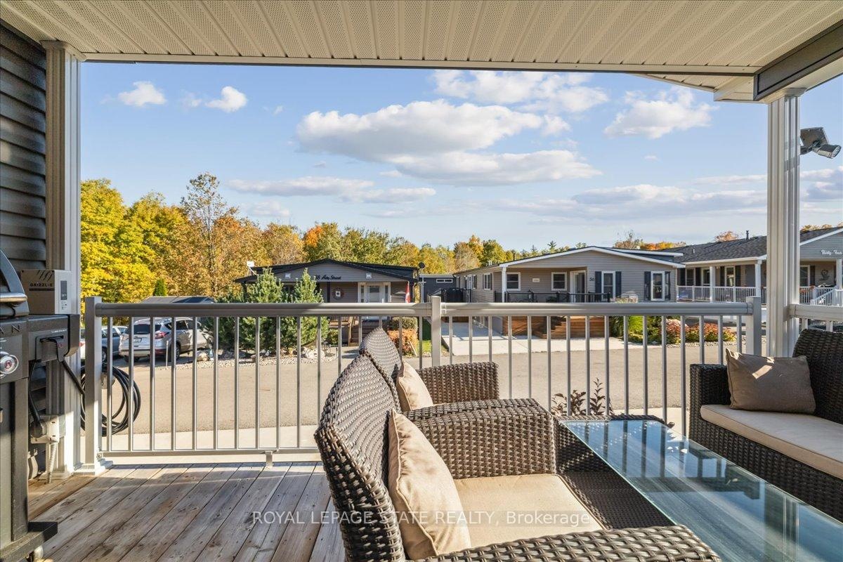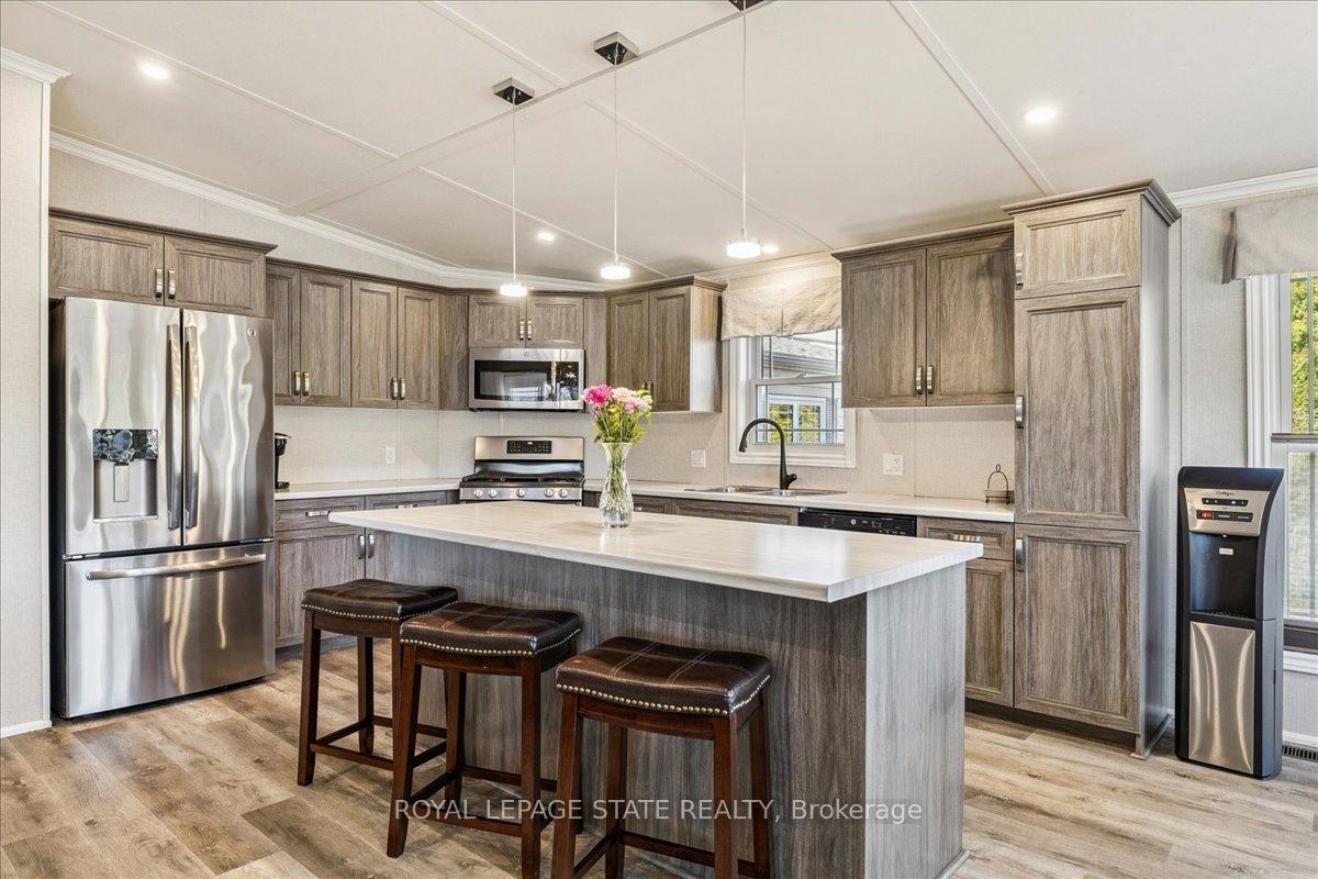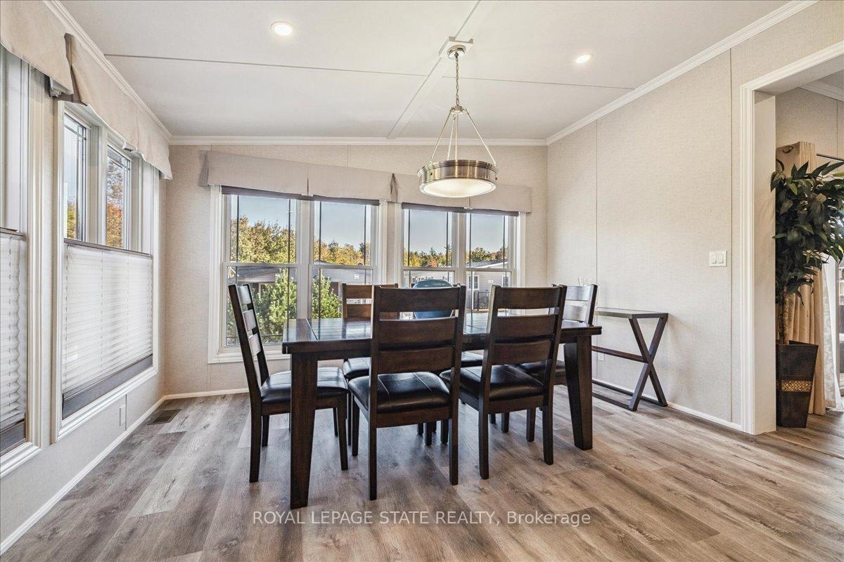 Welcome to this exceptional modular home, perfectly situated on leased land within the exclusive gated community of Lost Forest in north Burlington. Offering year-round comfort and a resort-like lifestyle, residents enjoy interior luxury and fantastic site amenities, including a seasonal pool. Step into the charming foyer and into an open-concept, single-level design, featuring soaring ceilings, and offering one of the largest spaces at 1315 Sq ft. The great room is bright and spacious with triple doors leading out to a cozy covered porch. The sunshine dinette features corner windows with eight large panels of glass. Some many things to appreciate including an upgraded kitchen with crown molding and large island, luxury vinyl floors front back, built-in wall cabinets in the great room, and bedrooms, offering tons of storage, in suite laundry and parking for three cars on the concrete driveway. Come and enjoy everything this worry-free, unique lifestyle has to offer!