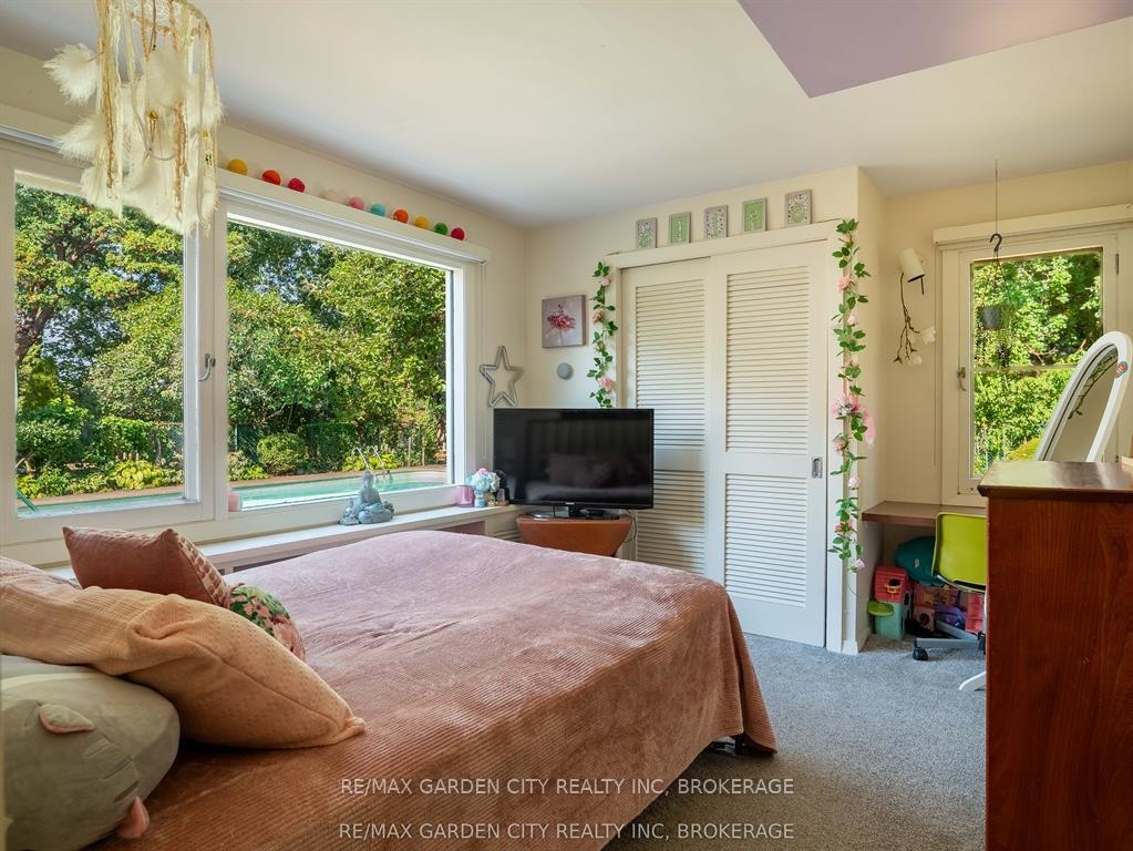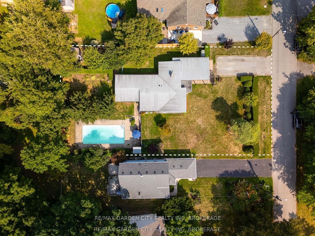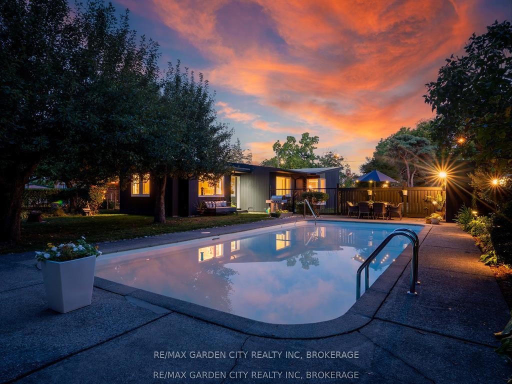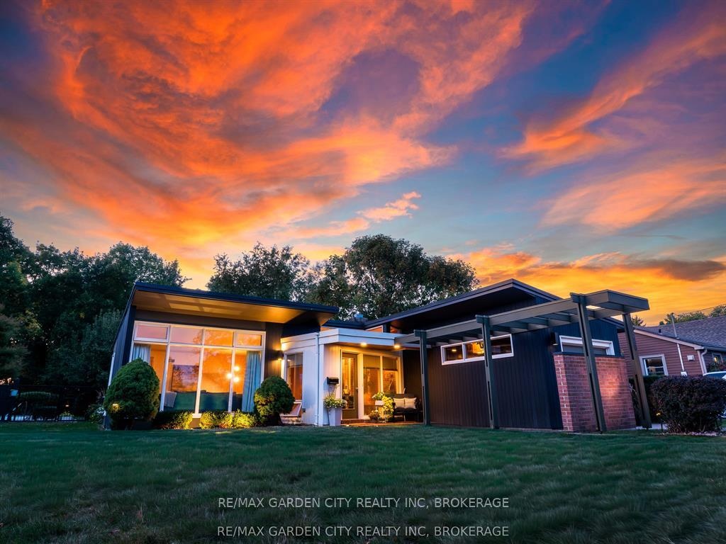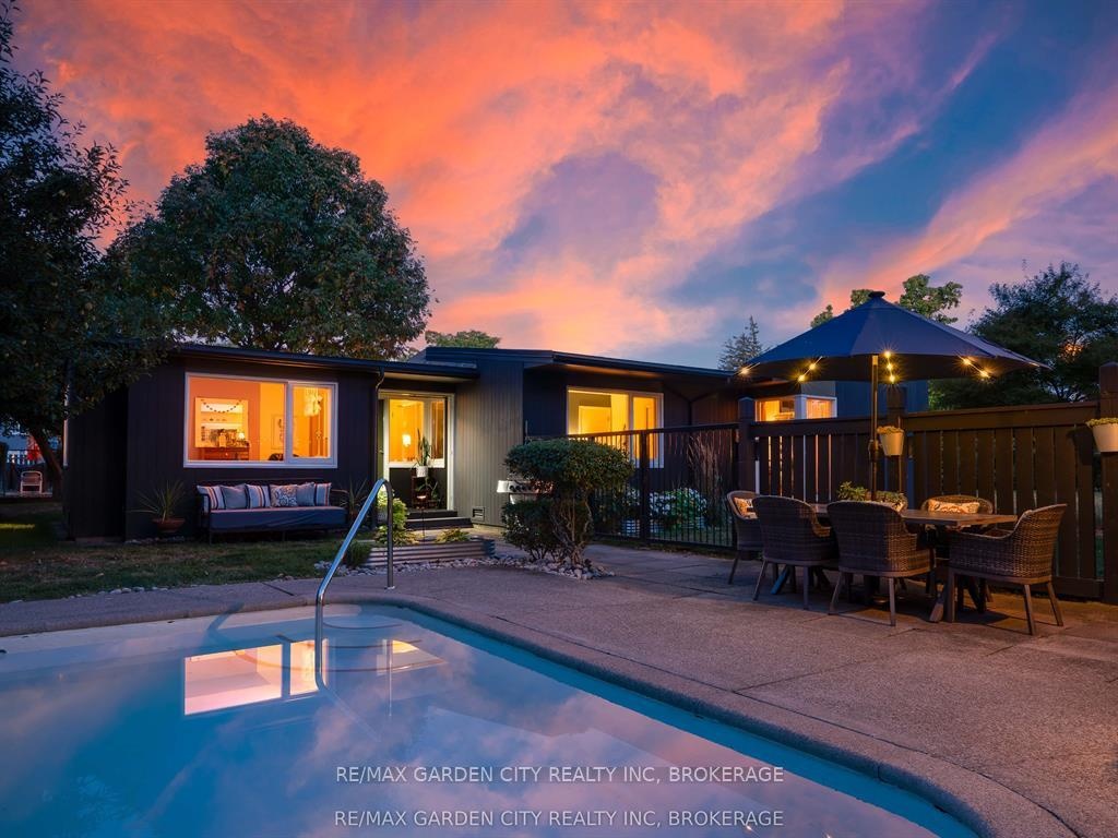 Oversized Lot on Martindale Pond Preserved Mid-Century Modern Retreat / Potential Development Opportunity. (LOT SIZE 90 x 164.90) Step into timeless style with this unique mid-century modern residence that blends retro charm with todays lifestyle. Situated on an oversized double lot, it offers both convenience and serenity minutes from the city and highways, yet tucked away in a private, tree-lined setting. Inside, authentic mid-century features shine: brick and wood accent walls, built-in cabinetry and bookshelves, floor-to-ceiling and picture windows, sloped ceilings and rooflines, Red Cedar siding, and original hardwood floors. The Frank Lloyd Wright inspired design emphasizes clean lines, natural light, and flowing spaces ideal for entertaining or relaxing at home. Outdoors, enjoy a sparkling pool, perennial gardens, and Martindale Pond just steps away. The neighbourhood also offers community access to the pond with kayaks, canoes, a deck, and sitting area for all to enjoy. This rare property provides the best of both worlds-easy city access with the feel of a private retreat. Recent upgrades include: bathroom renovation (2025), new air-conditioning with warranty (2025), full exterior paint (2023), entire pool decking lifted/reset (2019), pool concrete resurfaced and repainted (2021), and new 15-amp panel in pool shed (2025).