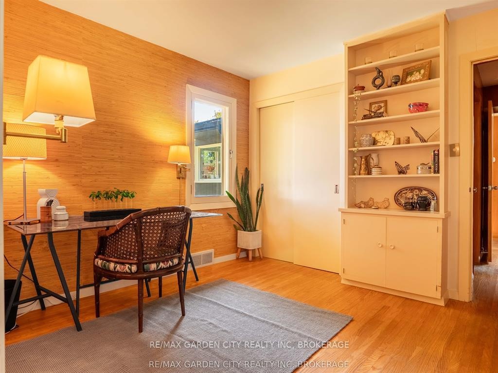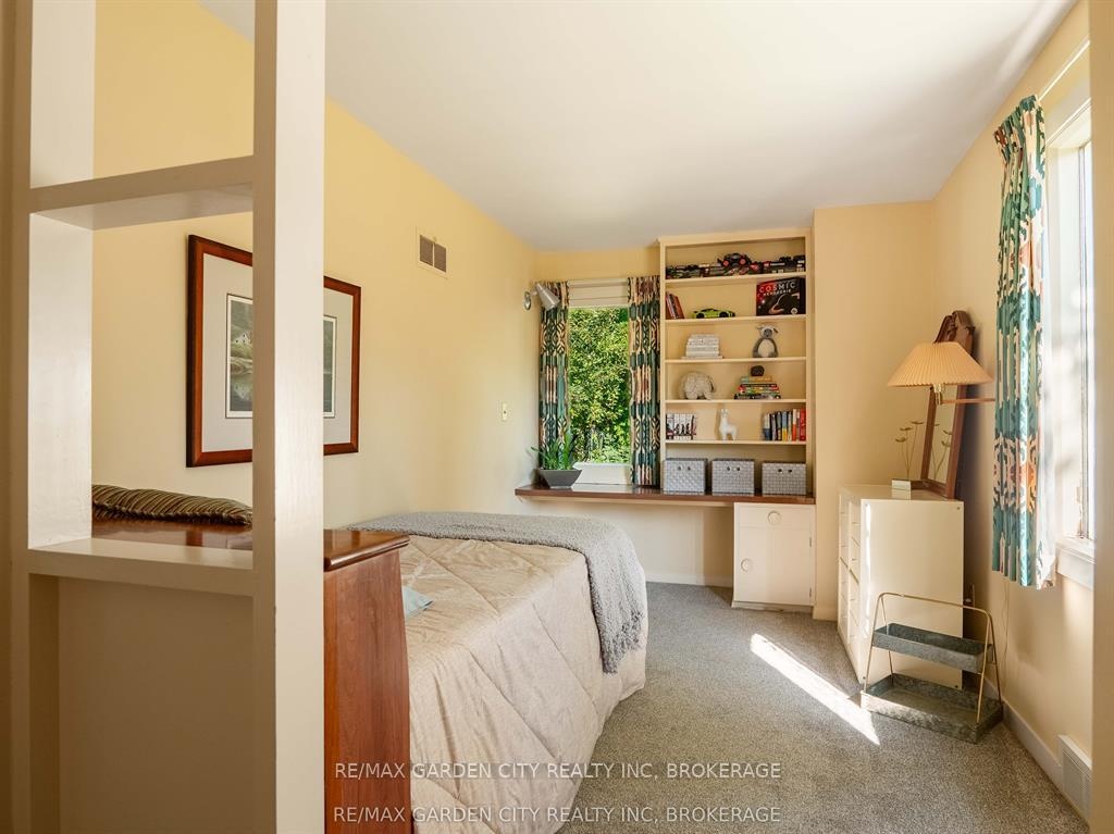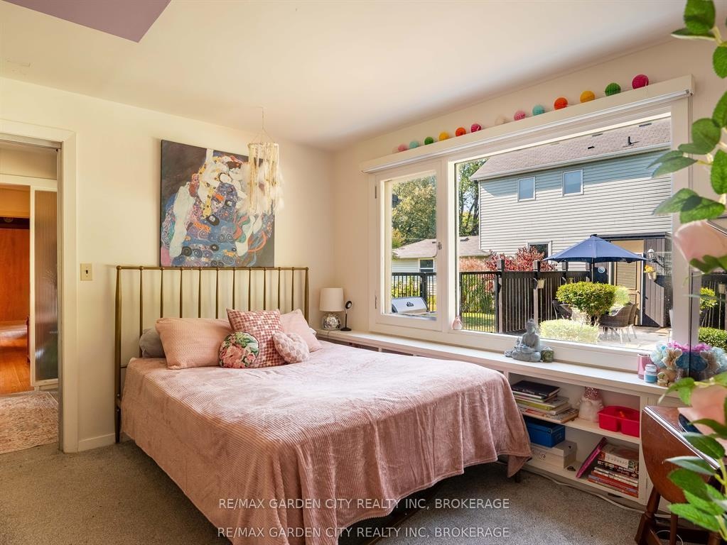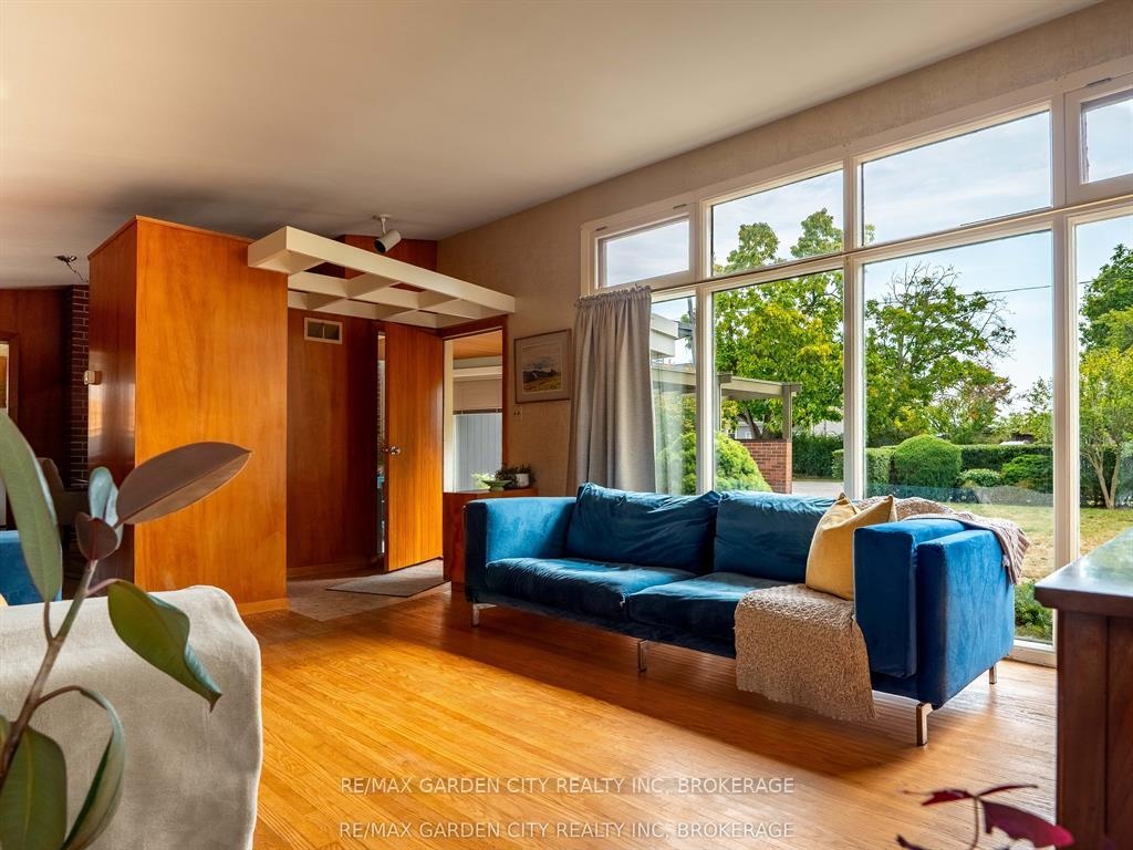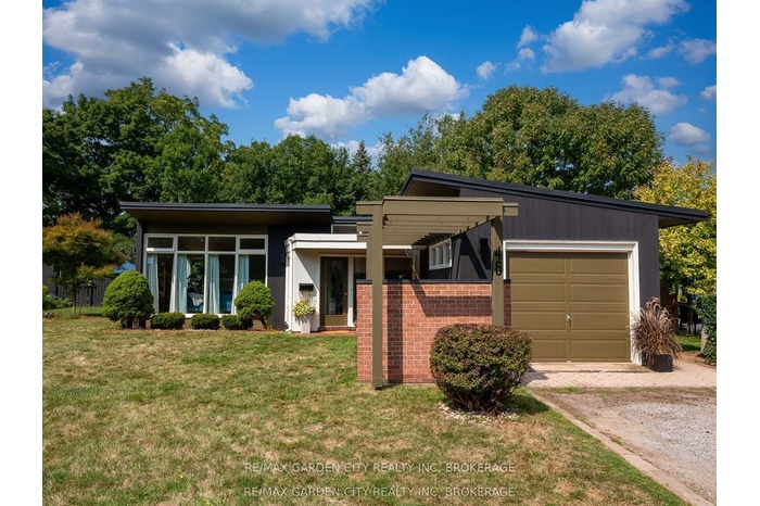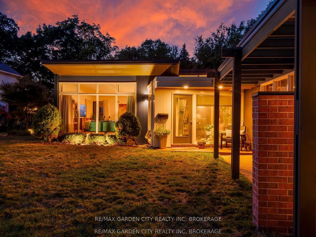 Oversized Lot on Martindale Pond Preserved Mid-Century Modern Retreat / Potential Development Opportunity. (LOT SIZE 90 x 164.90) Step into timeless style with this unique mid-century modern residence that blends retro charm with todays lifestyle. Situated on an oversized double lot, it offers both convenience and serenity minutes from the city and highways, yet tucked away in a private, tree-lined setting. Inside, authentic mid-century features shine: brick and wood accent walls, built-in cabinetry and bookshelves, floor-to-ceiling and picture windows, sloped ceilings and rooflines, Red Cedar siding, and original hardwood floors. The Frank Lloyd Wright inspired design emphasizes clean lines, natural light, and flowing spaces ideal for entertaining or relaxing at home. Outdoors, enjoy a sparkling pool, perennial gardens, and Martindale Pond just steps away. The neighbourhood also offers community access to the pond with kayaks, canoes, a deck, and sitting area for all to enjoy. This rare property provides the best of both worlds-easy city access with the feel of a private retreat. Recent upgrades include: bathroom renovation (2025), new air-conditioning with warranty (2025), full exterior paint (2023), entire pool decking lifted/reset (2019), pool concrete resurfaced and repainted (2021), and new 15-amp panel in pool shed (2025).