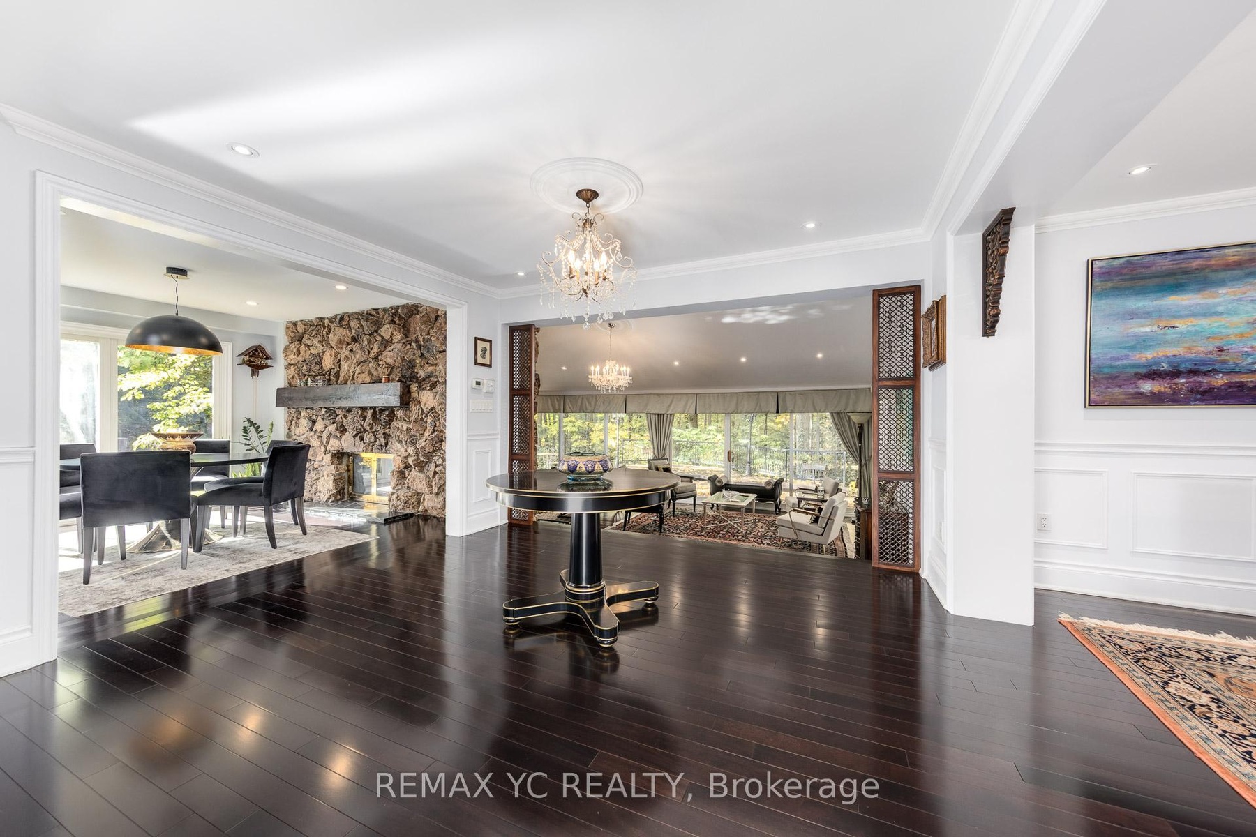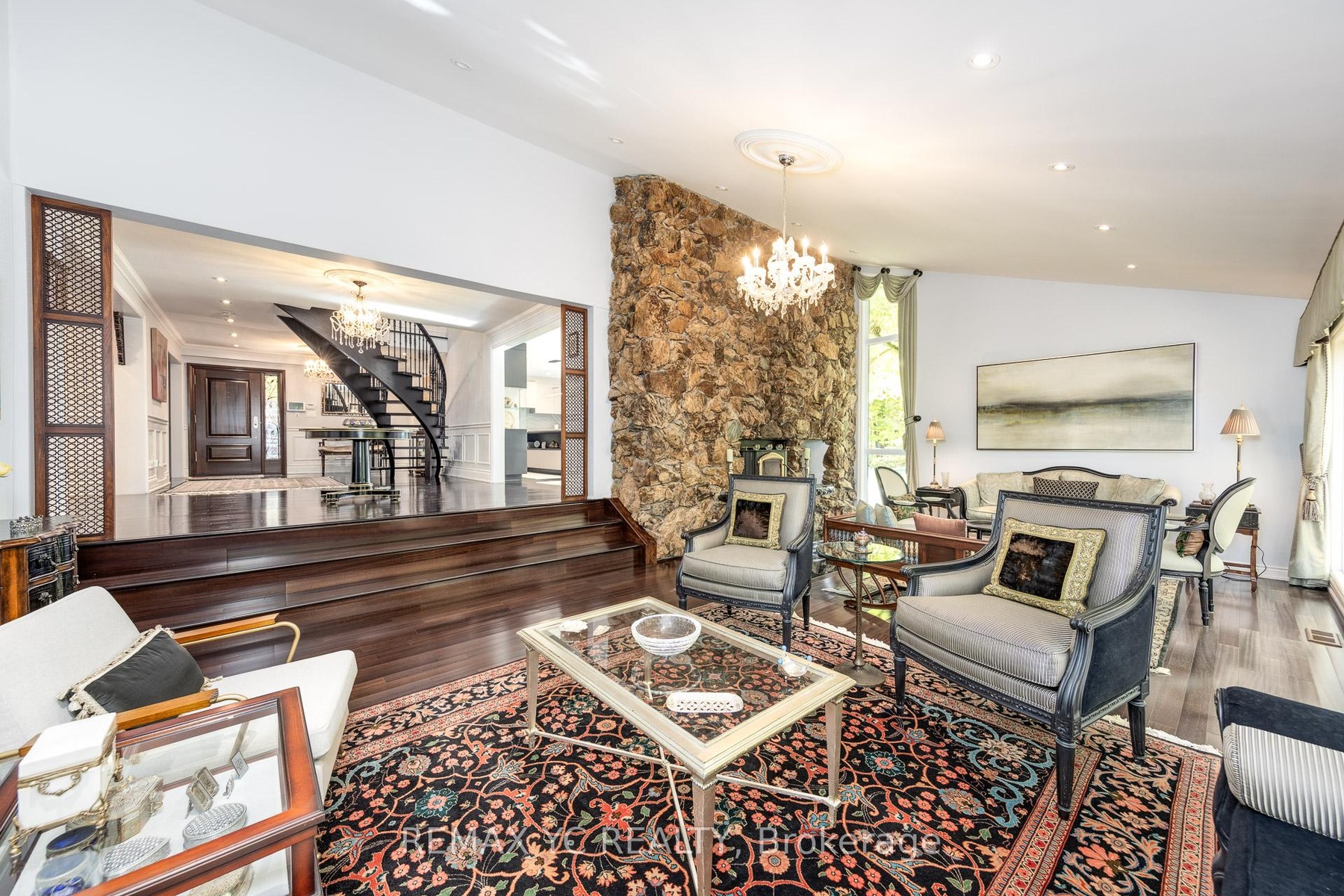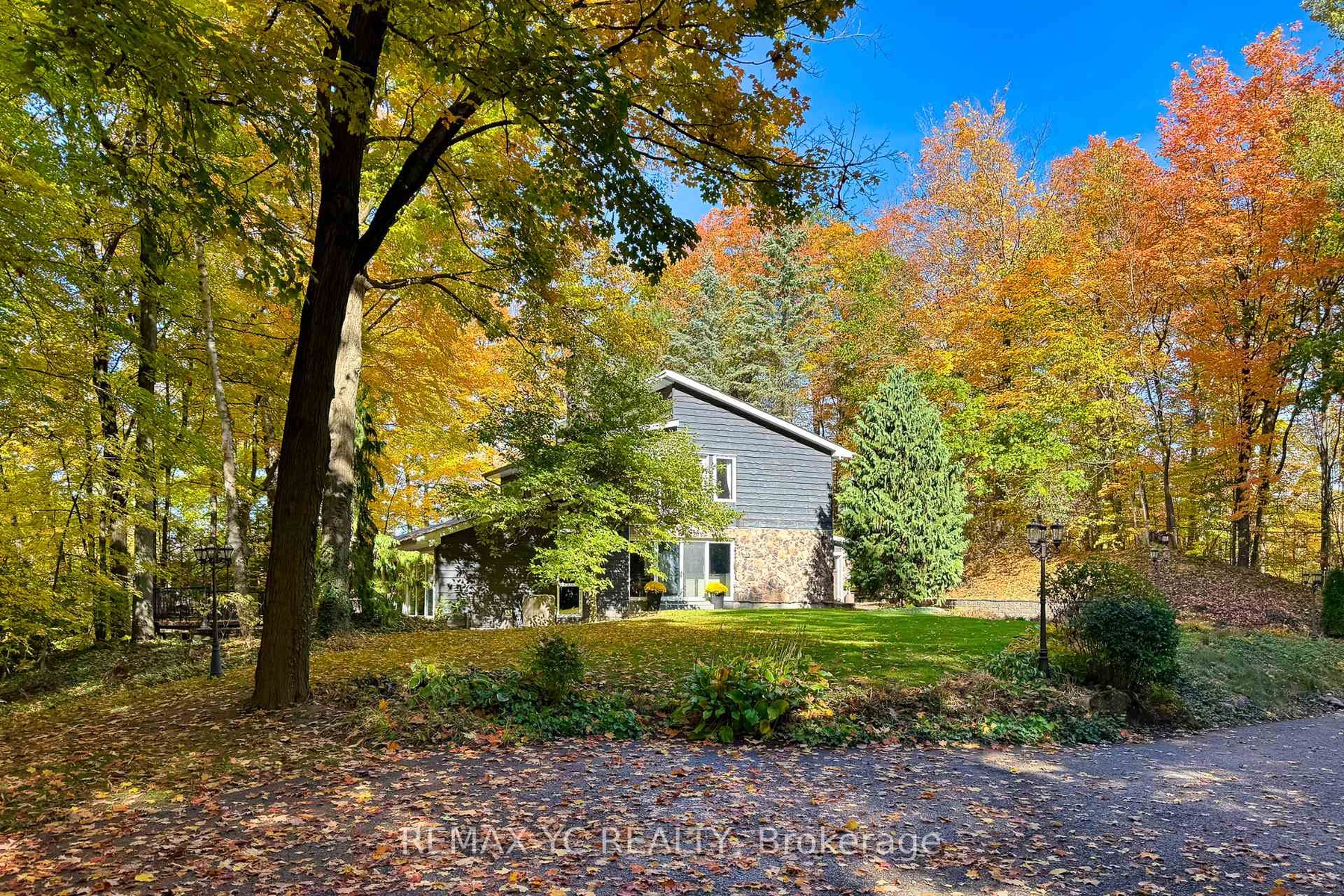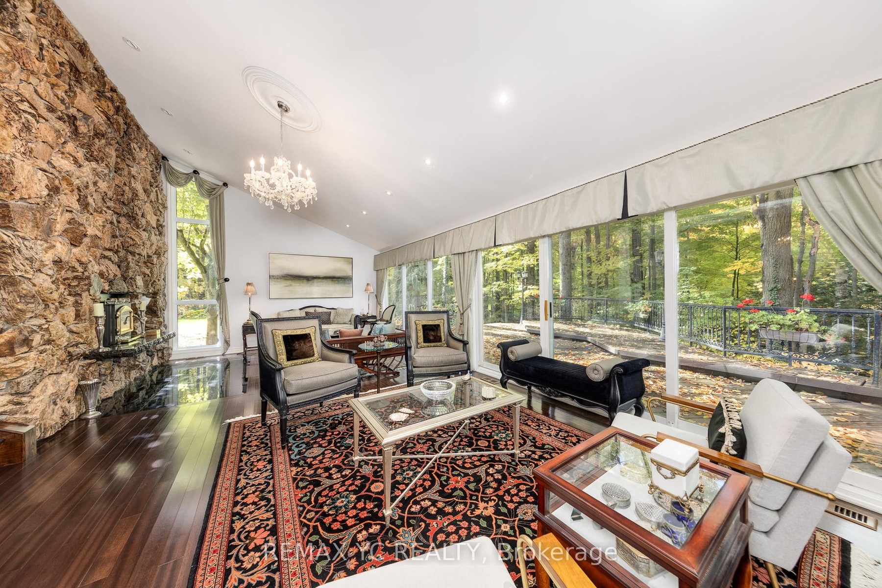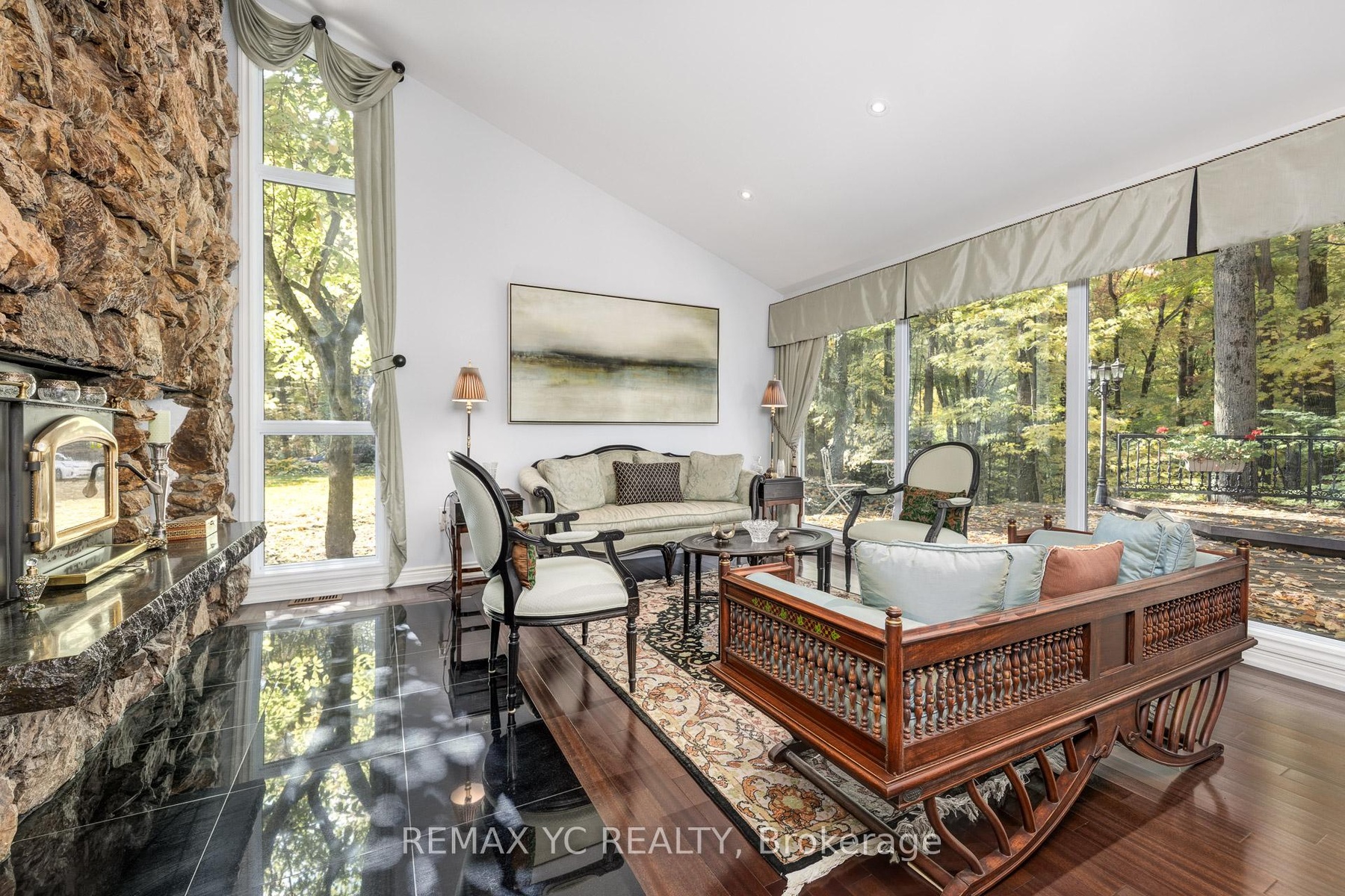 Luxury Living on 4.19 Private Acres - A Modern Retreat in Nature. Nestled within 4.19 acres of lush, forested land, this custom luxury residence offers the perfect blend of privacy, elegance, and modern comfort-just minutes from the city. Beautifully renovated throughout, the home retains its original character with a heritage stone fireplace and striking volcanic stone wall in the living area. Expansive windows frame stunning ravine and forest views, letting you enjoy the beauty of every season from your living room. The chef-inspired kitchen features a large island and premium Miele appliances, including a built-in coffee machine, steamer, and warming drawer. A spacious office overlooking the backyard provides an inspiring workspace surrounded by nature. Upstairs, the primary suite is a private haven with a eletric fireplace, sitting area, and spa-like ensuite with heated floors. Additional bedrooms offer custom built-ins, large closets, and panoramic windows. The finished basement adds flexible recreational space, while modern updates include a 200 Amp electrical panel, new mechanical systems, and a comprehensive security system. An automatic gated entrance and private driveway lead you through serene woodlands to this exceptional home-where luxury meets tranquility in a truly rare natural setting. **3D Floor plan Link attached