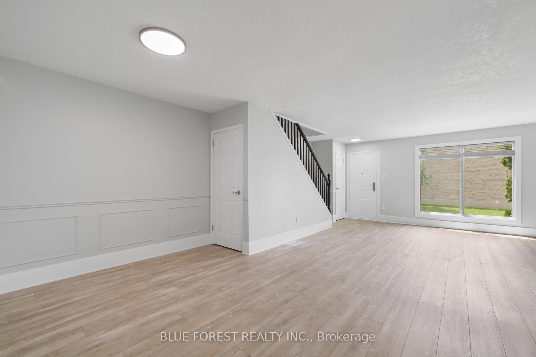 Turnkey condominium living in southwest London. This meticulously updated three-bedroom, 1.5-bathroom residence has been thoughtfully refreshed throughout, including new trim, paint, baseboards, flooring, and additional upgrades. The second level features generously sized bedrooms designed to provide ample comfort. The fully finished basement offers a versatile den, suitable for a home office, recreational space, or additional living area. The condominium fee covers water expenses and includes an exclusive parking space located conveniently near the entrance. Ideally situated near TVDSB and LDCSB elementary and secondary schools, as well as a variety of amenities, excellent dining options, shopping centers, and with convenient access to Highway 401/402.