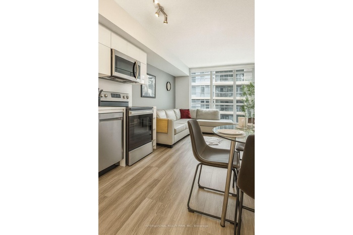 Airbnb-Friendly Turn-key Investment in CityPlace! Exceptional opportunity for investors - own in one of the few Toronto buildings that currently permits short-term rentals (Airbnb). This bright and spacious 1-bedroom + den suite features a functional open layout with no wasted space, modern vinyl flooring, and fresh paint. Comes fully furnished with brand-new designer pieces, including a custom Italian leather sofa and EQ3 beds - ready to rent or move in immediately. Enjoy peace of mind with recent upgrades: all appliances replaced in 2024 (microwave, stove, washer, dryer, fridge) and new flooring installed in 2022. Residents of Club Parade have access to outstanding amenities - full fitness and weight centre, yoga studios, squash court, indoor lap pool with Jacuzzi, spa, theatre, billiards, kids' play zone, and outdoor lounge with BBQ areas. Prime downtown location steps to Canoe Landing Community Centre, Jean Lumb Public School, Loblaws, Shoppers, LCBO, transit, and the waterfront. Includes 1 parking & 1 locker.Ideal for investors seeking a high-yield, fully-furnished, Airbnb-approved property in one of Toronto's most desirable communities. Motivated seller!! showings anytime.