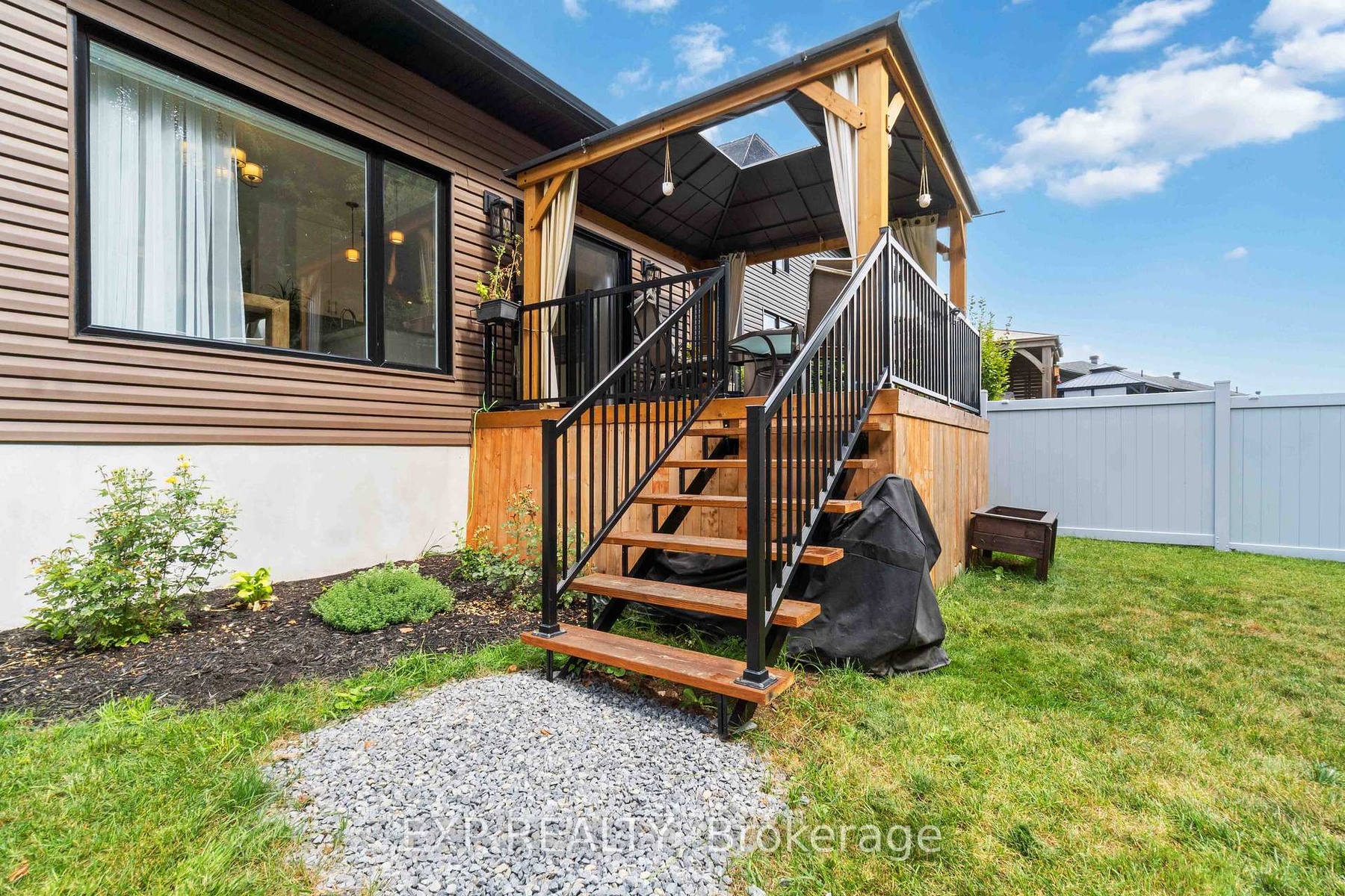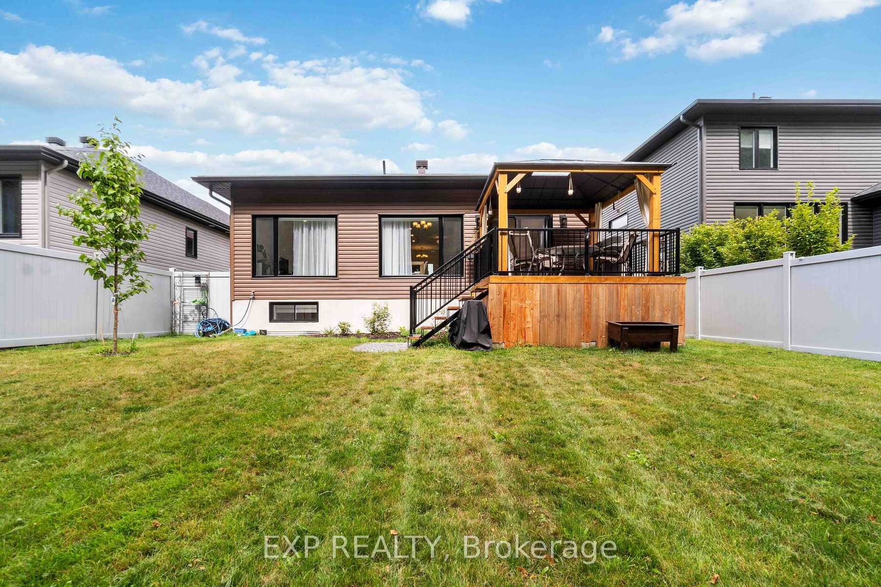 Welcome to this meticulously maintained bungalow by Joroma Construction, located in the coveted Domaine de la Rivière Nation community in Casselman. Ideally situated on a premium lot with no rear neighbors, this property offers privacy, tranquility, and luxurious living just moments from shopping, dining, and excellent schools. This custom-built home impresses from the moment you enter, with 9-foot ceilings, elegant tile work, and high-end finishes selected with care throughout. The main level features two spacious bedrooms, including a versatile office or second bedroom, and a stunning 4-piece bathroom complete with a soaker tub, ideal for relaxation. The open-concept layout is flooded with natural light and anchored by a show-stopping kitchen that blends modern style with practical functionality. Downstairs, the fully finished lower level expands your living space with a third bedroom, stylish 3-piece bathroom, a spacious recreational room, and convenient laundry access. This level offers excellent flexibility for guests, extended family, or a home gym. From its refined interior to its peaceful backyard setting and premium no rear neighbor lot, this home is a rare opportunity for discerning buyers seeking quality craftsmanship, comfort, and elegance.