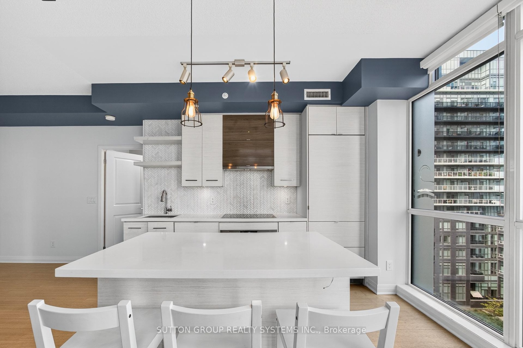 Unlike Conventional High-Rise Buildings, This Unique Boutique Condominium Offers An Exclusive Level Of Luxury & Privacy For Those Who Desire A More Distinguished & Upscale Lifestyle. Presenting This Stunning 2 Bedroom 2 Bathroom Condo With An Underground Parking Spot & A Locker Nestled In One Of Most Sought After Toronto Locations. Meticulously Kept, This Condo Offers A Practical & Spacious Layout Boasting A Desired Split 2 Bedroom Floor Plan With Each Full Bathroom Servicing Their Independent Bedroom. Walk In To This Unit & Breath The Openness - Be Inspired, Unwind Your Creative Side & Get Carried Away By The Naturally Bright Open Concept Layout With Gorgeous Finishes, Neutral colours & Tons Of Upgrades Including Gleaming Floors, Floor To Ceiling Windows, High Ceilings, Sparkling Clean Modern Kitchen, Boasting Built-In Appliances, A Large Centre Island , Quartz Countertops, Undermount-Sink, Track Lights, Backsplash & Lots Of Cabinet/Counter Space. One Large & Comfortable Primary Bedroom Flooded With Tons Of Natural Light Offers A Walk-In Closet Equipped With Closet Organizers & An Ensuite Bathroom With Engineered Stone Vanity Top. Conveniently This Condo Is Equipped With An Ensuite Upgraded Washer and Dryer Combo. Walk Out & Enjoy Your Own Covered Balcony Offering A combination Lake & City-Views. With Top Notch Amenities Including An Indoor Pool, A 24-hour concierge, Fitness Studio, Yoga studio, Whirlpool, Party Room, Billiard- Room, Guest Suites, Outdoor Courtyard With A BBQ Area, Rooftop Terrace, Experience a Truly Elevated Way Of Living In This Boutique Residence, Which Delivers A Sense Of Luxury & Exclusivity Rarely Found In Larger Buildings. This is A Home For Those Who Appreciate Fine Living. Schedule A Private Tour To Experience Its Unique Charm & See Why It's The Perfect Place To Call Home.