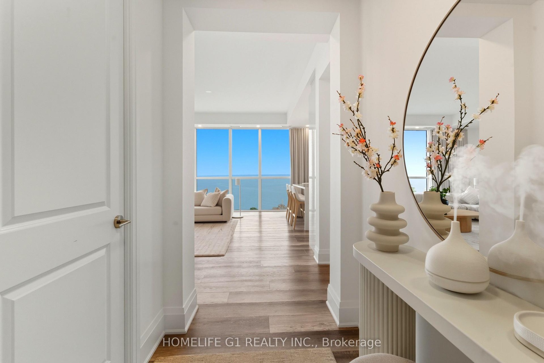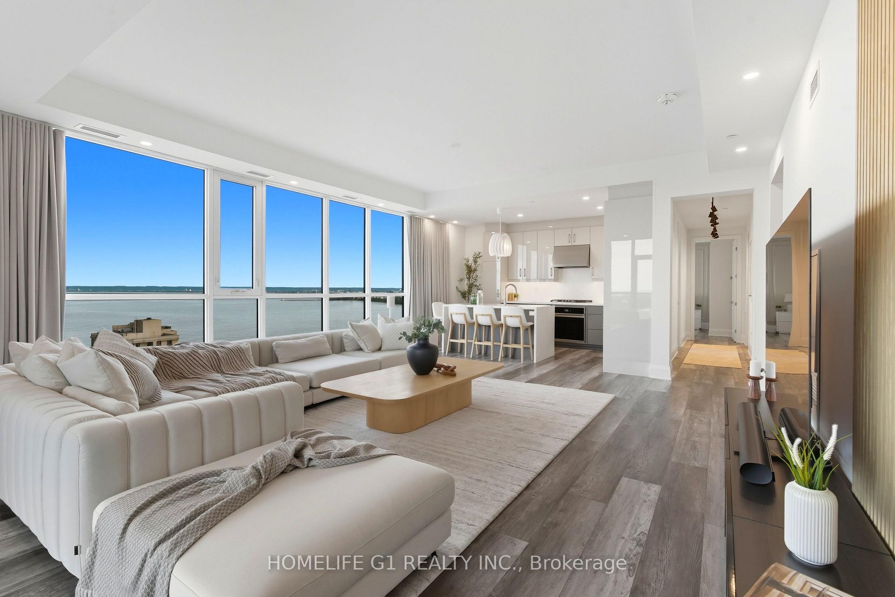 Stunning Lower Penthouse in South Burlington's Waterfront Community A rare offering - this 3 bedroom, 3 bathroom lower penthouse combines sophistication, convenience, and unparalleled views. Featuring 1,681 sq.ft. of interior living space, a 288sq.ft. private terrace, and 2 underground parking spaces, this residence sets a new standard for luxury condo living in Burlington. Inside, soaring 10' ceilings and floor-to-ceiling windows fill the home with natural light while framing breathtaking views of Lake Ontario, downtown Burlington, and the Toronto skyline. The open-concept layout is perfect for both daily living and entertaining, with seamless flow between living, dining, and kitchen spaces. The chef-inspired kitchen is fitted with premium Monogram appliances, custom cabinetry, and quartz countertops, delivering both function and elegance. A spacious primary suite offers aspa-like ensuite and ample storage, while two additional bedrooms provide flexibility for guests, a home office, or hobbies. Each of the three bathrooms is finished with modern, designer touches. Step outside to your private 288 sq.ft. terrace - the perfect space for morning coffee, evening cocktails, or simply taking in endless water and skyline views. This exclusive residence also includes two underground parking spaces, providing convenience and security rarely found in condo living. Residents enjoy access to an impressive array of resort-style amenities, including a roof top terrace with fire pits and gardens, an indoor pool, fitness centre, yoga studio, games and entertainment lounges, and full concierge services. Located in the heart of South Burlington, you are just steps to Spencer Smith Park, the Burlington Pier, waterfront trails, boutique shopping, restaurants, cafés, and cultural attractions. Easy access to GO Transit and major highways makes commuting seamless. Experience penthouse living on Burlington's waterfront - where every detail is designed for those who expect more.