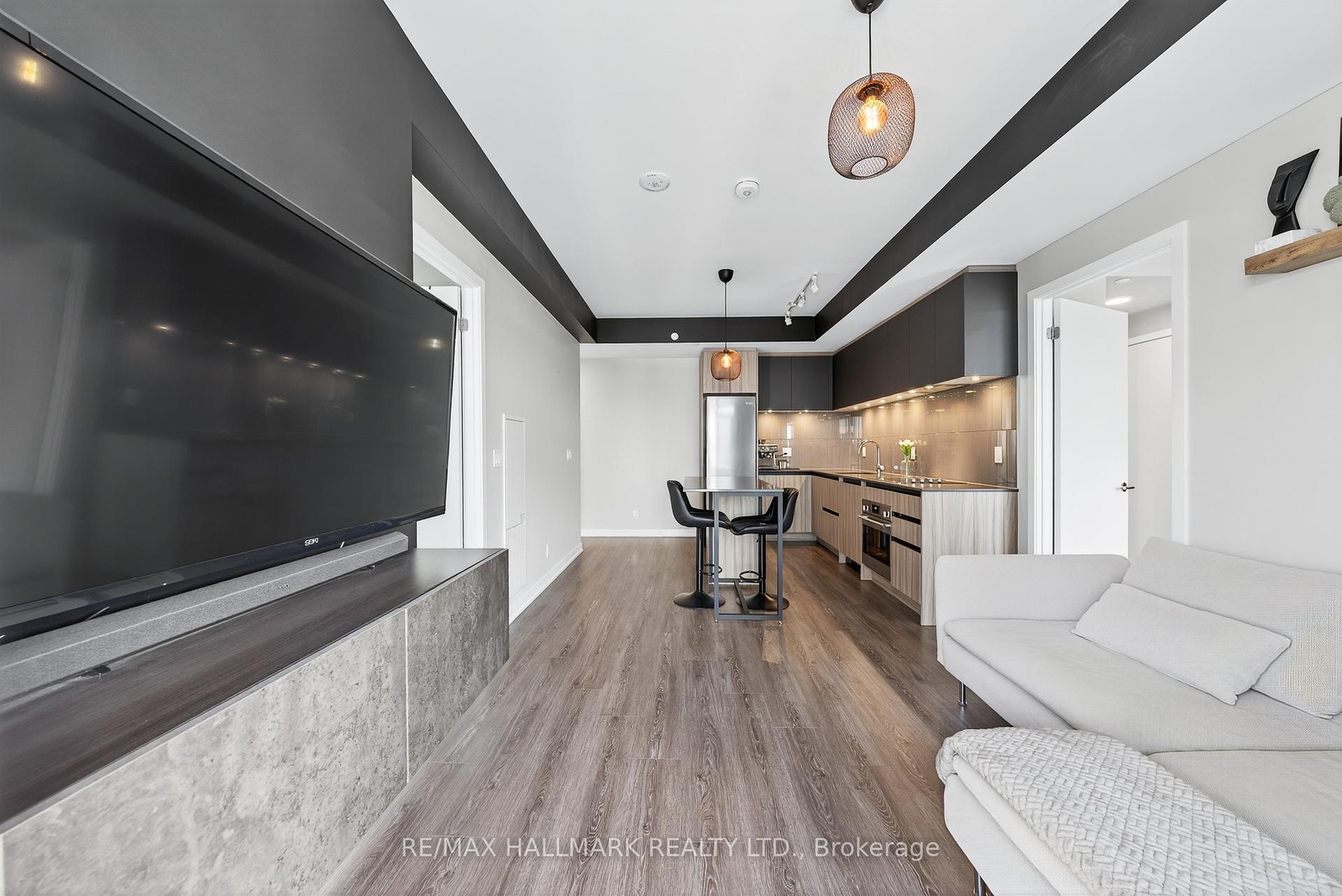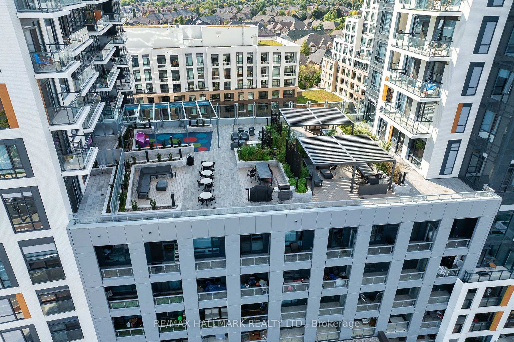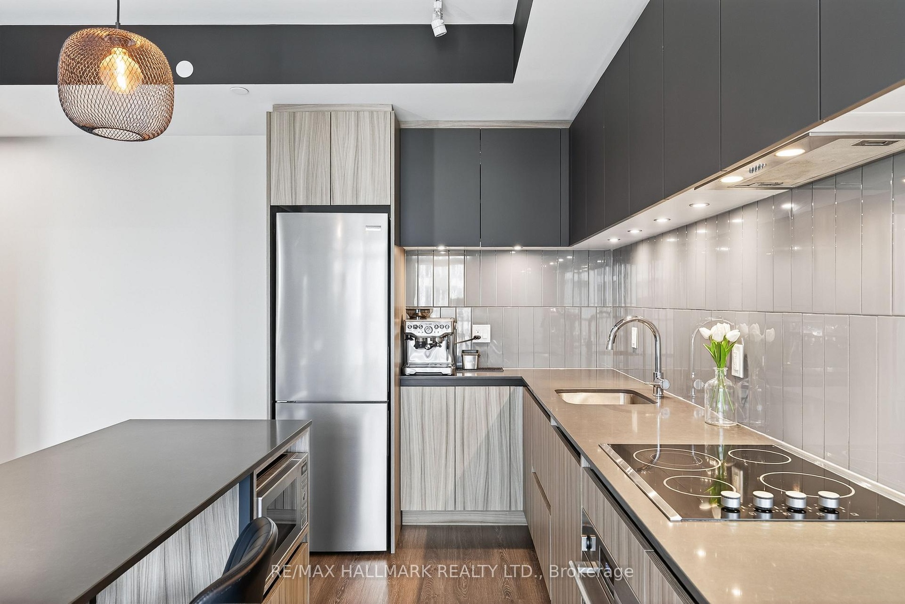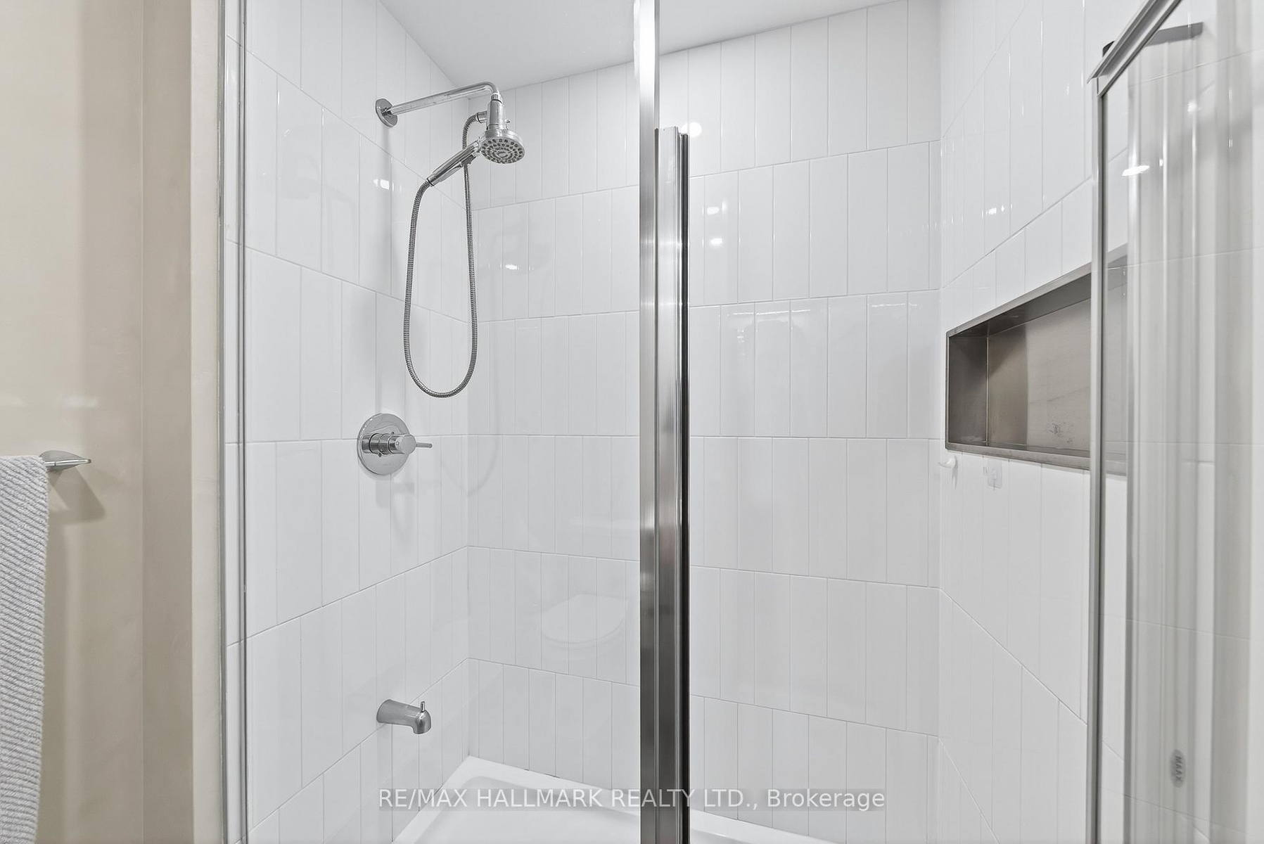 Experience modern living in this beautifully finished 2-bedroom, 2-bathroom suite, located in a pet-friendly building right in the heart of Thornhill! Designed with both functionality & style in mind, this suite features a practical split-bedroom layout, quartz countertops, sleek modern finishes, and a bright open-concept living space that maximizes both flow & natural light throughout the day. The unit has been painted with design in mind and includes thoughtful upgrades such as a custom shower niche, blinds, and an additional light fixture in the living room for enhanced ambiance. The kitchen features contemporary cabinetry with integrated under-cabinet valance lighting, soft-close hardware, and a matching quartz island with dining accommodations. Additional highlights include low-consumption toilets, an acrylic deep soaker tub, a stacked front-loading washer & dryer, and energy-efficient lighting in the foyer & bedrooms. West-facing views allow you to enjoy breathtaking sunsets while relaxing on the oversized 134 sqft balcony, accessible from both the living room and the primary bedroom. As a resident, enjoy access to premium amenities, including a fitness centre with a yoga studio, a basketball court, a modern party room, guest suites, co-working space, a family room, an outdoor terrace with dining spaces, BBQs, & lounge areas, and visitor parking. Perfectly located in the core of Thornhill's most vibrant community, this building is steps from Thornhill Green Park, cafes, Walmart, F45, restaurants, pharmacies, banks, Promenade Mall, and T&T. Families will appreciate the nearby French Immersion schools, while commuters will enjoy seamless access to Hwy 407, Hwy 7, and Viva Transit. York University, Seneca College, and the York University Subway Station are all just a quick 15-minute drive away. Advanced security features include 24-hour concierge, key fob access, and surveillance cameras. Enjoy the convenience of a P1 parking spot and a locker for extra storage.