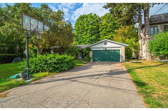 Build your dream home on a stunning pie-shaped ravine lot nestled on a quiet Banbury court, directly across from the prestigious Bridle Path estates. This exceptional 14,003 sq. ft. property widens to 142 ft. at the rear and offers the rare advantage of a full ground-floor walkout. Included in the sale are fully approved permits - Building, TRCA, HVAC, and Demolition - along with architectural plans for an impressive 8,400 sq. ft. modern residence (5,762 sq. ft. above grade plus full ground floor). A Federal elevator has already been ordered with the deposit paid.The approved design showcases 9 and 10 ft. ceilings and a thoughtfully designed 2,638 sq. ft. main floor featuring a two-storey family room, formal dining room, state-of-the-art kitchen and breakfast area with terrace walkout, music room, and mudroom - all oriented to take in breathtaking ravine views. The second level offers a luxurious primary suite with balcony, two walk-in closets with skylights, a five-piece ensuite, three additional bedrooms with ensuites, a library, and a laundry room. The lower level design includes multiple walkouts to the ravine, a recreation room with bar and media area, playroom, large office with separate entrance, exercise room with sauna and spa, fifth bedroom with ensuite, powder room, utility, and cold rooms.An existing sprawling 1960s bungalow in mint, livable condition currently occupies the site. Ideally located steps to Edwards Gardens, Toronto Botanical Garden, Rosedale Golf Club, Banbury Community Centre, tennis courts, Sunnybrook Health Sciences Centre, York University Glendon Campus, and the Shops at Don Mills, with quick access to the Don Valley Parkway and Highway 401.All permits are in place. Full documentation package available upon request. Note: Room measurements describe the existing bungalow currently on the property.