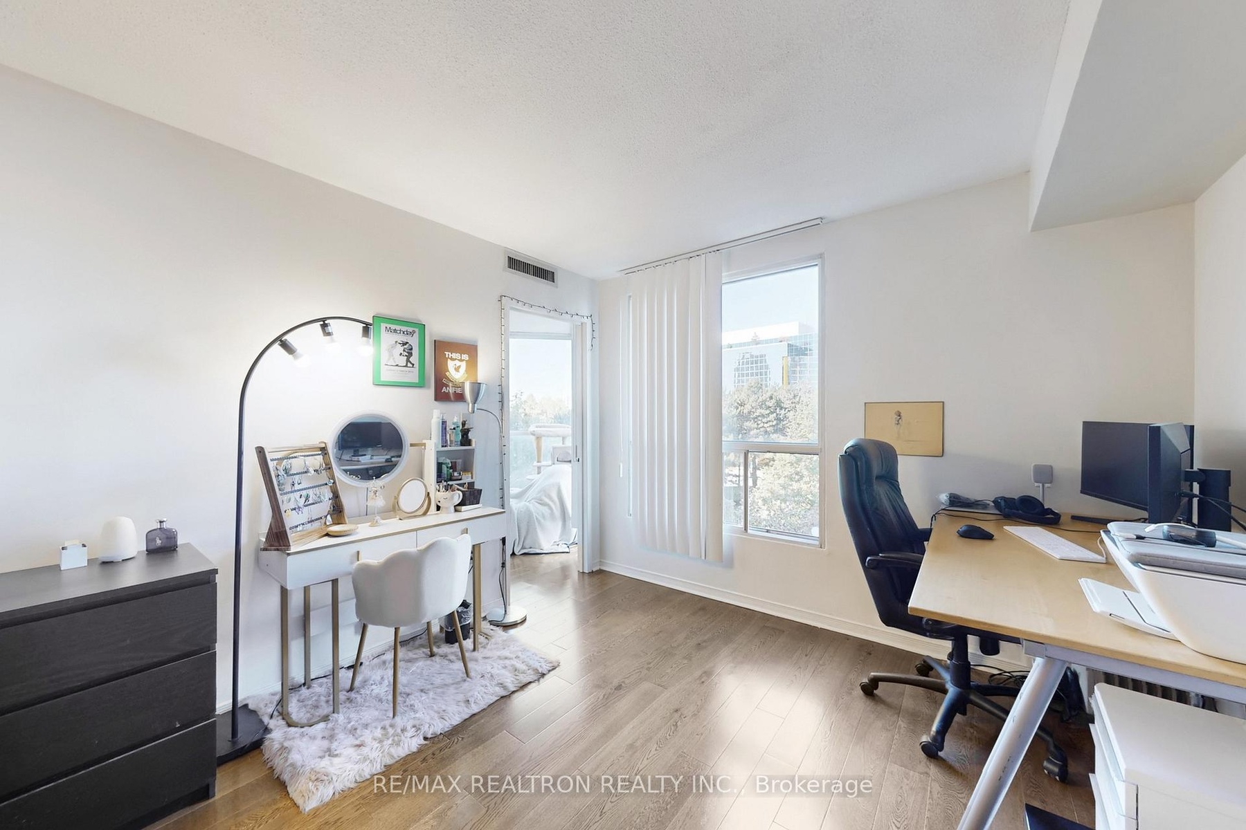 Live in One of Toronto's Most Desirable Areas! Don't miss this rare opportunity to own the largest 1-bedroom layout (814 sq. ft.) with floor-to-ceiling windows and spectacular city & sunset views! Bright, open, and beautifully maintained - this suite has it all. Enjoy an open-concept living and dining area with engineered hardwood floors and a solarium/den perfect for a home office. The galley kitchen features a breakfast bar, ceramic floors, and built-in dishwasher. The spacious primary bedroom includes a walk-in closet, while the 4-piece bathroom shines with ceramic tiles. Plus a huge pantry with ensuite laundry adds everyday convenience. The building has recently refreshed its corridors with modern carpet and elegant wallpaper, giving it a sleek, upscale look. You'll love the amazing location - just minutes to Downtown, TTC & LRT stations, Shops at Don Mills, DVP, and Flemingdon Park Golf Course. Resort-style amenities include: - Gym & Pool - Hot Tub, Dry & Steam Sauna - Tennis & Squash Courts - Video Room, Library, Pool Tables, Table Tennis & Darts - Guest Suites - Plenty of Underground Visitor Parking - Scenic Bike & Walking Trails. This bright, spacious, move-in ready suite offers comfort, lifestyle, and unbeatable value - come see it today before it's gone!