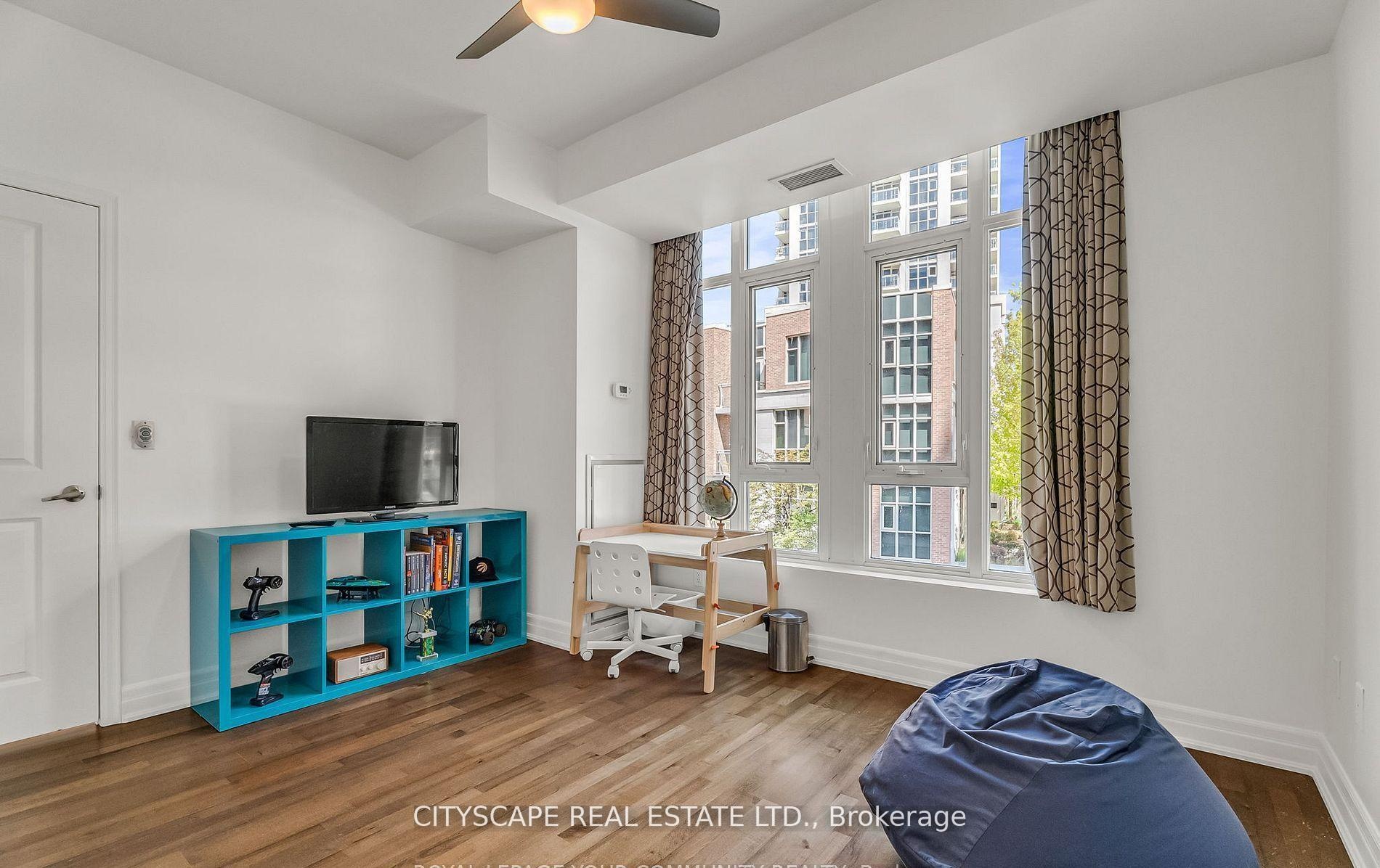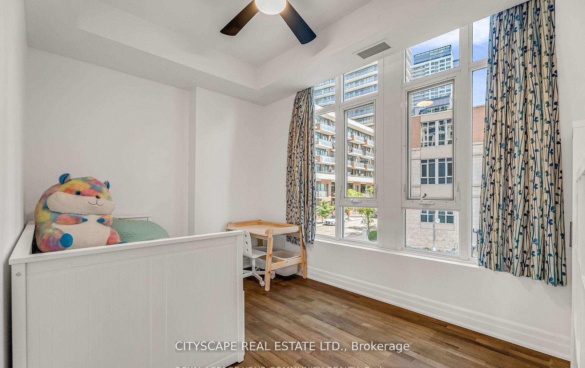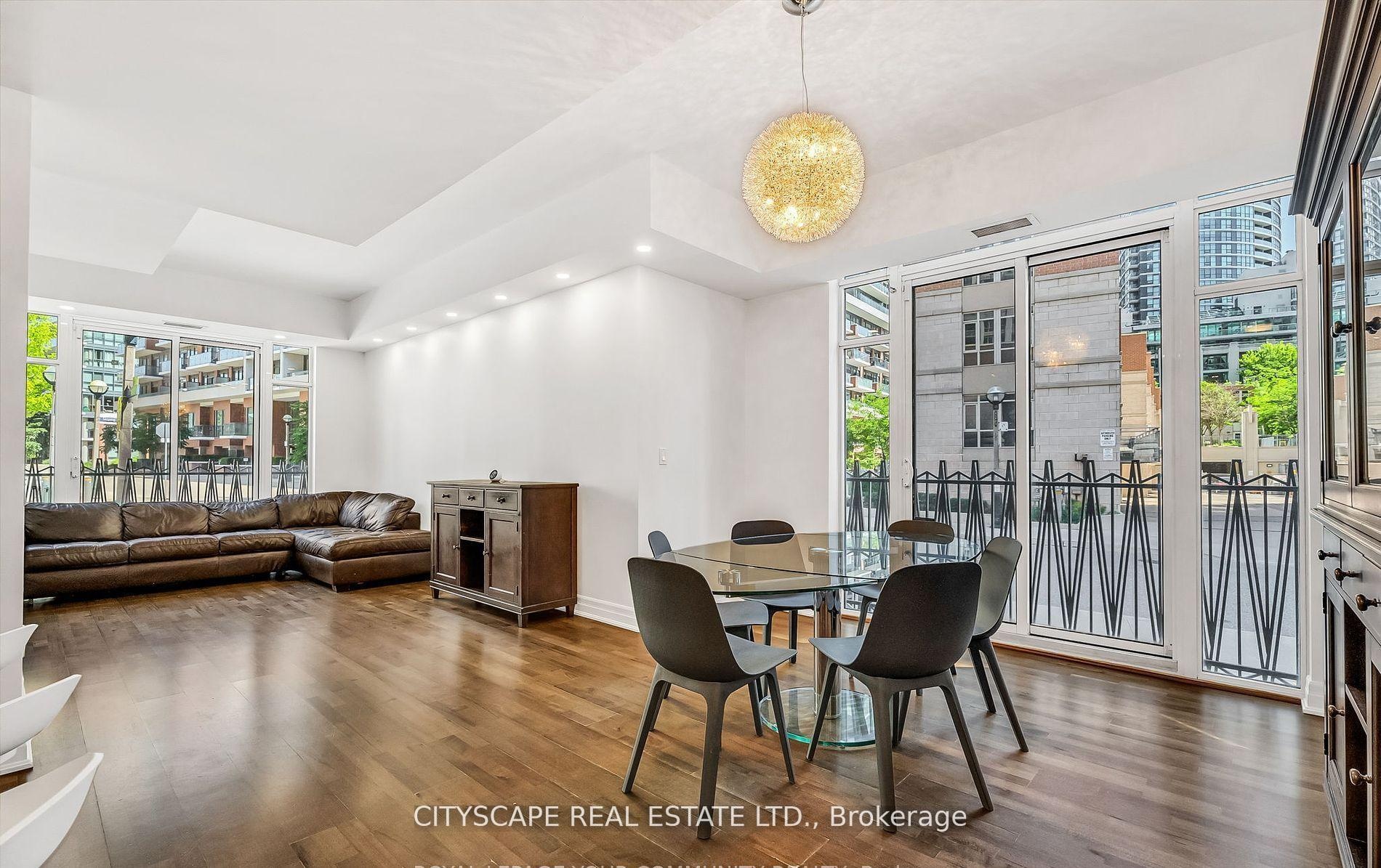 Rarely offered in this size, this bright and spacious luxury corner townhome offers approx. 2,250 sqft of beautifully designed living space across 3 levels. Featuring 3 full bedrooms, 3 bathrooms, and 2-car parking including a private garage with direct interior access plus a second spot in P1 underground this home offers exceptional convenience and comfort. The open-concept main floor boasts soaring 9.4 ft ceilings, a modern kitchen with granite countertops, stainless steel appliances, and expansive living/dining areas perfect for entertaining. The spacious primary suite occupies the third floor, complete with a private balcony, ensuite bath, and walk-in closet. Two additional generously sized bedrooms provide flexibility for families, guests, or home office setups. Enjoy your own west-facing patio overlooking the serene common area garden ideal for outdoor dining or relaxing. Additional features include a mudroom with built-in storage, direct garage entry, a bicycle rack in P1, and two heat pumps replaced in 2021 & 2022. Located just steps to the waterfront and minutes from the CN Tower, Rogers Centre, Harbourfront Centre, Fort York, Budweiser Stage, Liberty Village, and more. Walk to Loblaws, LCBO, TTC & parks. Residents enjoy access to all West Harbour City I amenities, including indoor pool, gym, party room, guest suites & 24-hour concierge. A rare opportunity to own a spacious, turnkey home in one of Torontos most vibrant neighbourhoods!