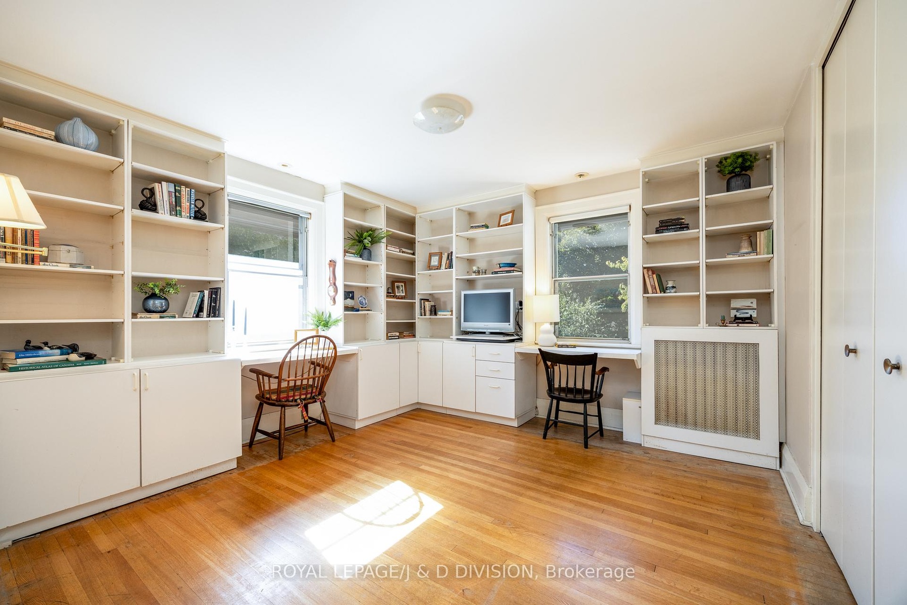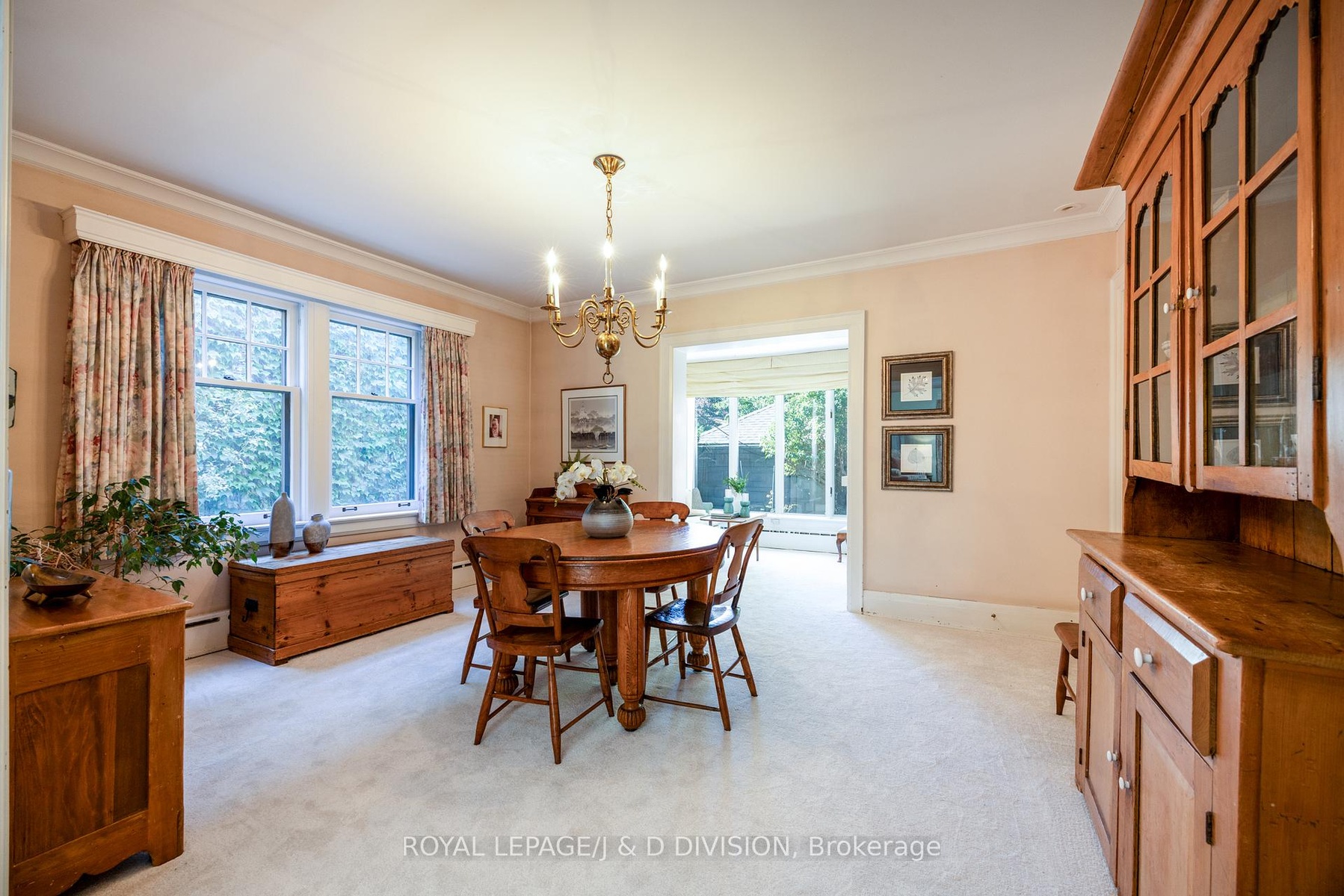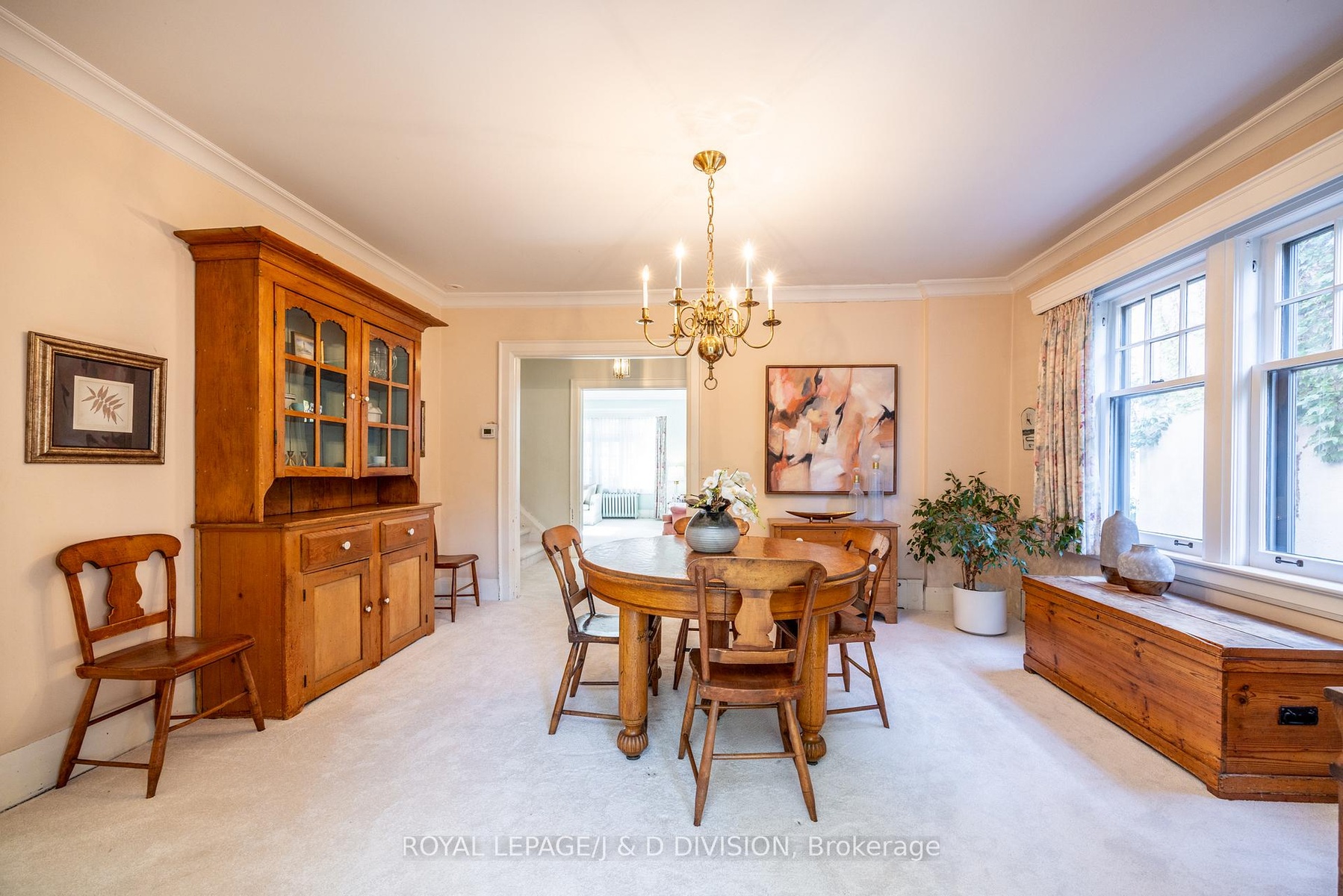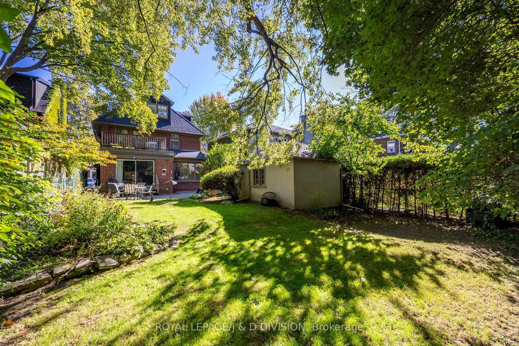 A gracious centre hall home cherished by the same family for decades. This two and a half storey home sits on a 40 x 130 foot lot on the second block of Eastbourne Avenue. The home features exquisite details including crown moulding, leaded windows, space, grace, flow and an abundance of natural light. The grand living room, with its wood burning fireplace, bay window, gracious dining room, a cozy den overlooking the garden - all perfect for entertaining. The white kitchen features a spacious breakfast area with a walkout to the patio and a west-facing garden. The laundry area is conveniently integrated into the kitchen and a main floor powder room. The second floor offers an unusually large layout with three well sized bedrooms, five piece bathroom and walk out to a rooftop deck. The third floor provides an ideal two bedroom/home office retreat with five piece bathroom and excellent ceiling height. The lower level with recreation room space and above grade windows offer additional potential. Architectural details enhance the home's significant street presence, including the red brick, inviting front door entrance, long private drive to a detached garage. Chaplin Estates is one of the city's most desirable neighbourhoods, known for its exceptional public and private schools close by, lush parks, the Beltline Trail, community centres... Just a short stroll from the Yonge subway, and vibrant shopping areas offering a small-town vibe in the heart of the city, this location provides the perfect blend of convenience and community. This home is truly a rare find on an exceptional lot. It is time for the next family to personalize to suit their lifestyle and create their own special memories.
