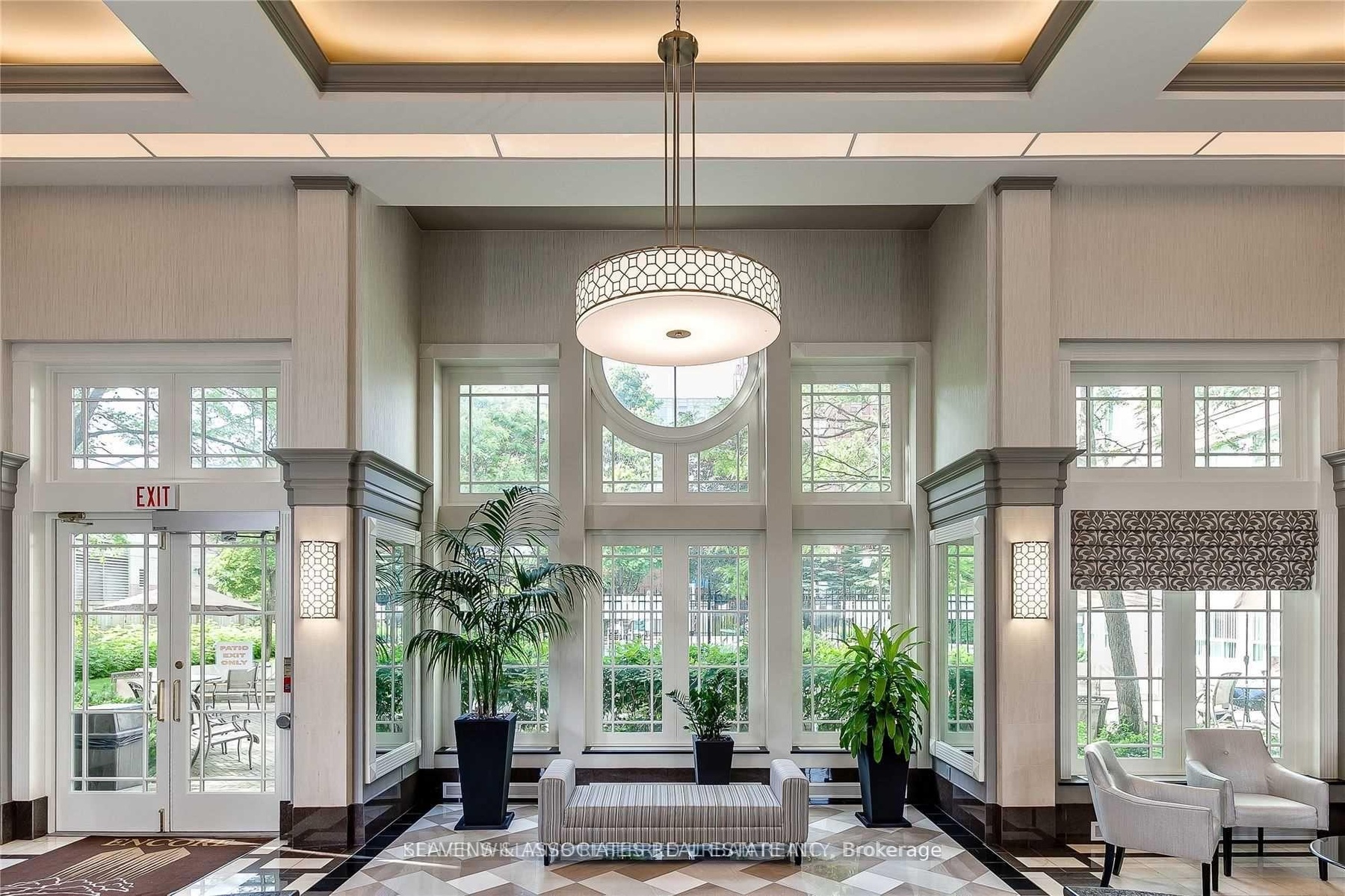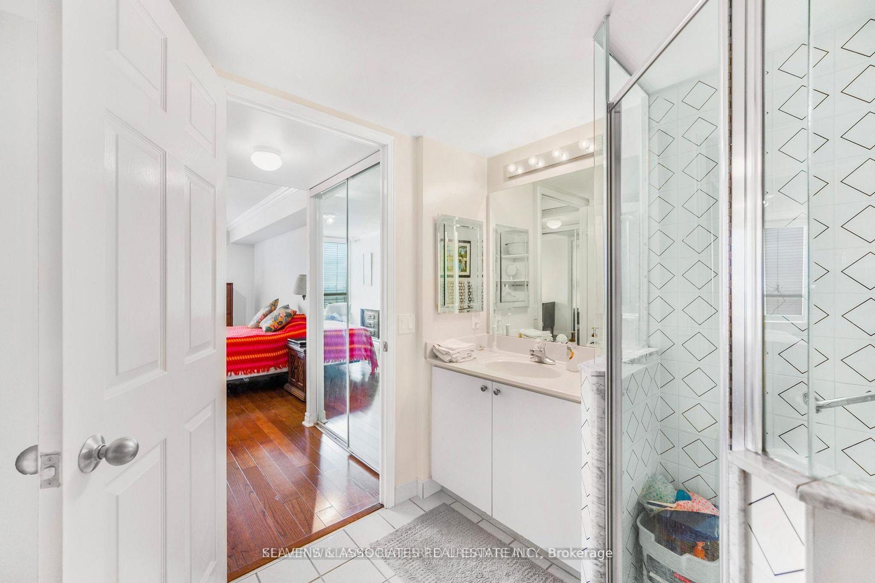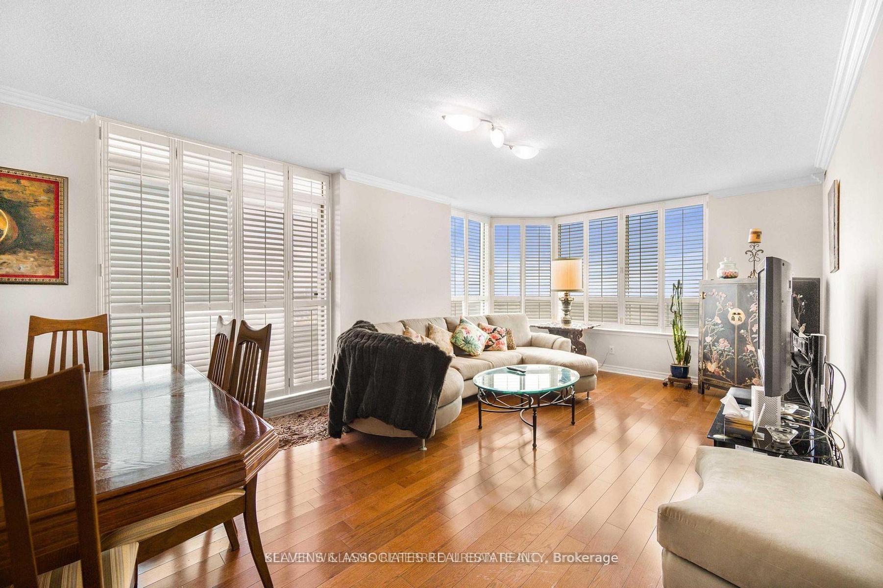 Penthouse corner suite at Encore Towers! Bright and spacious 2-bedroom, 2-bath layout with split bedrooms and open above-the-treetops views. Large windows with California shutters provide great light and privacy. Updated family-sized kitchen with ample cabinets, double S/S sink and eat-in area. Primary bedroom with 2 closets and private ensuite. Hardwoods floors, covered balcony, parking and locker included. Well-managed building with 24-hr concierge, Sabbath elevator, outdoor pool, guest suites and visitor parking. Steps to Lawrence Plaza, TTC, Allen Rd & 401.