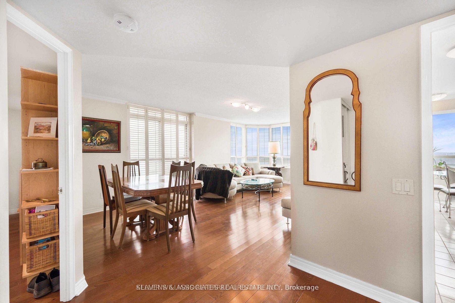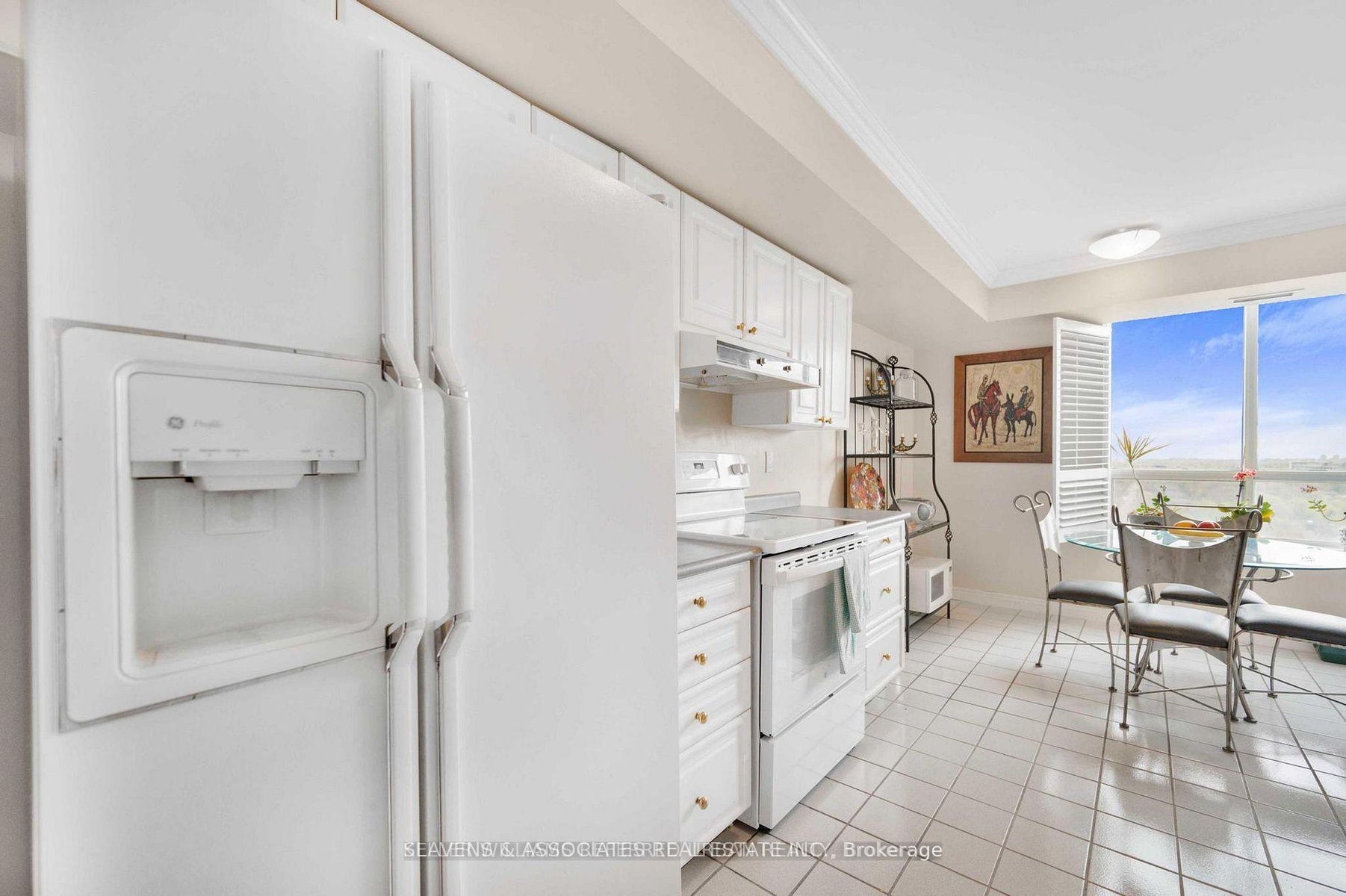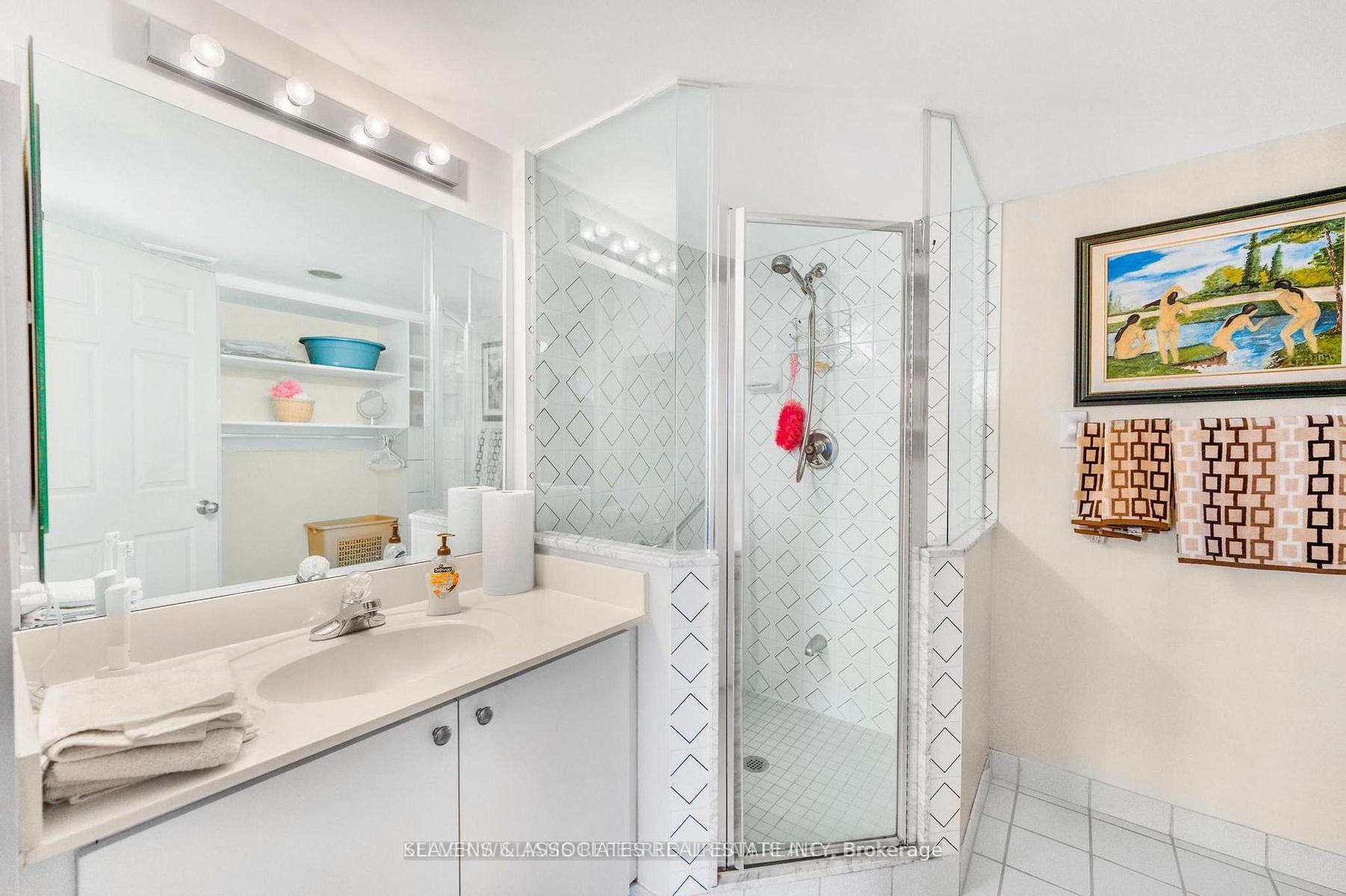 Penthouse corner suite at Encore Towers! Bright and spacious 2-bedroom, 2-bath layout with split bedrooms and open above-the-treetops views. Large windows with California shutters provide great light and privacy. Updated family-sized kitchen with ample cabinets, double S/S sink and eat-in area. Primary bedroom with 2 closets and private ensuite. Hardwoods floors, covered balcony, parking and locker included. Well-managed building with 24-hr concierge, Sabbath elevator, outdoor pool, guest suites and visitor parking. Steps to Lawrence Plaza, TTC, Allen Rd & 401.