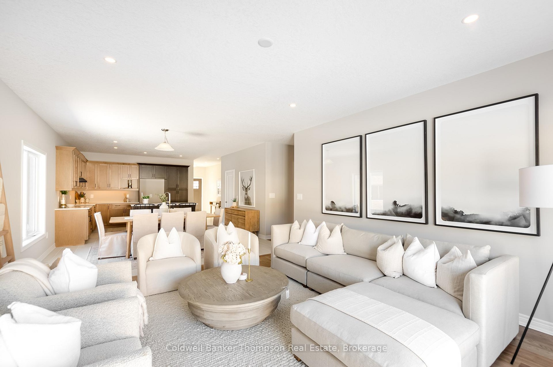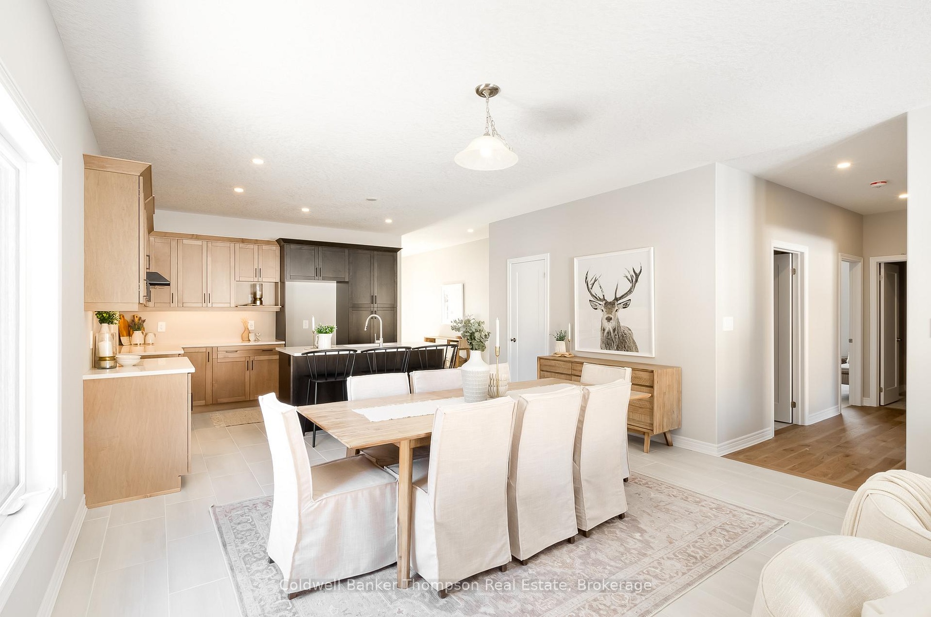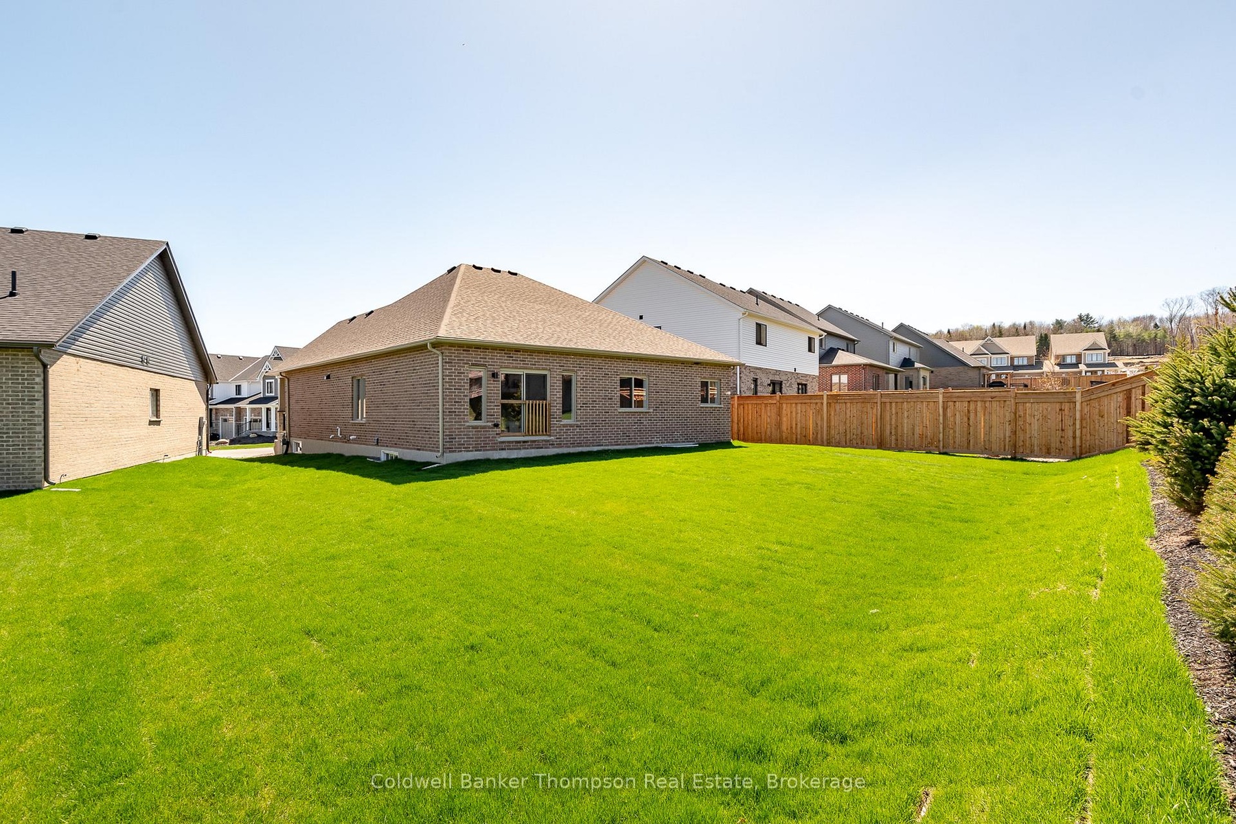 Welcome to the highly sought-after Woodstream community, where the renowned Devonleigh Homes proudly presents the exquisite Muskoka floor plan. This sprawling 1,792 sq ft bungalow is a testament to modern craftsmanship, offering immediate occupancy for those seeking a brand-new home tailored for comfort, style, and functionality. Designed with versatility and elegance in mind, this home features 2 generously sized bedrooms and a thoughtfully closed-in den, ideal as a home office, hobby space, or even a cozy guest room. Step into the heart of the home, where the open-concept kitchen, living, and dining area seamlessly blend together, creating an inviting space perfect for entertaining or everyday family living. The kitchen is a chef's dream, boasting an upgraded layout with 36" upper cabinetry topped with elegant crown moulding, under-cabinet lighting for added ambiance, sleek quartz countertops, and a spacious island designed for hosting and meal prep. The primary suite is a private retreat, featuring a walk-in closet and a luxurious 4-piece ensuite. A second spacious bedroom offers comfort for family or guests, while an additional 4-piece guest bathroom ensures convenience for all. The practical laundry/mudroom, located with inside entry from the double car garage, is designed to keep life organized and clutter-free. This home is situated on a premium lot, further enhanced by newly planted trees in the rear yard that will grow to provide privacy and a serene natural backdrop. Throughout the home, you'll find premium upgrades, including 12x24 tiles in the foyer, kitchen, and breakfast area, and hardwood flooring extending through the den, great room, and hallway to the bedrooms. Every detail has been carefully selected, from the upgraded door profiles and hardware to the finishing touches that elevate the aesthetic of this beautiful home. The Woodstream community offers a peaceful yet connected lifestyle, ideal for those looking to settle into a great neighborhood.