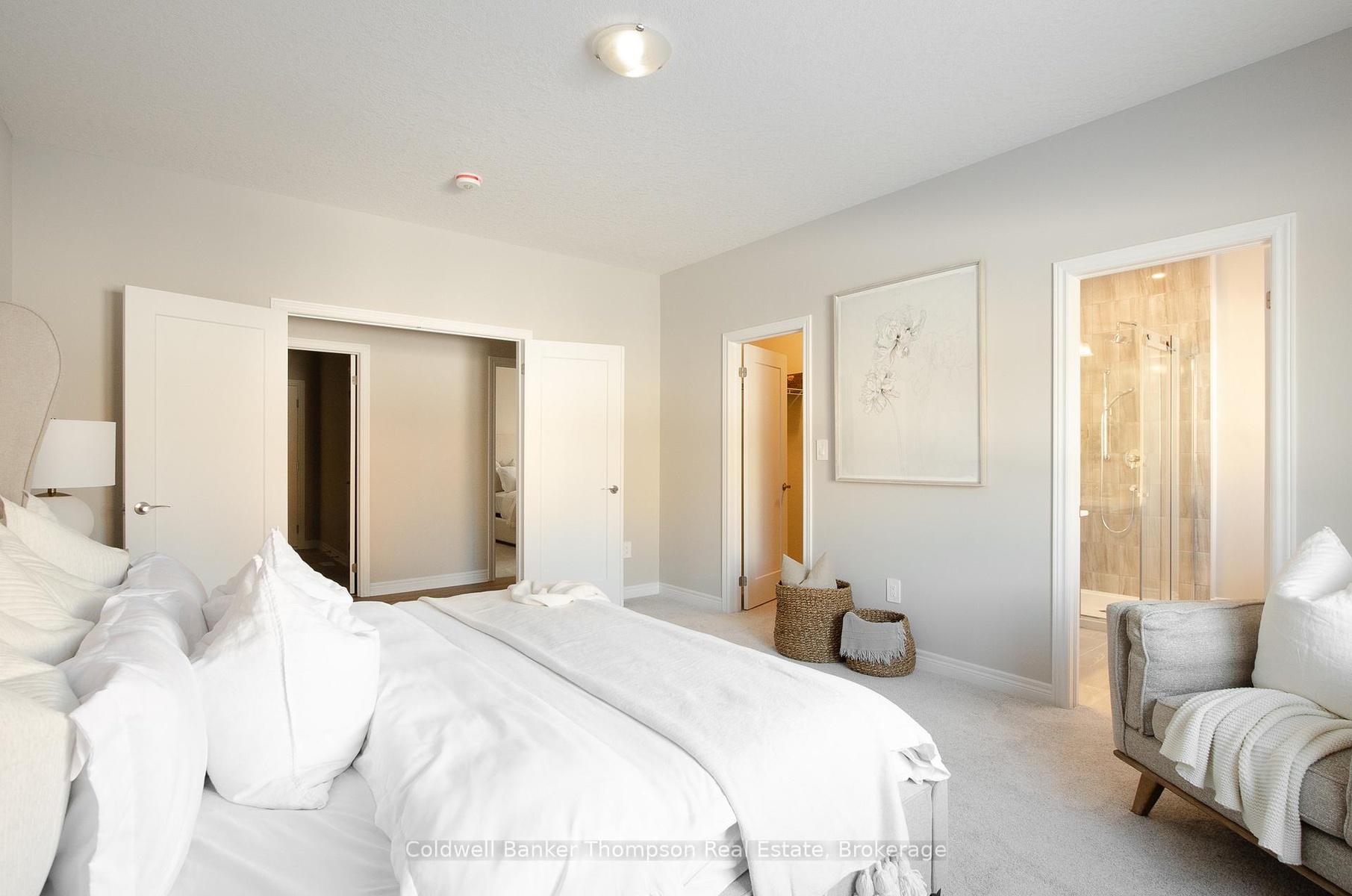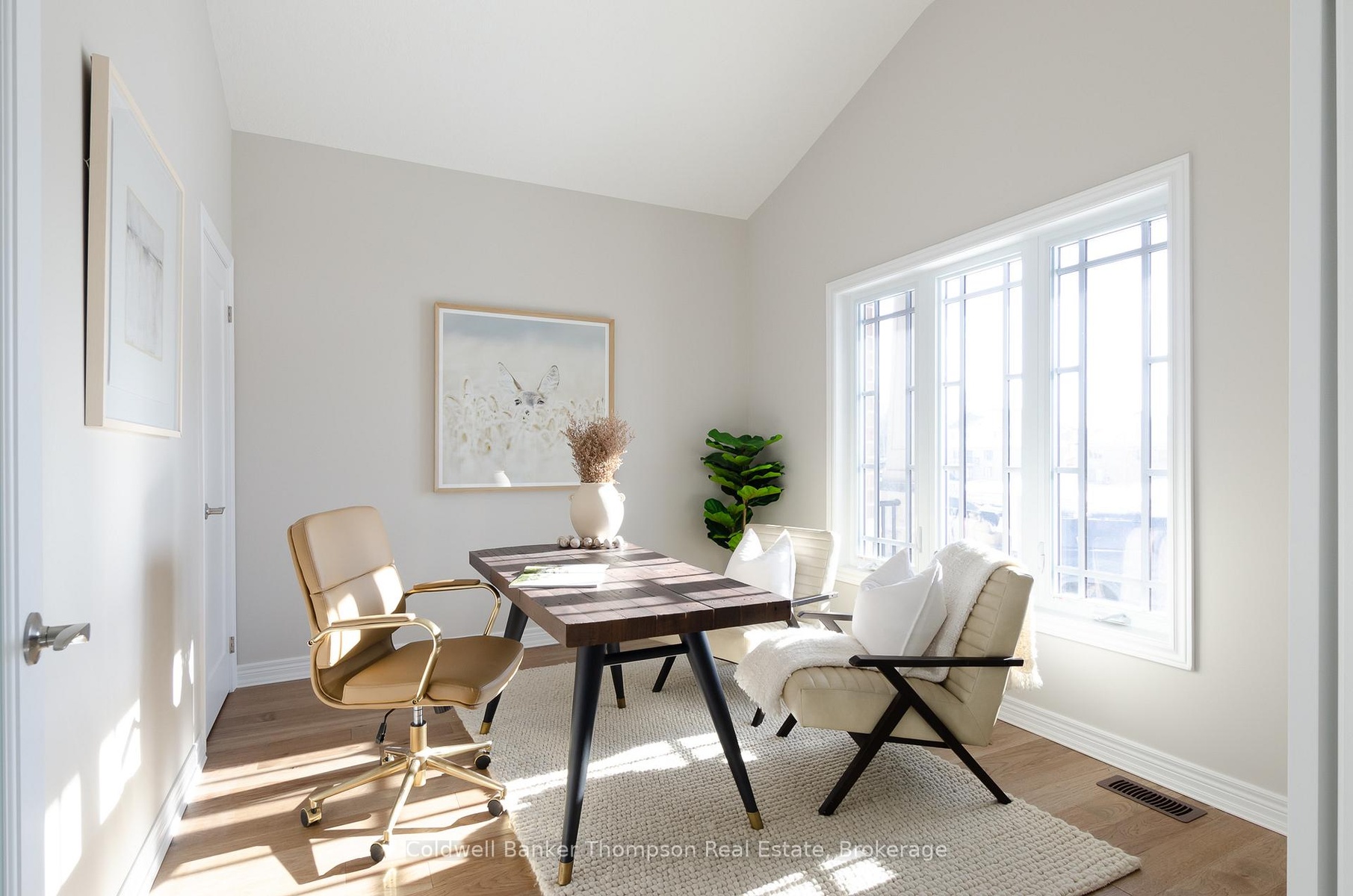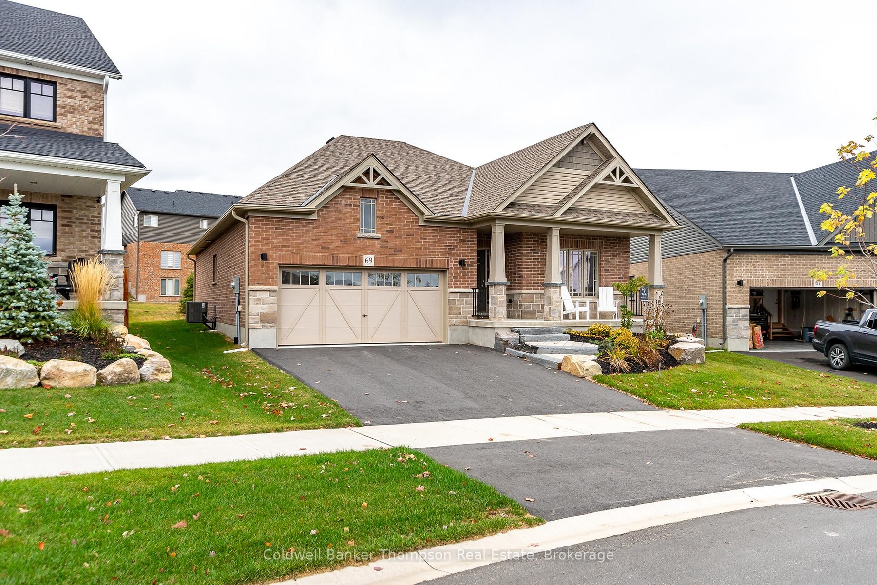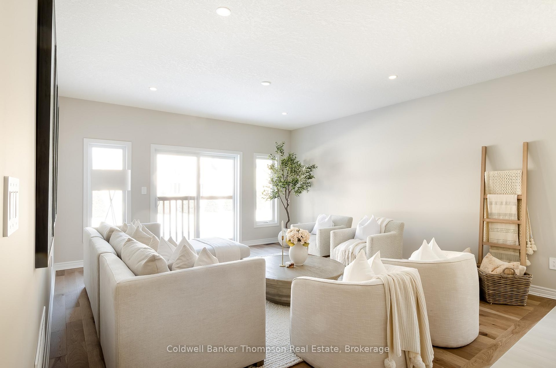 Welcome to the highly sought-after Woodstream community, where the renowned Devonleigh Homes proudly presents the exquisite Muskoka floor plan. This sprawling 1,792 sq ft bungalow is a testament to modern craftsmanship, offering immediate occupancy for those seeking a brand-new home tailored for comfort, style, and functionality. Designed with versatility and elegance in mind, this home features 2 generously sized bedrooms and a thoughtfully closed-in den, ideal as a home office, hobby space, or even a cozy guest room. Step into the heart of the home, where the open-concept kitchen, living, and dining area seamlessly blend together, creating an inviting space perfect for entertaining or everyday family living. The kitchen is a chef's dream, boasting an upgraded layout with 36" upper cabinetry topped with elegant crown moulding, under-cabinet lighting for added ambiance, sleek quartz countertops, and a spacious island designed for hosting and meal prep. The primary suite is a private retreat, featuring a walk-in closet and a luxurious 4-piece ensuite. A second spacious bedroom offers comfort for family or guests, while an additional 4-piece guest bathroom ensures convenience for all. The practical laundry/mudroom, located with inside entry from the double car garage, is designed to keep life organized and clutter-free. This home is situated on a premium lot, further enhanced by newly planted trees in the rear yard that will grow to provide privacy and a serene natural backdrop. Throughout the home, you'll find premium upgrades, including 12x24 tiles in the foyer, kitchen, and breakfast area, and hardwood flooring extending through the den, great room, and hallway to the bedrooms. Every detail has been carefully selected, from the upgraded door profiles and hardware to the finishing touches that elevate the aesthetic of this beautiful home. The Woodstream community offers a peaceful yet connected lifestyle, ideal for those looking to settle into a great neighborhood.