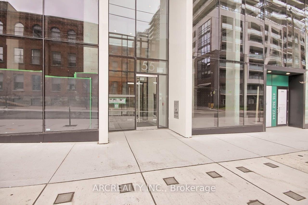 Welcome to Modern Shic of East 55 Condos & Exceptional Downtown Living! Beautiful 1 Bdr + Den Corner Unit Perfect L/Out With 9'Ceilings, Huge Balcony & Unobstructed NW View! Gas Bbq Outlet On Balcony. $$$ Spent On Upgraded White Walls & Smooth Ceiling(No Exposed Concrete). Den Is A Separate Room W/Window & Sliding Doors & Can Be Used As Office/2nd Bdr.! Floor-To-Celing Windows. Plenty of Light Throughout. Large Balcony W/BBQ Gas Line. Amenities Include: Underground Visitor Parking, Plunge Pool on A Terrace, Party Room, Rooftop Deck, Gym, Concierge, Guest Suites.Excellent Location! Steps To Ttc, St. Lawrence Market, Distillery District,Restaurants & Shops, etc.