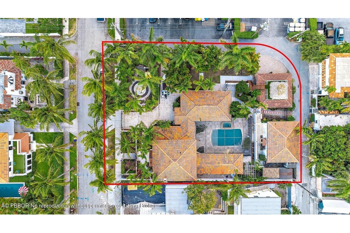 In the heart of Providencia Park lies a hidden gem, just one property off of Flagler Drive and the shimmering Intracoastal Waterway. This rare 13,939 square foot subdividable street-to-street estate lot commands attention with its impressive presence, lush tropical landscaping and outstanding future potential. With significant development in the area — near the up-and-coming NORA district, new luxury condominiums and with proximity to Palm Beach Island, Downtown West Palm Beach and City Place — and a flexible zoning code, this property presents a golden opportunity for those looking to invest in a prime location while customizing their dream estate right by the waterfront. Lovingly restored with modern conveniences, the stunning 1930s Mediterranean Revival-style residence and guest house span 4,712± total square feet, skillfully blending historic charm with contemporary comfort. A gracious courtyard entry introduces the four-bedroom, two-and-a-half-bath main residence, designed for effortless entertaining and easy family living. The bright and airy living room is highlighted by a cozy fireplace, creating a warm and inviting ambience, while French doors from the dining room open to the pool patio, seamlessly integrating indoor and outdoor spaces. The sunroom, with banks of windows, overlooks the beautifully landscaped front gardens with a charming centerpiece fountain. The island kitchen accesses the pool loggia, as does the primary suite, a serene retreat that presides over an entire wing. On the second floor, serene water views can be enjoyed from all the guest bedrooms. Ideal as a pool cabana or for tenants or hosting guests, this compound boasts a two-apartment guest house, each with an ensuite bedroom and kitchen. The detached two-car garage features a rooftop deck, perfect for enjoying soft breezes and Intracoastal views. For added convenience are two laundry rooms, one in the main residence and the other in the guest house. With formal and informal rooms, a split-bedroom plan placing the primary suite on the first floor, and a versatile guest house, residents of this exceptional estate enjoy an unparalleled lifestyle while making a tremendous investment in a great location.